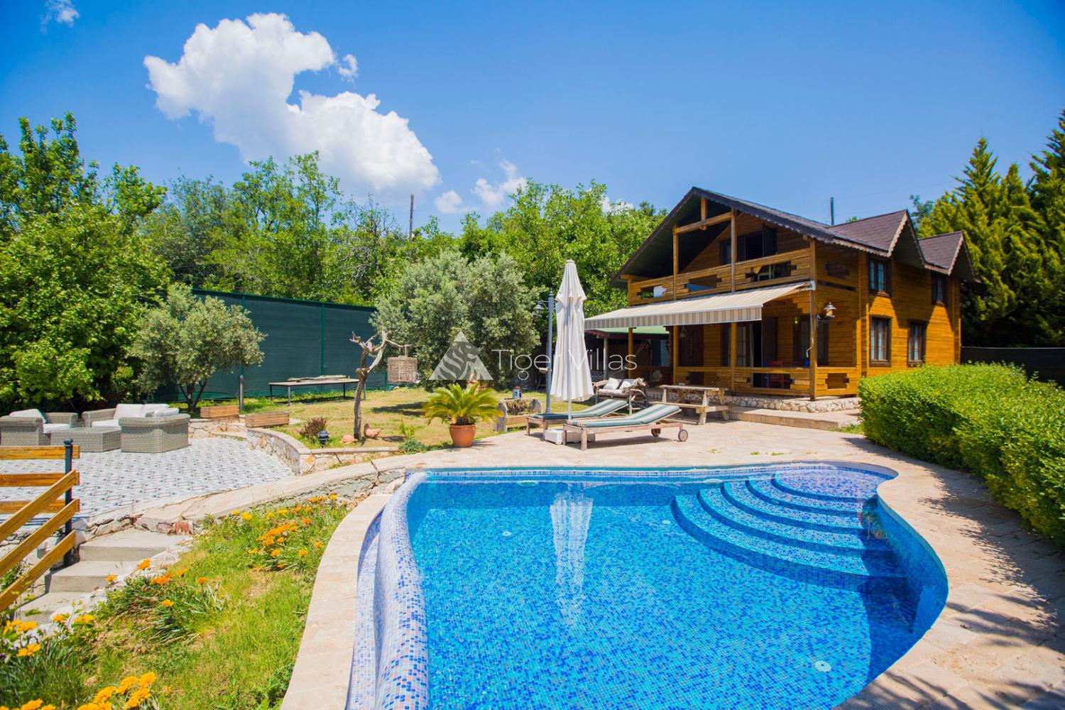 Villa Zeytin Evi is one of our 1 bedroom 2 person honeymoon villa options in Kalkan-İslamlar. This charming wooden villa has a large garden and has a special kitchen in its garden. The olive and pine trees surround our villas in a natural environment. Villa Zeytin Evi Kalkan is 11 km from the city center and 1 km from the village center.