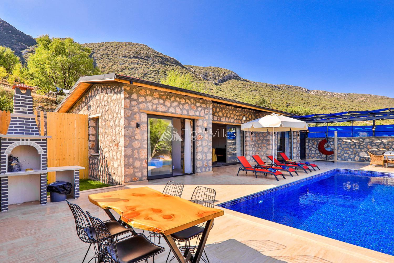 Located in the Sarıbelen area of Kalkan, our villa for rent, which is suitable for our honeymoon couples in a nature and quiet location, has 2 bedrooms. One bedroom of our villa with a capacity of 4 people has a double bed and the other bedroom has 2 separate single beds. Our double bedroom has a private heated jacuzzi. Our villa, which has a large pool terrace, which is 18 km from the city center, has been designed with sun loungers, dining table, barbecue and swing on the pool terrace. We aim to offer comfort and convenience with the interior design of our villa, our villa has been designed with all the possibilities in mind so that the needs of all our guests can be met. Villa Azra Naz is opening its doors for our valued guests.