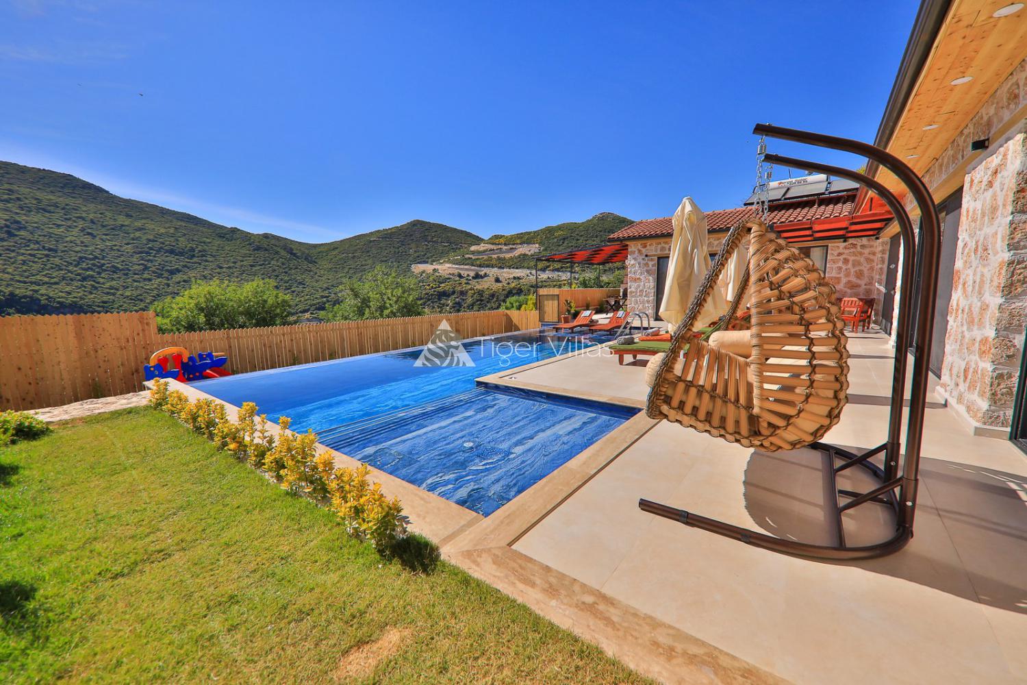 Villa Aden is a honeymoon villa with a capacity of 4 people. It is a conservative villa located in Kalkan Sarıbelen area. Our villa has a very luxurious design and has a jacuzzi. Our villa has a view of nature and has a large garden. Villa Aden is in the conservative honeymoon villas category on our website.
