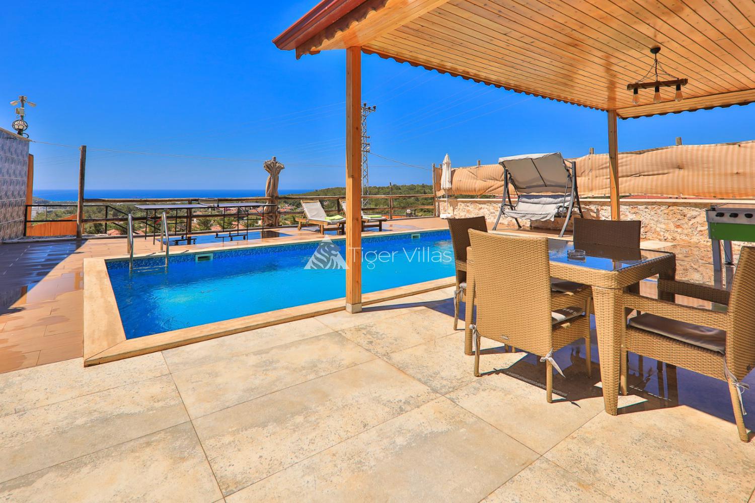 Villa For Rent Akıncı 1 is a honeymoon villa with nature and sea views located in Patara, Kalkan. All necessary equipment is available in the American kitchen of our cottage, and the living room designed with comfortable furniture is at your service. There are table football and table tennis for you to have a pleasant time on the pool and garden floor. You will be enchanted by the unique view of Patara beach. In addition, the pool garden floor of our villa is sheltered, making it an ideal option for honeymooners.