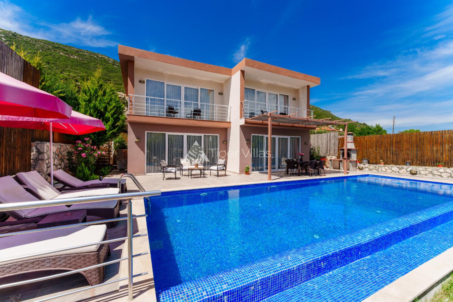 Villa Azelya, Our 2-bedroom villa with an accommodation capacity of up to 4 people, located in the village of Kalkan Sarıbelen, is located in a quiet location for our guests. There is a jacuzzi in the master bedroom of our villa, which is in our conservative villas and villas with jacuzzi options. Villa Azelya, whose pool is sheltered and whose garden is not visible from the outside, offers a peaceful holiday opportunity for our guests who value privacy.