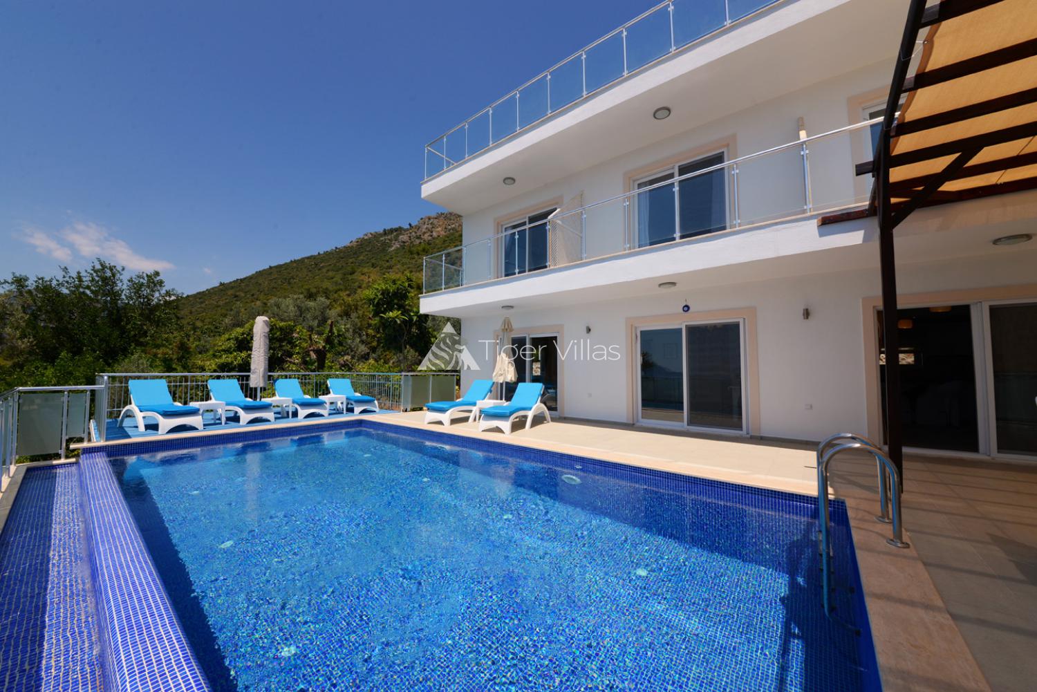 Villa Donat with its fantastic sea view is our one of the most preferred villas in Kalkan’s Üzümlü Village. It has 4 bedrooms -3 double and 2 single beds- and includes a swimming pool in secret garden. Thus, it is a great option for the families that value their privacy.