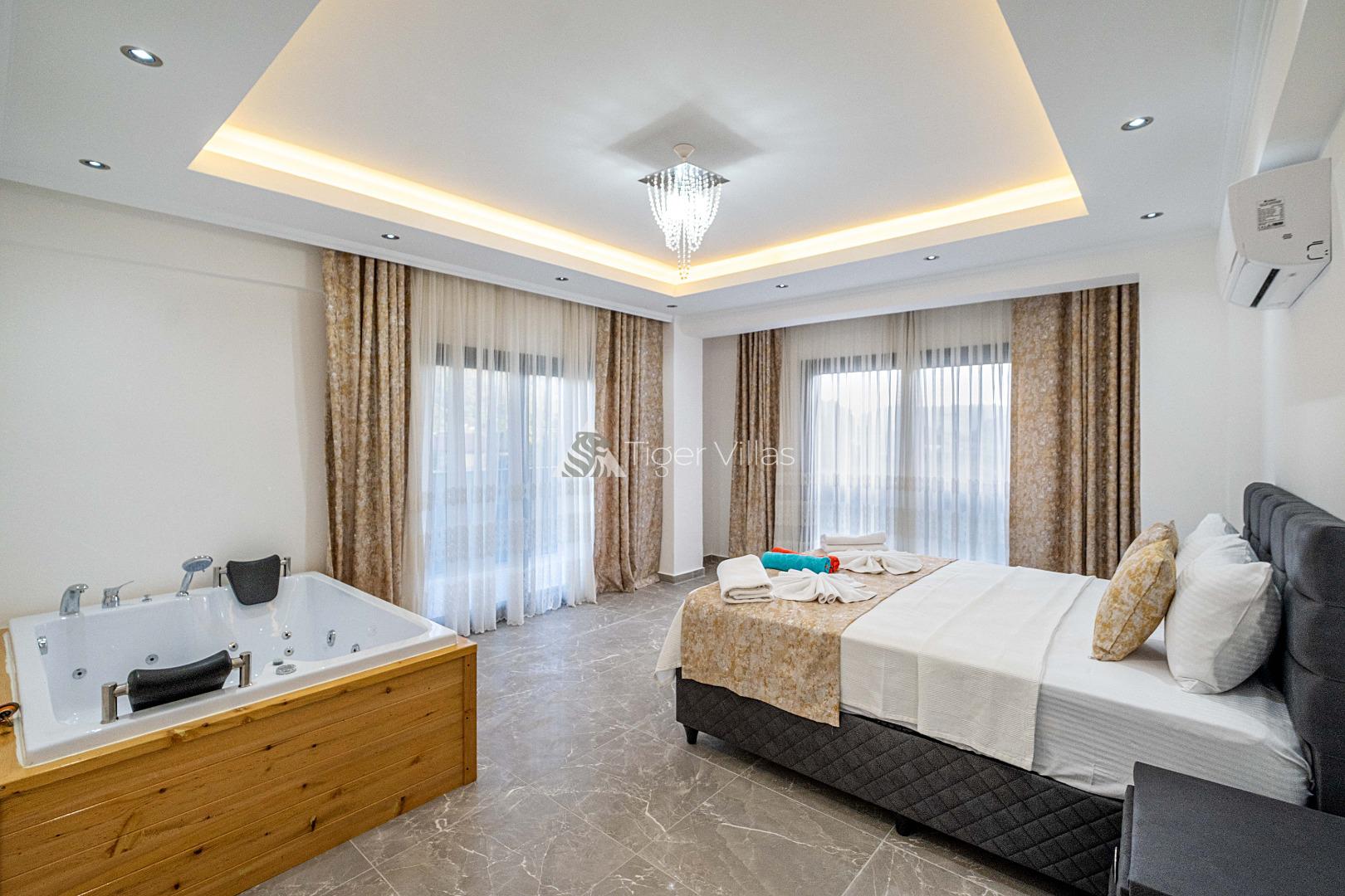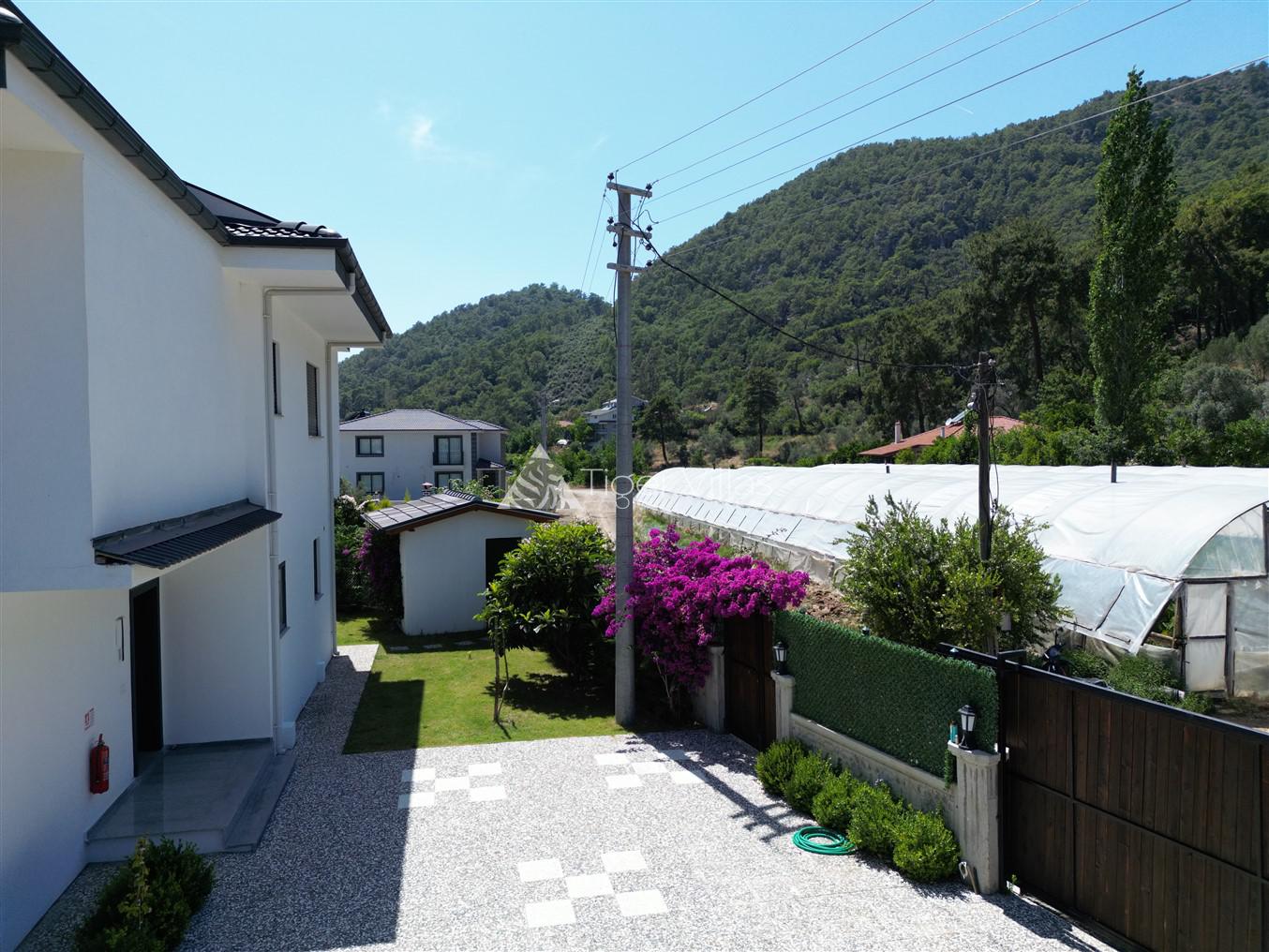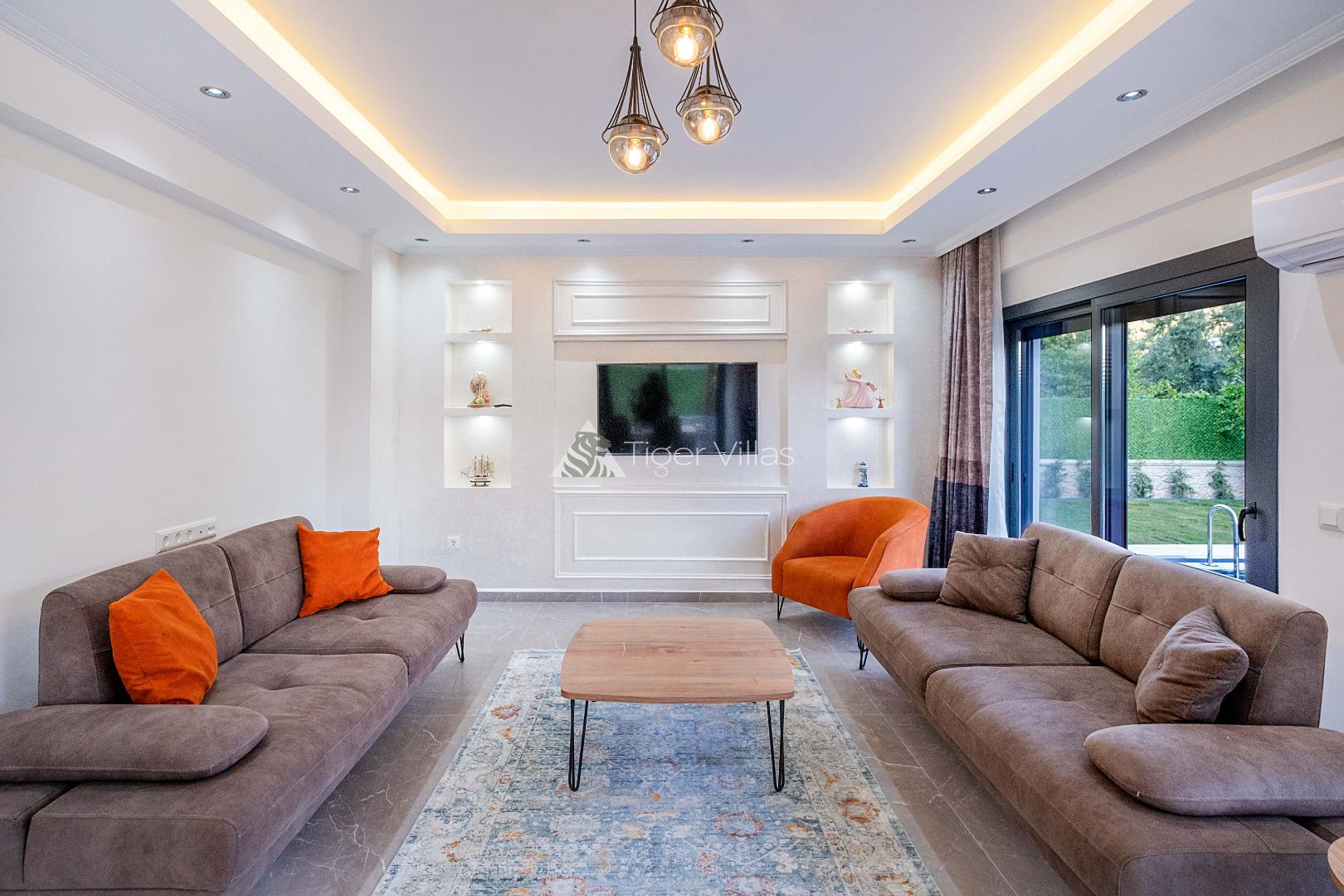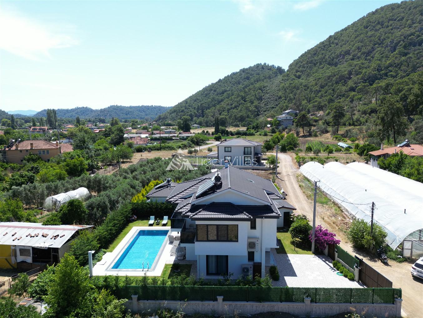Villa Duru Uno is located in nature in Fethiye Göcek İnlice region. It can accommodate eight people in four bedrooms. There is a jacuzzi and sauna in our villa. The pool terrace of our villa, which is located in a detached position in the large garden, is not visible from the outside. For this reason, our conservative families can have a pleasant holiday with peace of mind. It is very comfortable and stylish with its interior and exterior design. You can have a pleasant time with your loved ones from the garden and pool terrace of our villa, or you can join the boat tours organized to the deep blue bays of Göcek and discover the unique beauties.