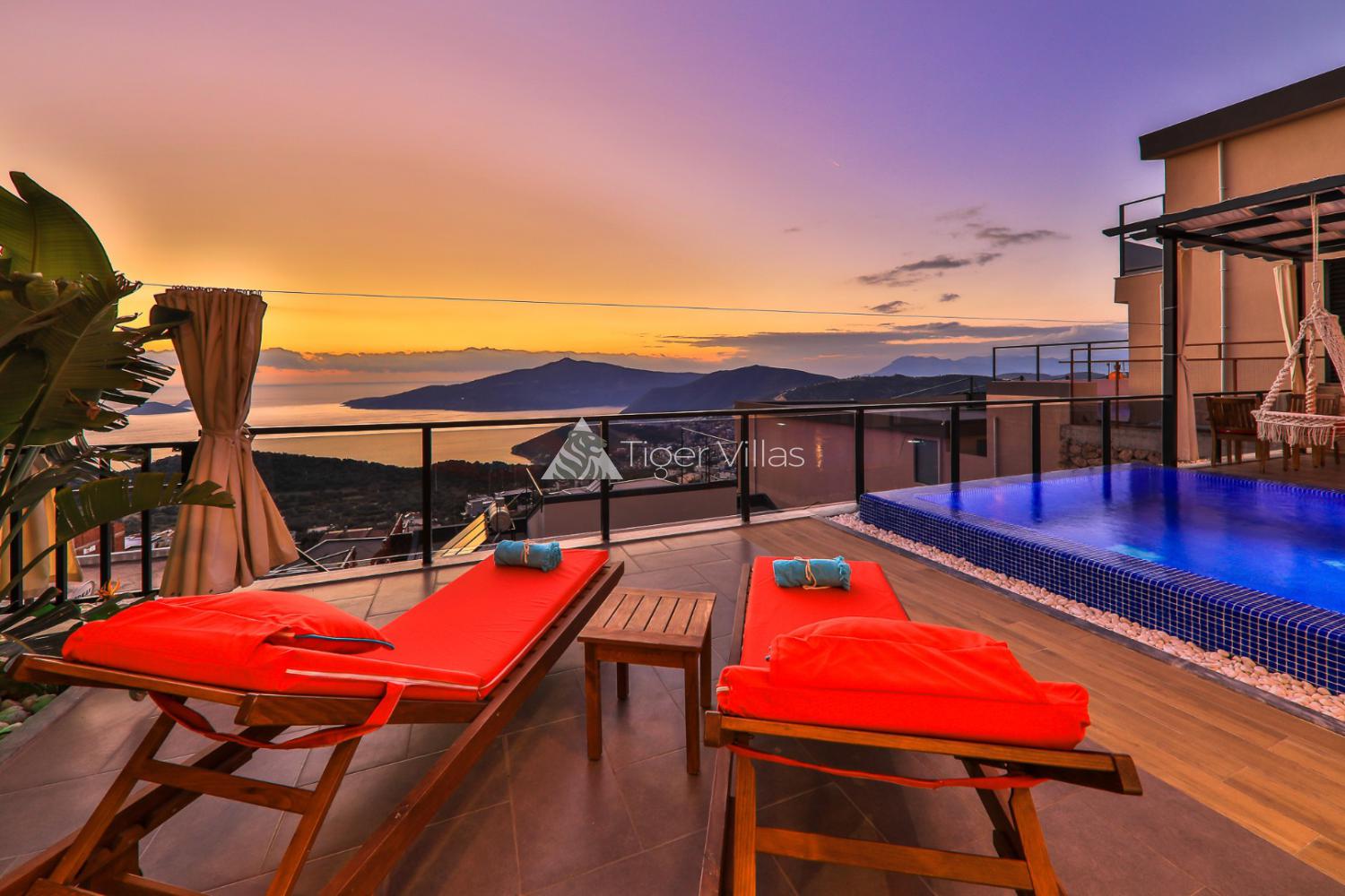 Villa Ege’s pool terrace is wonderfully designed and offers fantastic views of the sea. The good sized, contoured swimming pool is bordered with quartz stone and can be illuminated in the evening.This is the perfect location to relax at the end of the day while the sun is setting over the Kalkan islands...