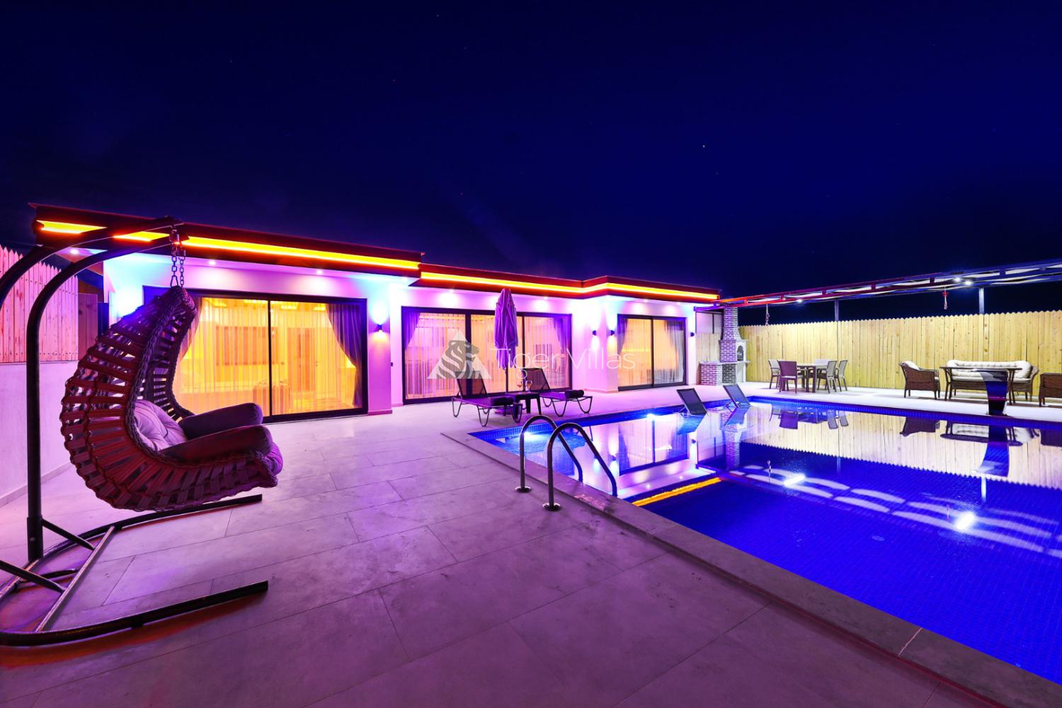 Villa Ela Uno is located in the Sarıbelen region of Kalkan. Our villa, which has 2 bedrooms and an accommodation capacity of 5 people, is in the category of conservative villas due to the sheltered pool area. The pool terrace of our villa is quite large and there is a children's pool. In this way, while you enjoy your holiday, your children will be able to enjoy the pool to the fullest. With its location in nature, our villa offers the opportunity to have a holiday in a calm, spacious and comfortable atmosphere, and a jacuzzi is provided in the suite bedroom. Every detail has been thought of for your comfort, and all the items you may need have been supplied for you. Our villa, which offers an unforgettable holiday experience for our honeymoon couples and nuclear families, awaits you, our precious guests.