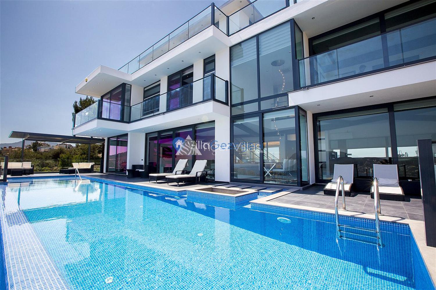Villa Elit (sleeps 10) is a contemporary, luxury, air-conditioned villa with 5 bedrooms each with it's own en-suite and four have their own private balcony with amazing sea view. The villa is situated just a 10 minute stroll from the centre of the enchanting Kalkan town and harbour.(3 min. by driving.)
