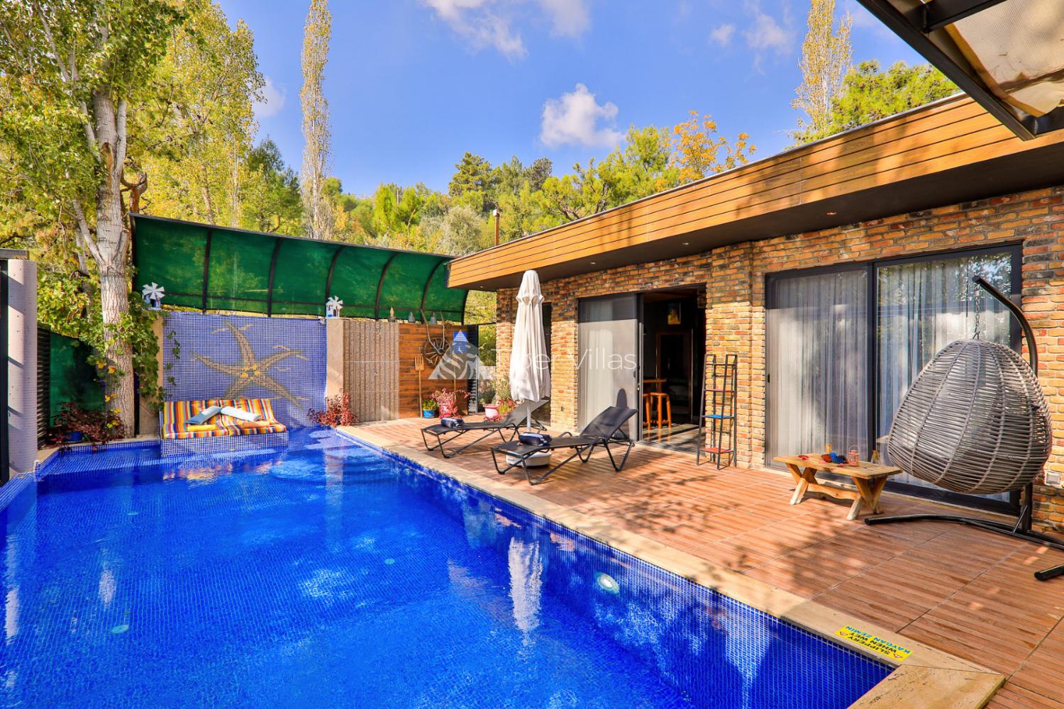 Villa Florya, which has a sheltered pool terrace in nature, is specially designed for honeymooners. There is a very pleasant sitting group and swing in the garden. There is a shallow section on the pool terrace. A specially made sun lounger in the pool will be very enjoyable. There is an ornamental illuminated fireplace inside the house. There is a projection in front of the bed in our specially designed villa for honeymoon. There is a jacuzzi in the bathroom. All kinds of fruits and vegetables from the garden at the entrance of our house are for your use only :)