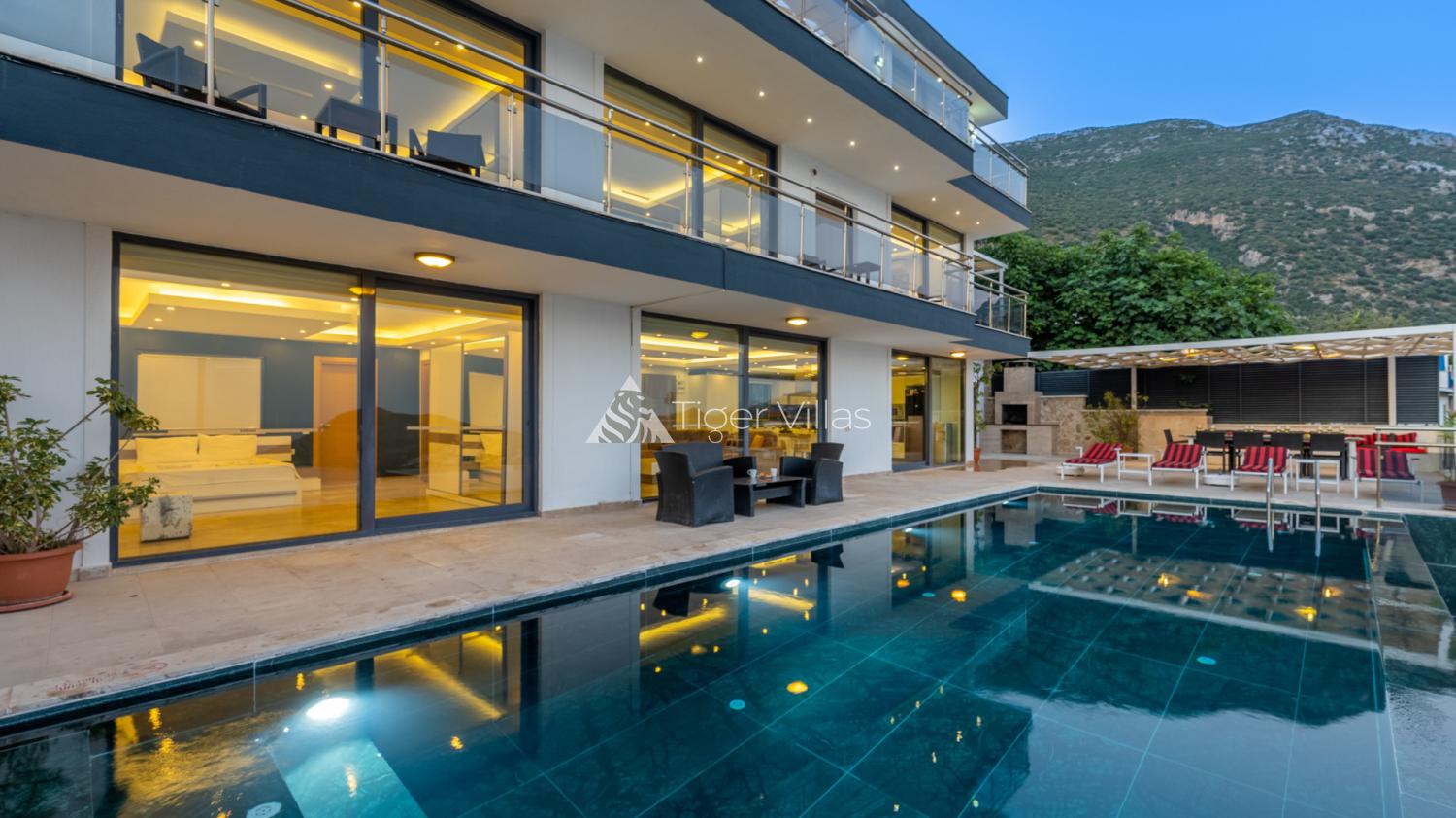 Villa Gizem is one of our comfortable, luxurious holiday villas located in the Akbel district of Kalkan. The villa has a unique view of the Kalkan Bay. There are 6 suite bedrooms in our villas, all of which have sea view. All bedrooms have a balcony and a private bathroom. Villa Gizem is an ideal choice for families and groups of friends with a capacity of 12 people. Large luxurious sun terrace and large private swimming pool await guests. It is 5 minutes from the city center driving distance.