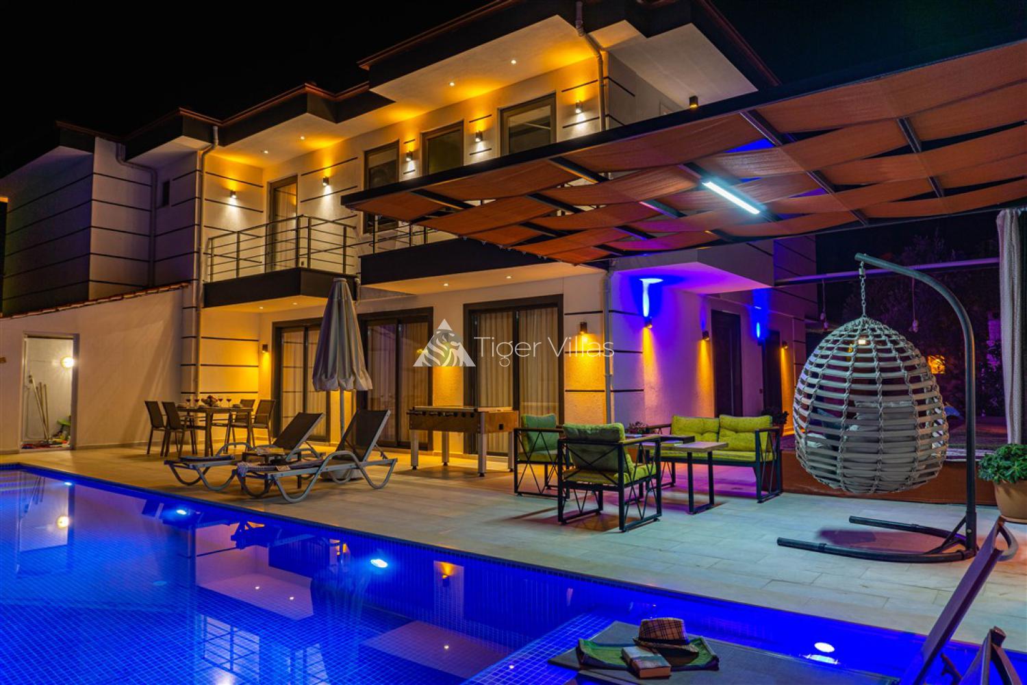 Villa Hanedan 2 is one of our conservative villas with 2 bedrooms and a capacity of 4 people in the Patara region of Kalkan. The pool dimensions of our villa, which has a private swimming pool, are designed to be smaller than other villas. Two bedrooms of our summer villa, consisting of 2 floors, are designed as suites, and there is a jacuzzi in the master bedroom. The garden area has a swing, barbecue, sun loungers and parasols. The rental villa, which is among the preferences for honeymoon couples, is also suitable for families with children.