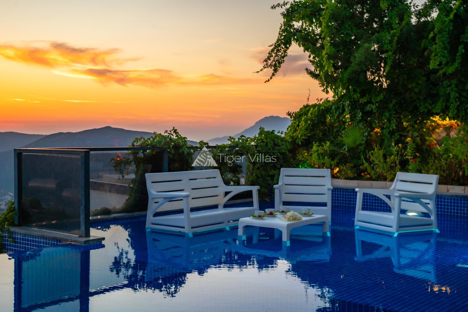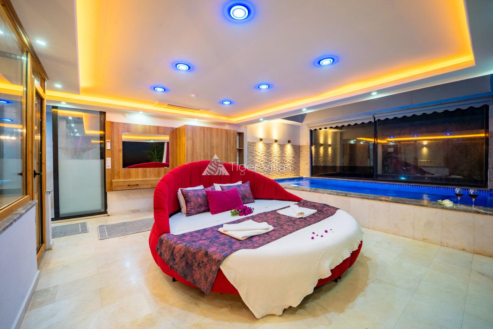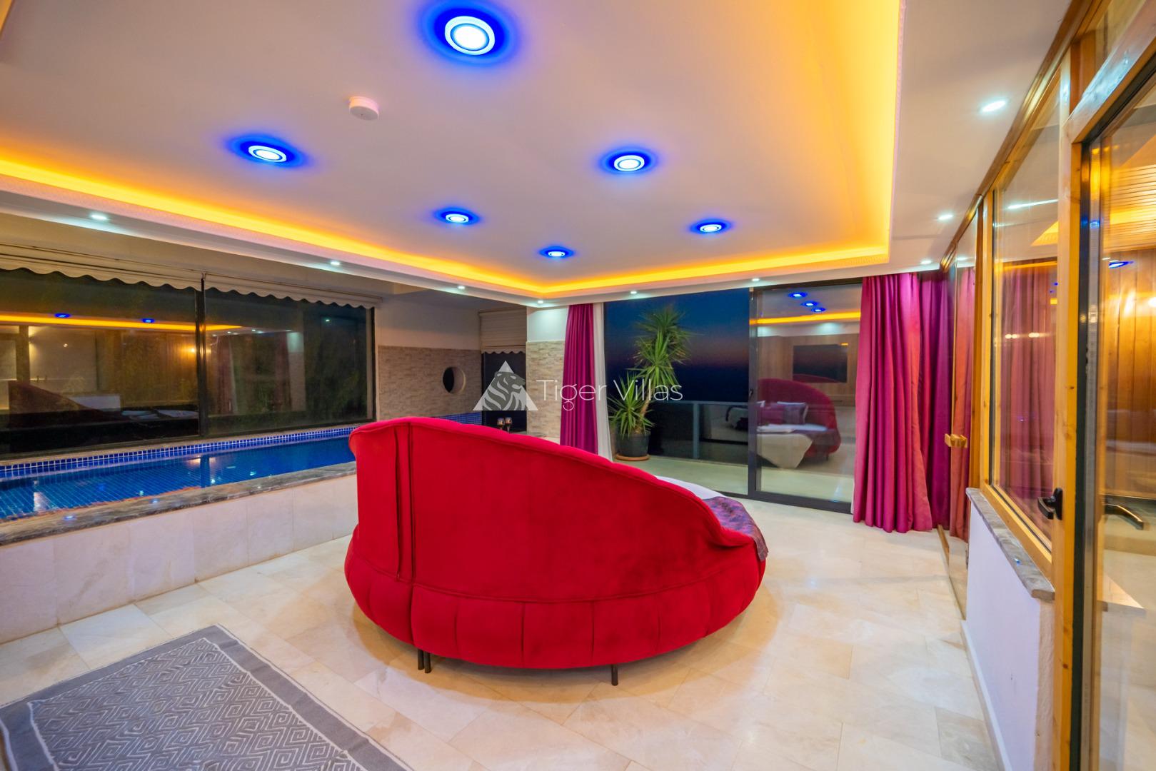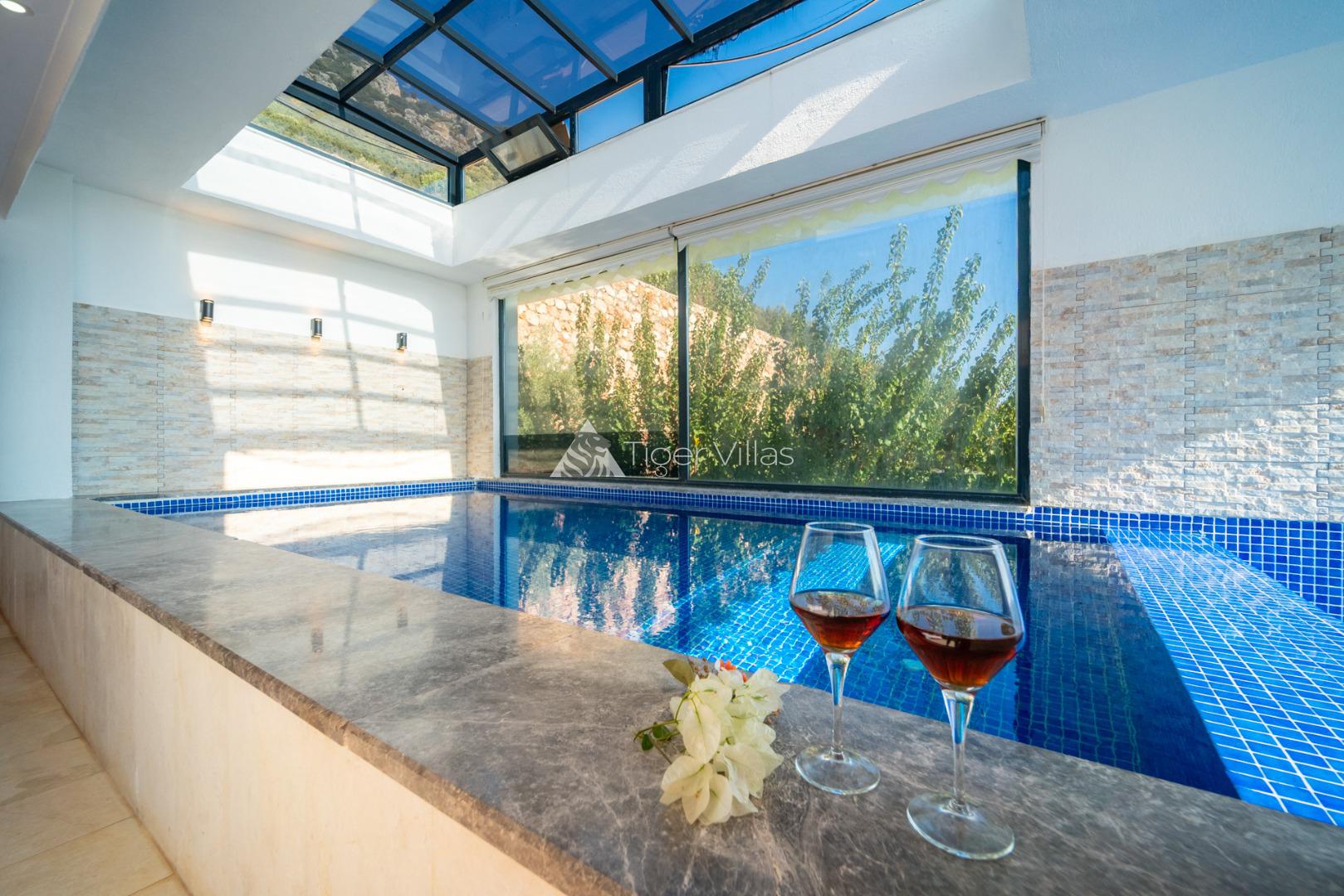 2 bedroom villa with indoor pool and jacuzzi ideal for honeymooners with sheltered pool terrace in Kördere area of Kalkan