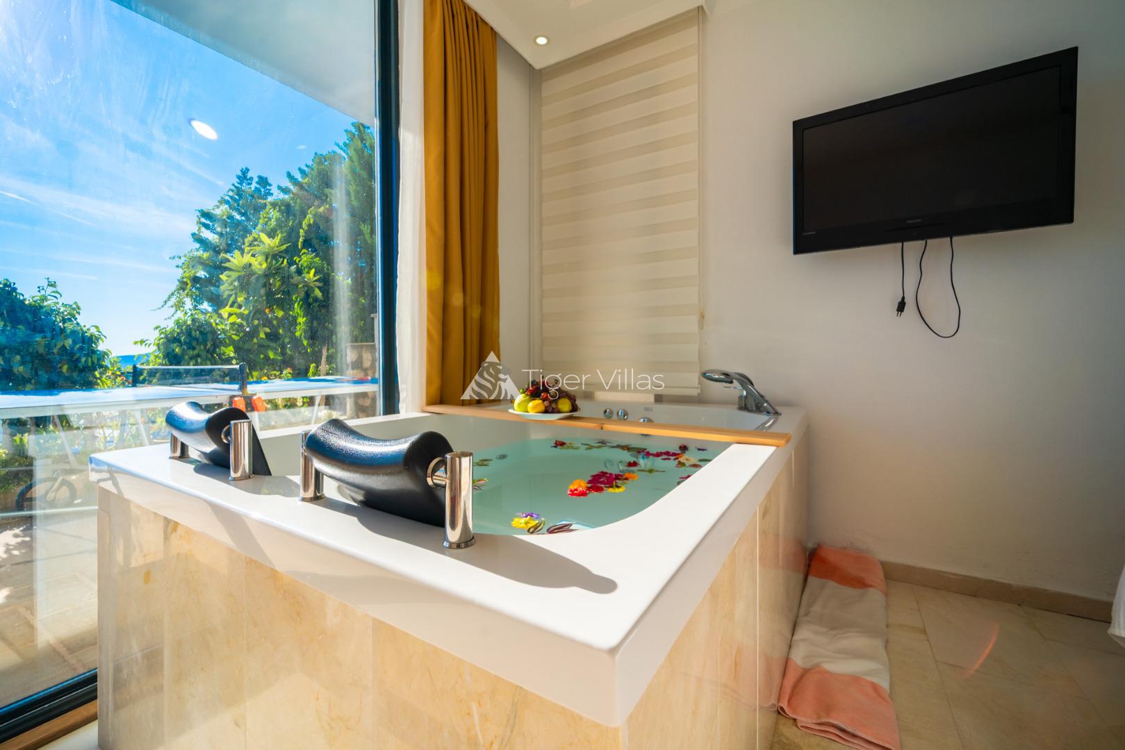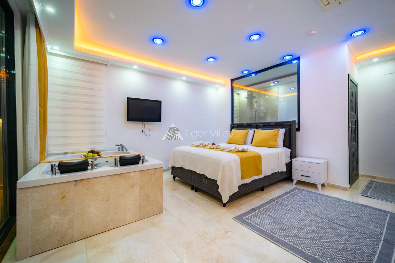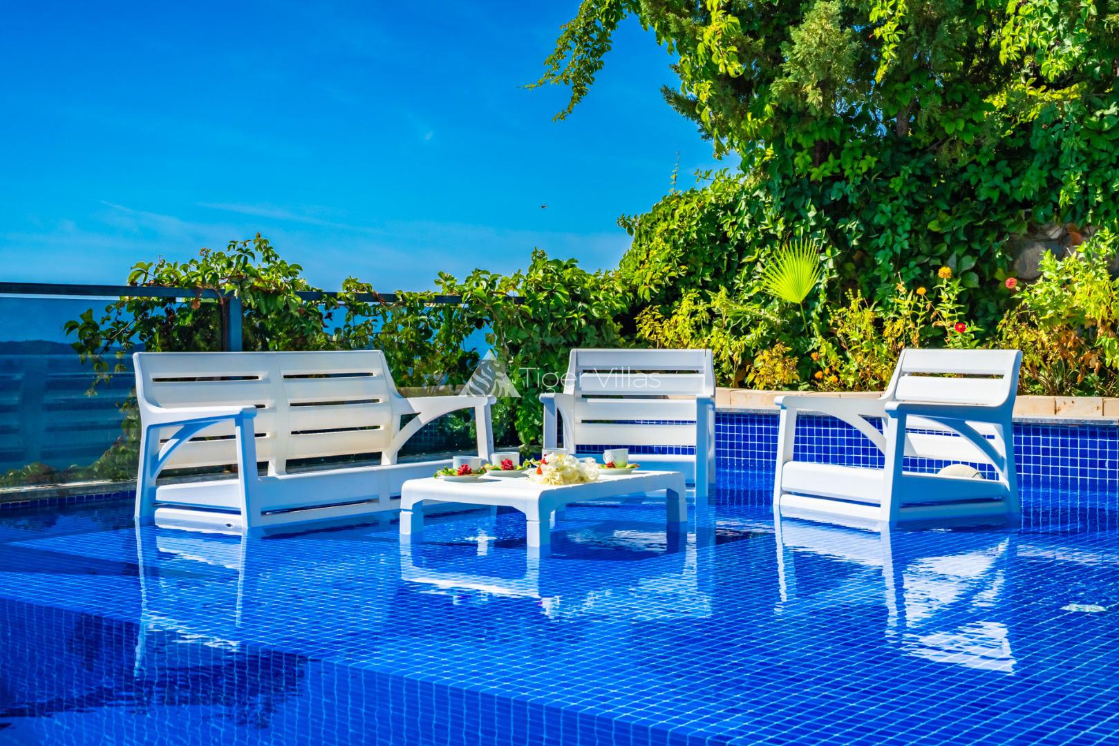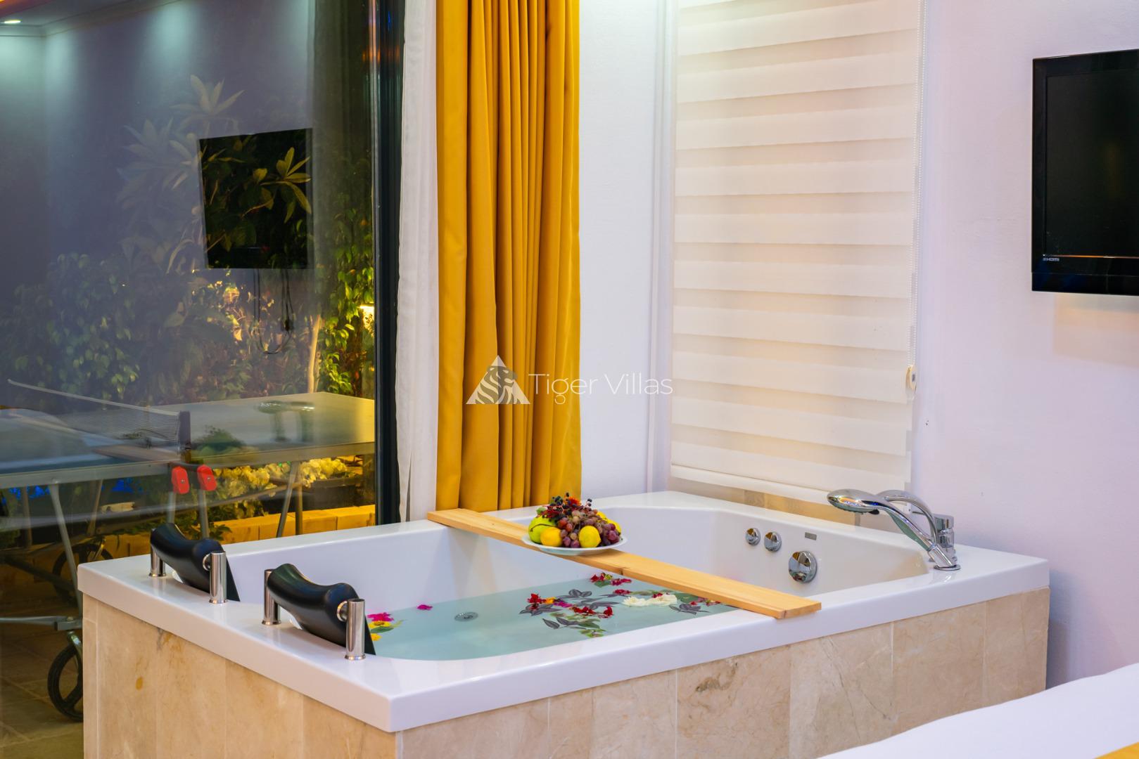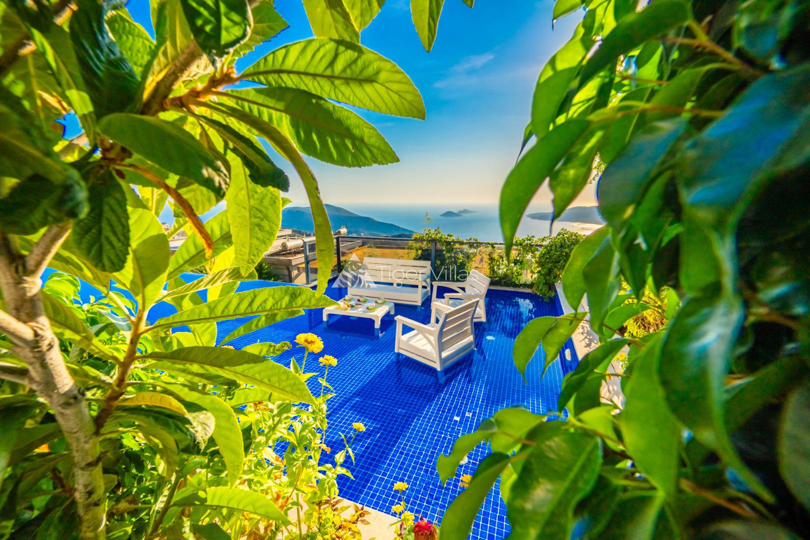 2 bedroom villa with indoor pool and jacuzzi ideal for honeymooners with sheltered pool terrace in Kördere area of Kalkan
