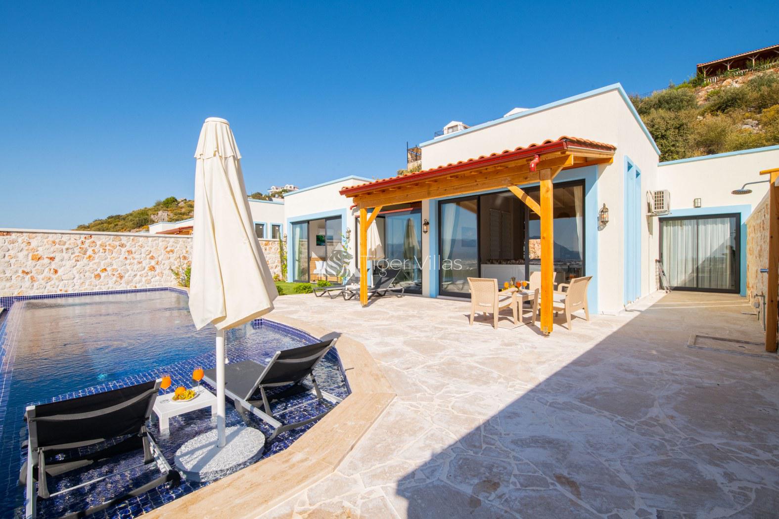 Two bedroom four person villa with private pool for rent in Yeşilköy area of Kalkan