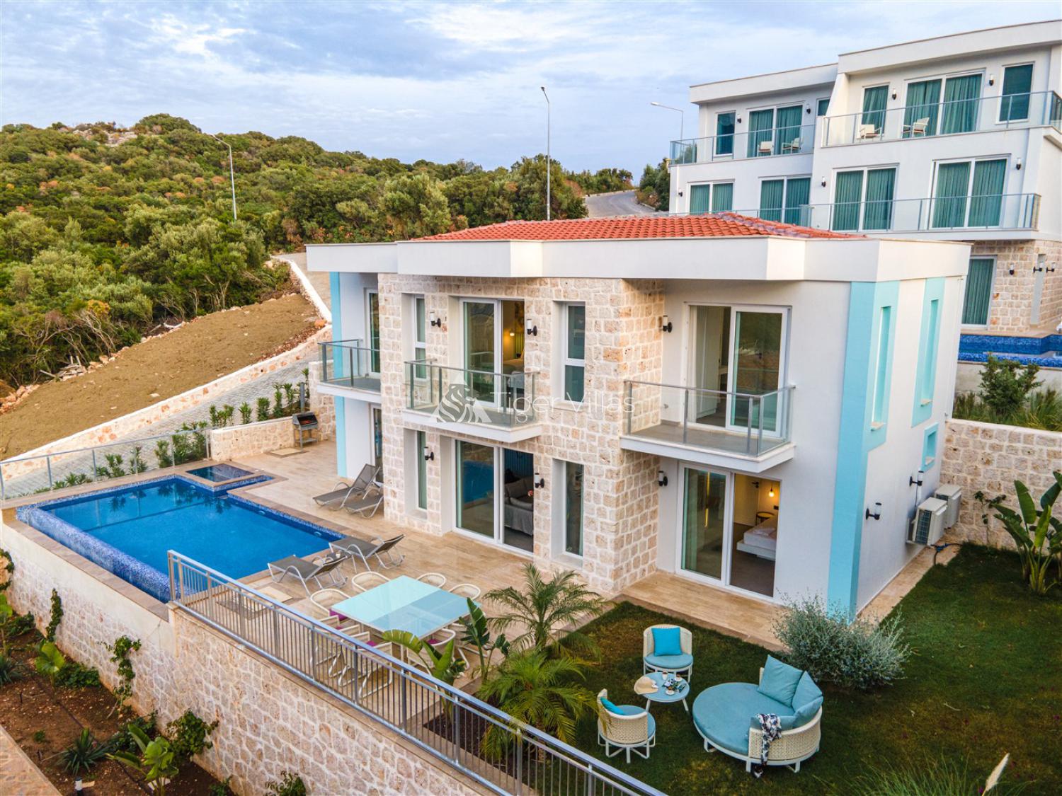 Villa Kanyon Bloom, our villa for rent is located on the Kas Çukurbağ Peninsula, which is full of unique beauties. It has sea views from the 1st and 2nd floors. The distance of our villa to the sea is one hundred and fifty meters, and you can enjoy both the sea and the pool. Our villa is five minutes away from the center of Kas. There are four villas side by side in the same location, and each of our villas has a private pool and car park. It is among our ideal options for large families and groups of friends and offers you a pleasant holiday environment.