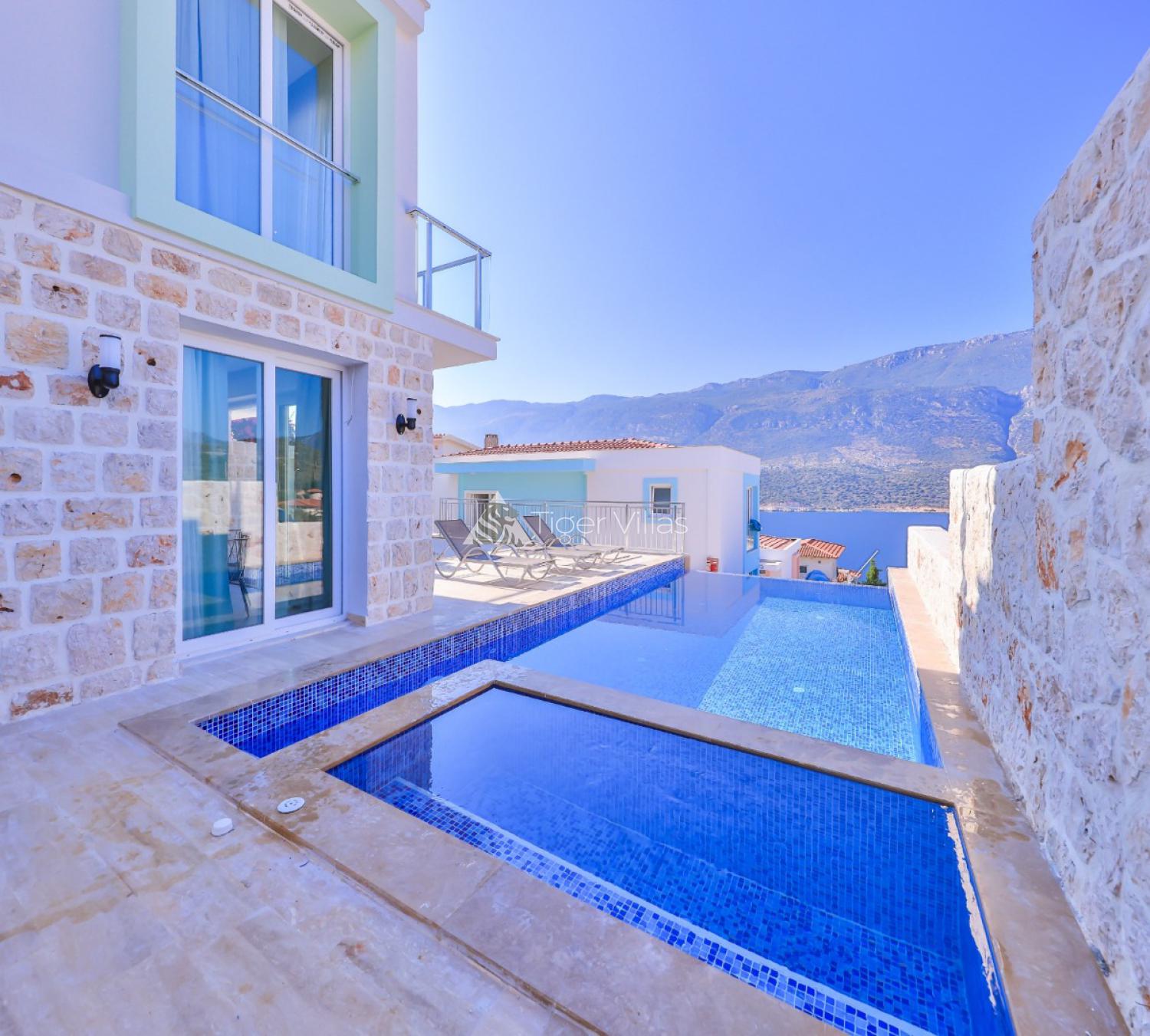 Four bedroom, eight person sea view villa for rent in Kas Cukurbag region