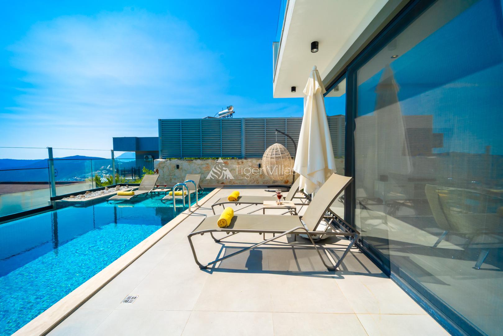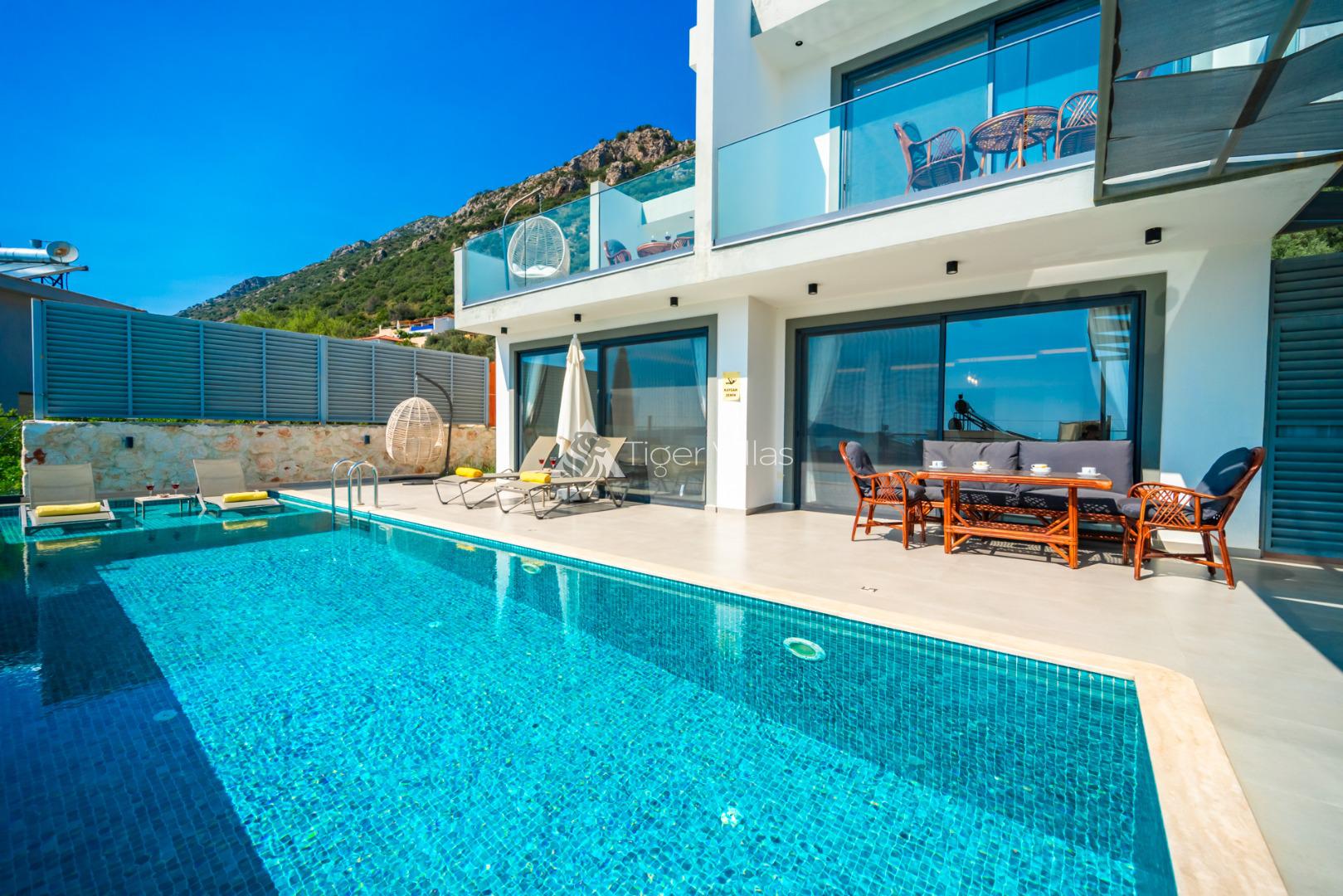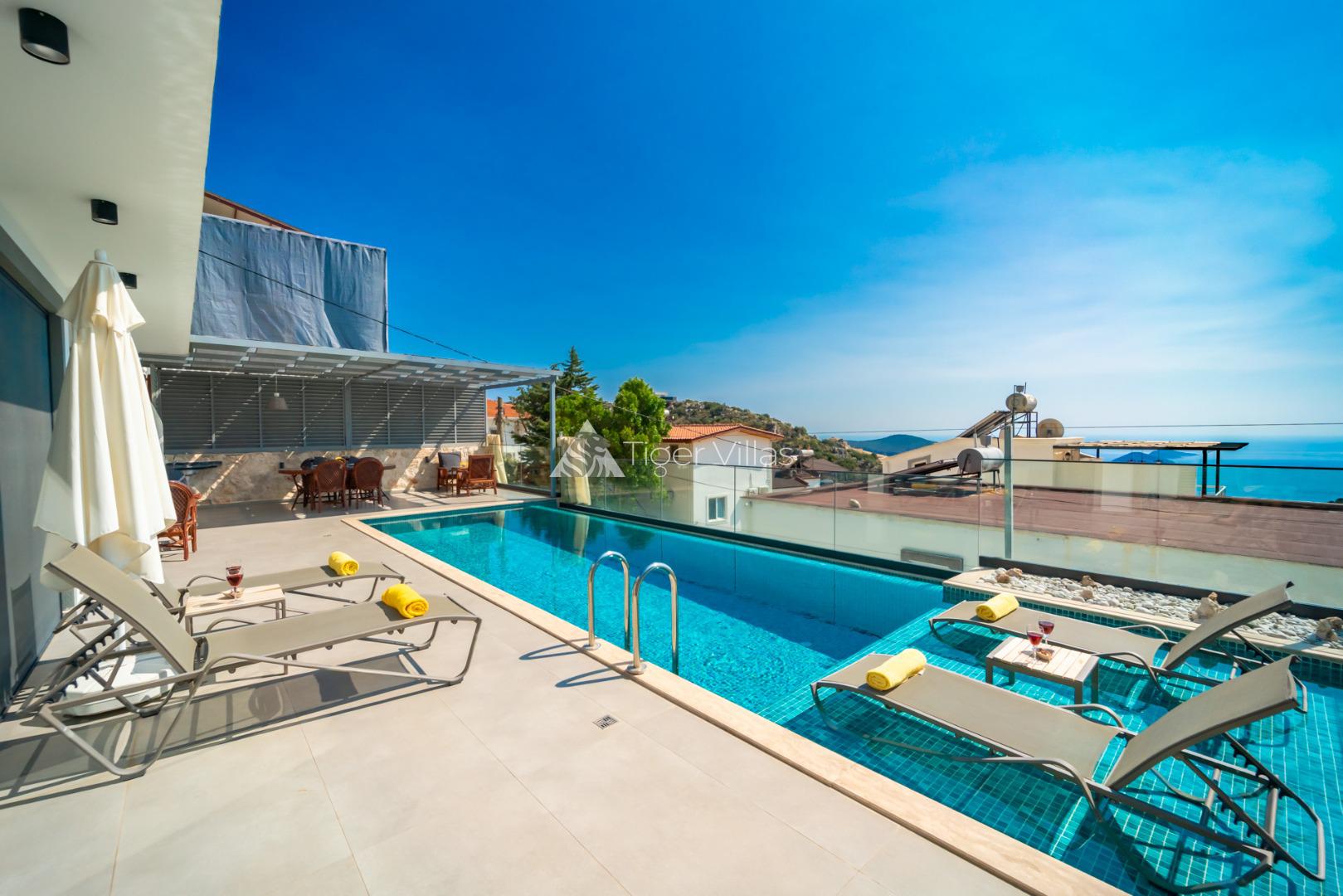 Located Kalkan/Kördere Area, 2 bedrooms/Sleeps 4, Jacuzzi, Closed Pool, Alfresco Jacuzzi, Heated Pool, Unvisible Pool Terrace, Infinity Pool, Unintrrupted Sea Views