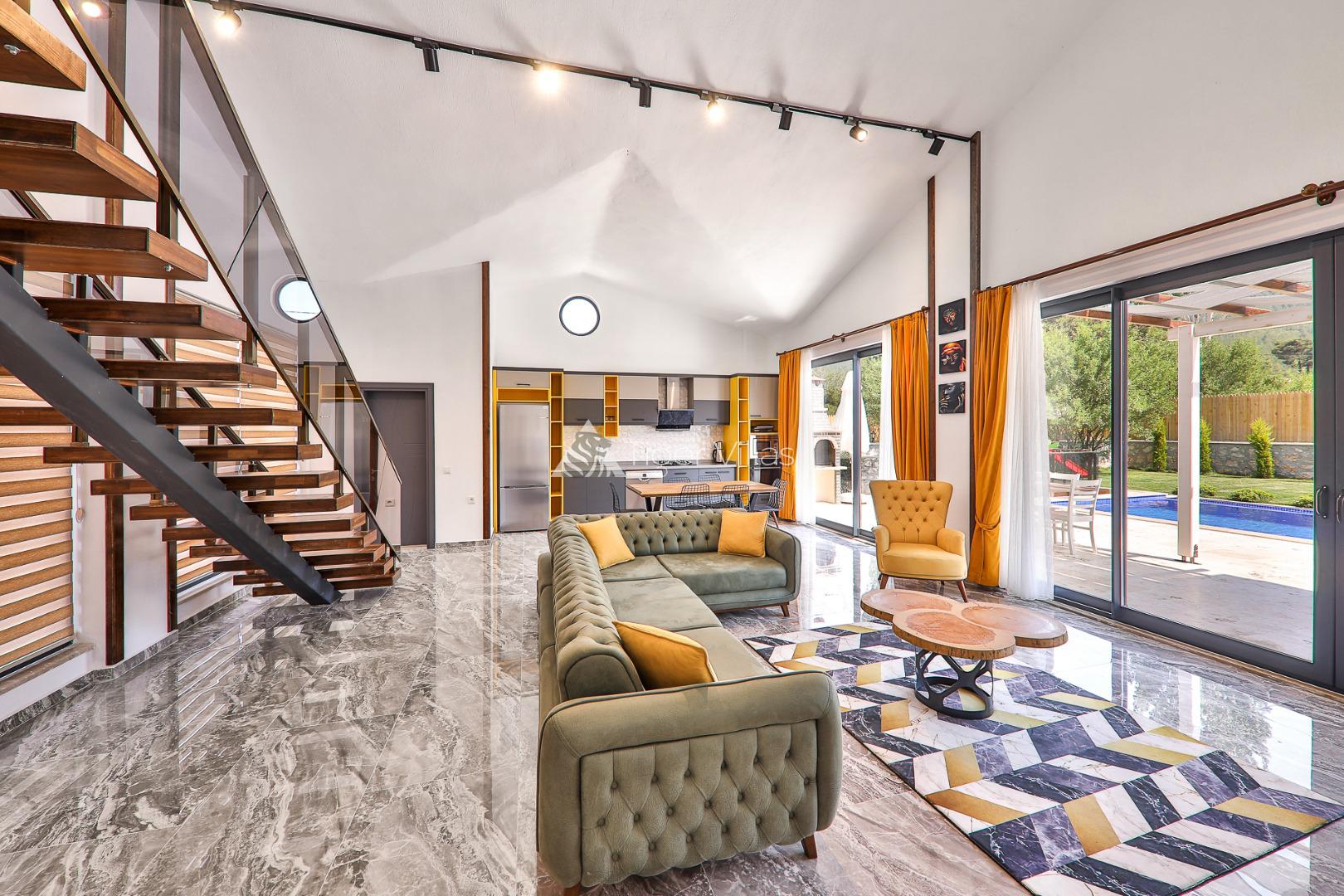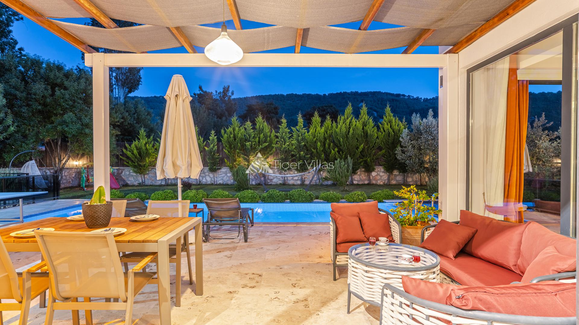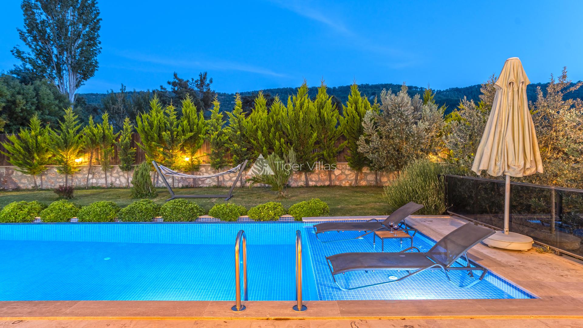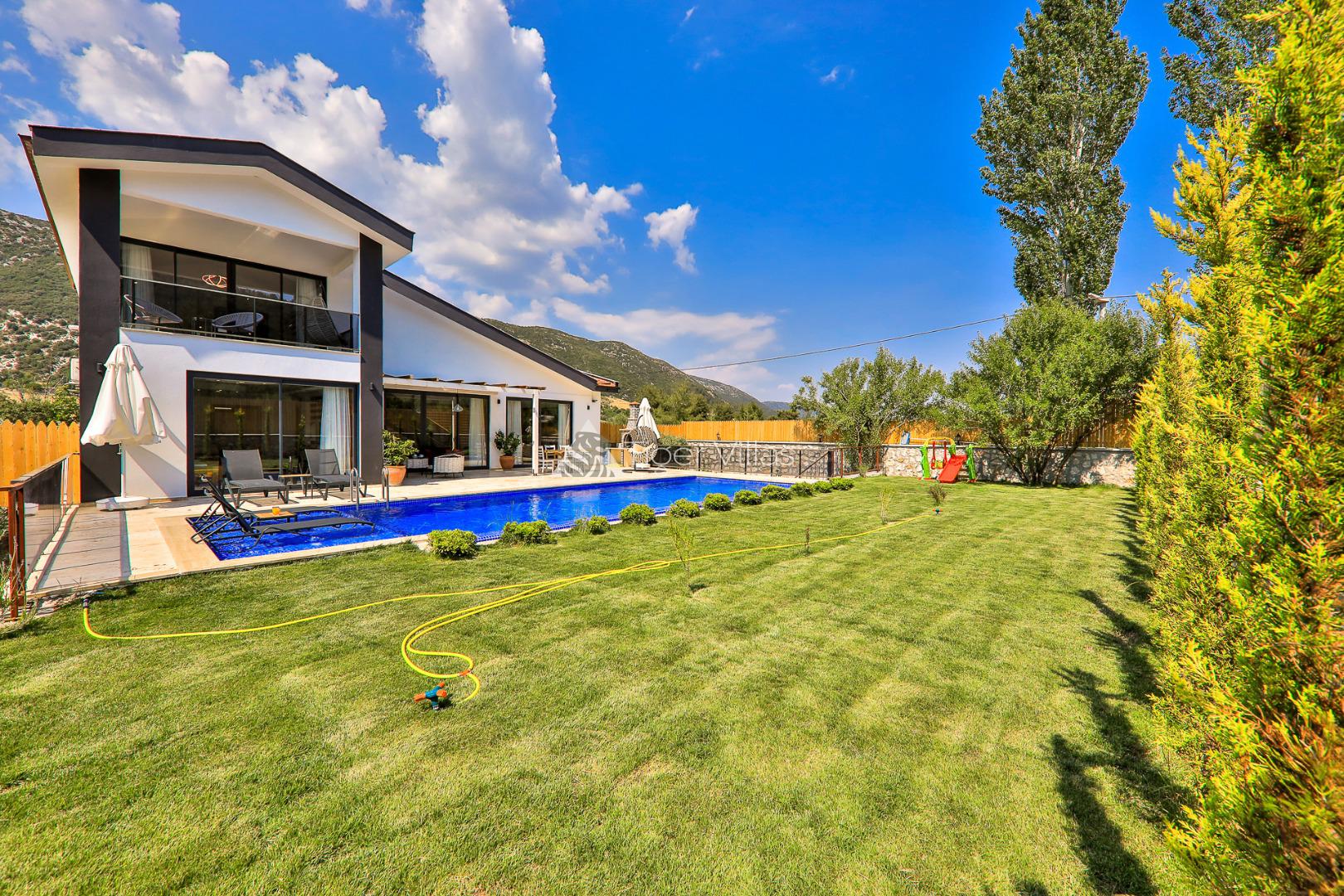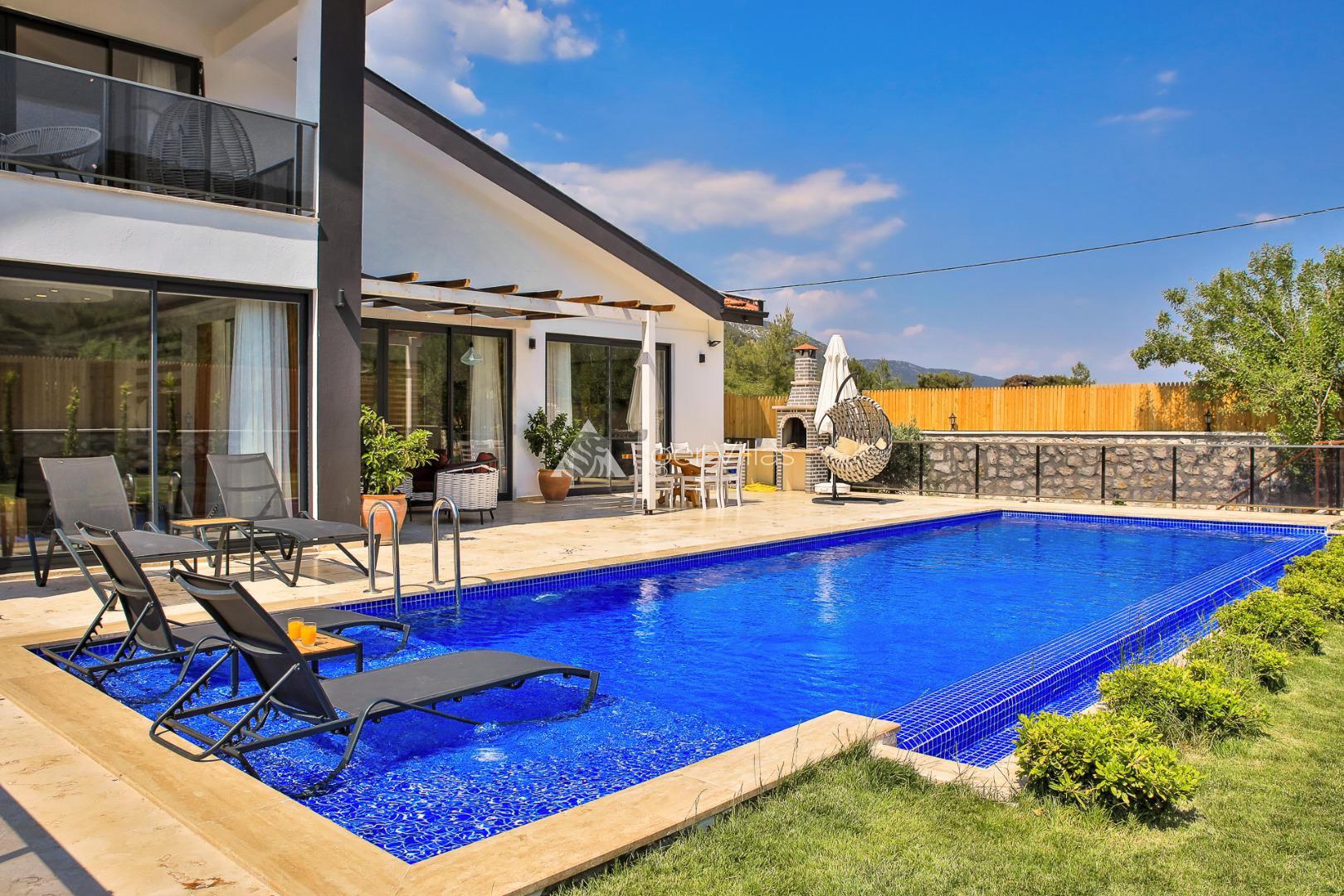 Honeymoon villa for rent in Kalkan Sarıbelen area with sheltered pool area