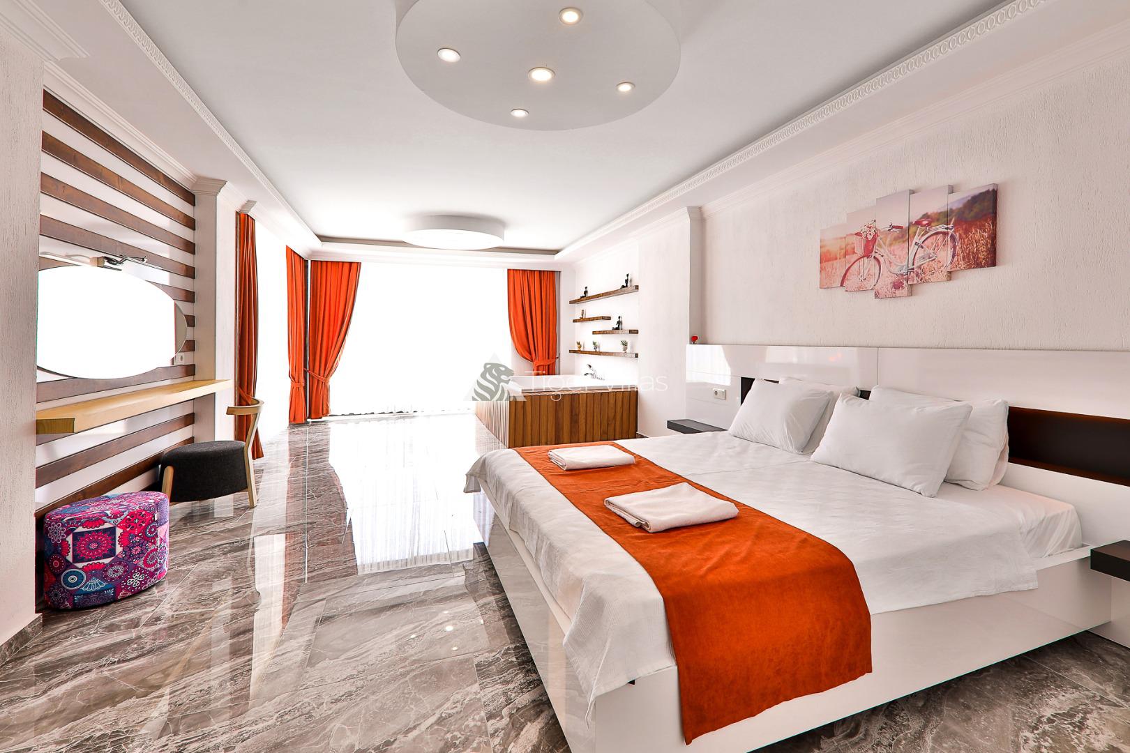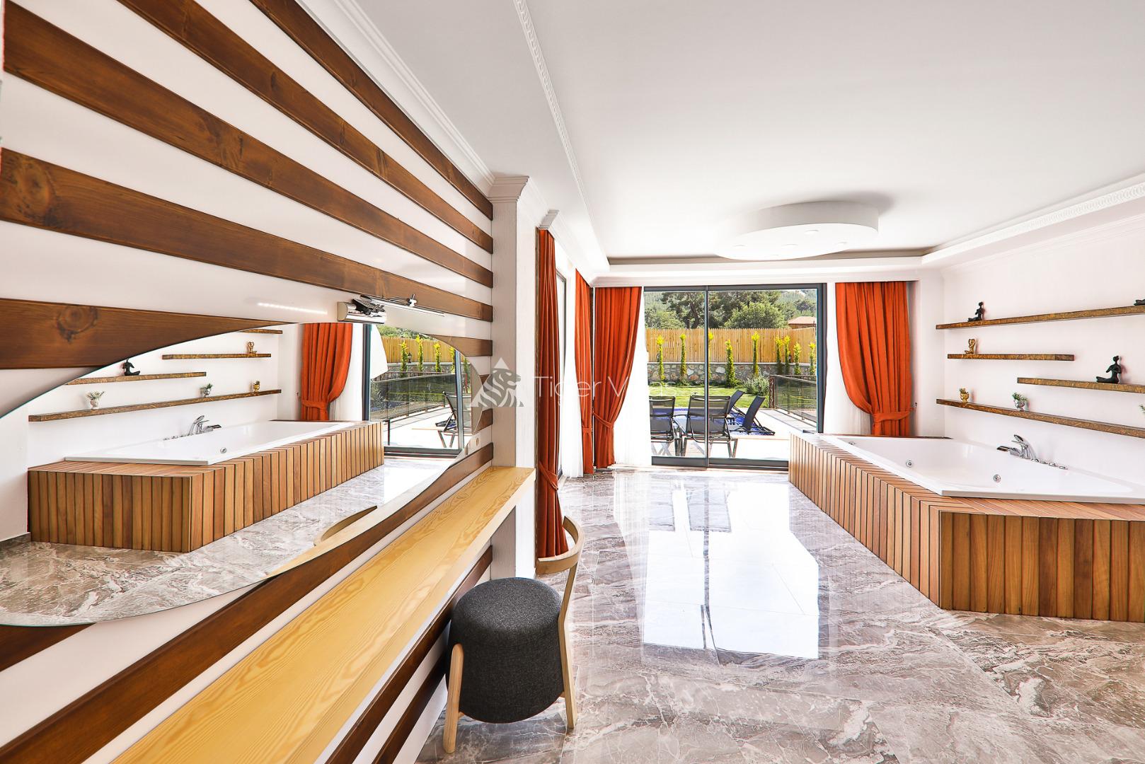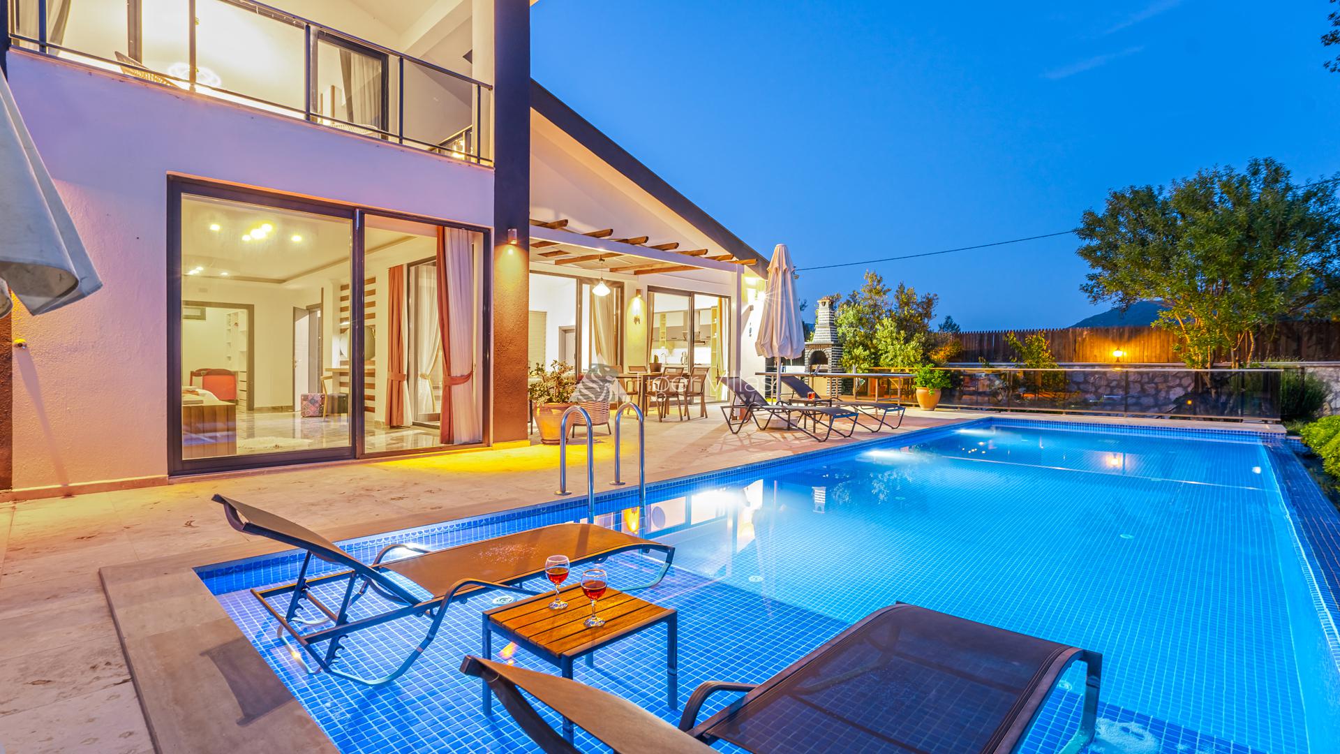 Located in Kaş-Sarıbelen district, our luxury holiday villa has a nature view. Our villa, which has 2 bedrooms and a capacity of 4 people, has a choice of Secluded Villas, Villas with Jacuzzi and Honeymoon Villas. The pool terrace of our villa is fully sheltered. Located close to the centre of Sarıbelen, our villa is a very suitable option, especially for our honeymoon guests.