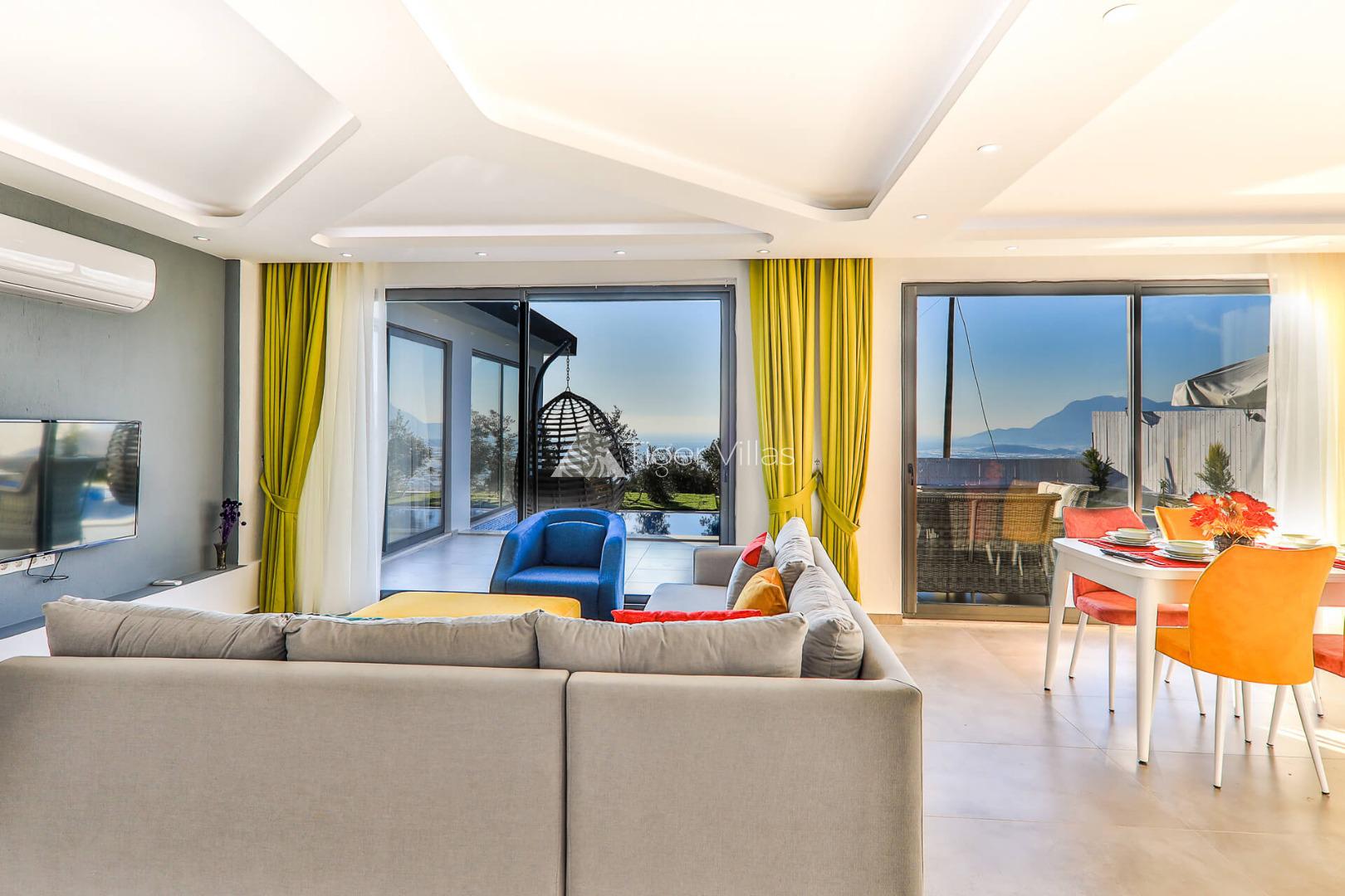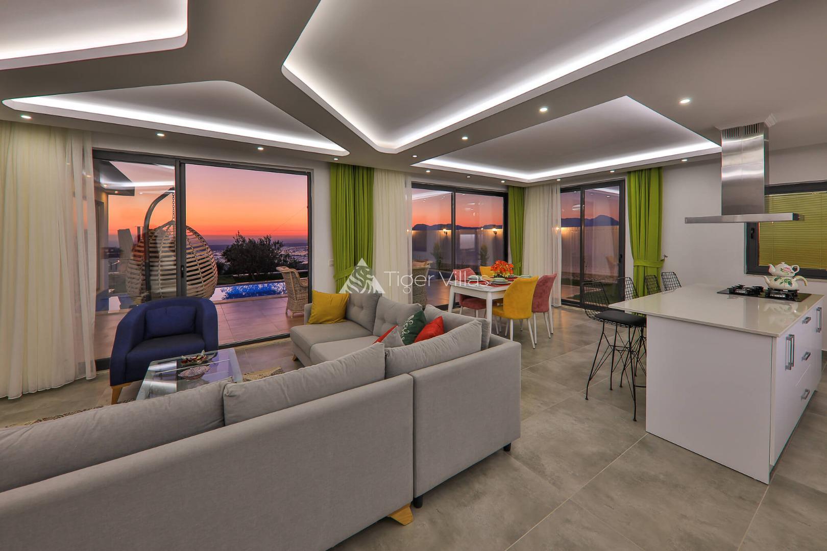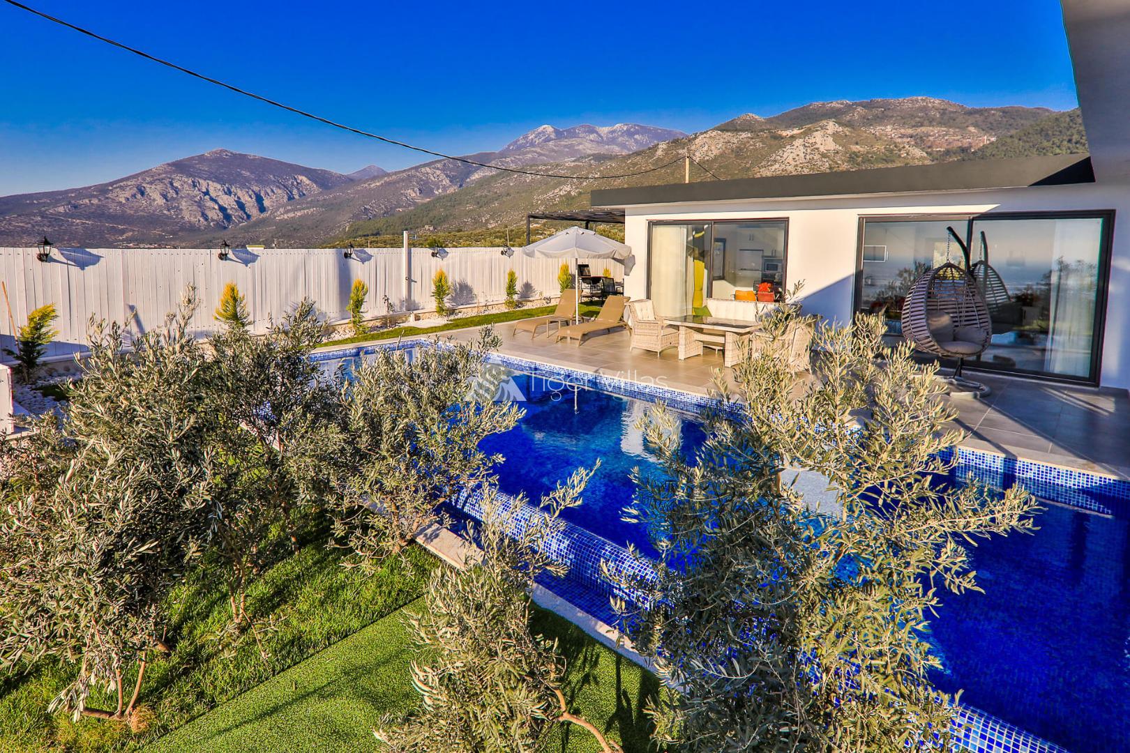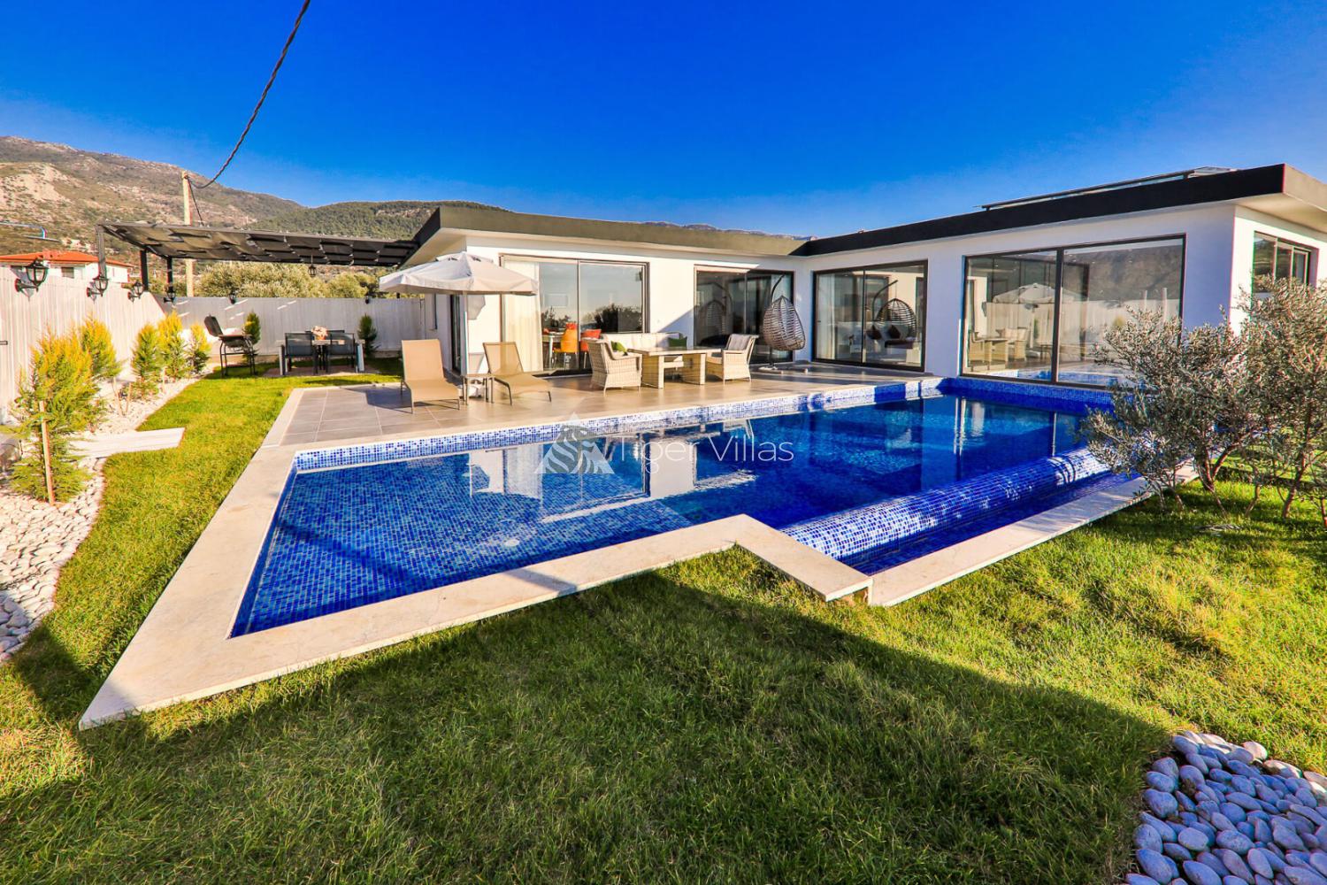 Villa Mehcan, a 1 bedroom conservative holiday villa with a capacity of 2 people located in Üzümlü village of Kalkan, Mehcan is an ideal option for our honeymoon couples who want to feel special. Villa Mehcan, whose pool and garden are not visible from the outside due to its location and the surrounding curtain system, promises a pleasant holiday in a secluded, comfortable and quiet environment. It is also frequently preferred as honeymoon villas. Villa Mehcan has been designed in a very luxurious way and has a sauna, jacuzzi, heated indoor pool and cinema room.