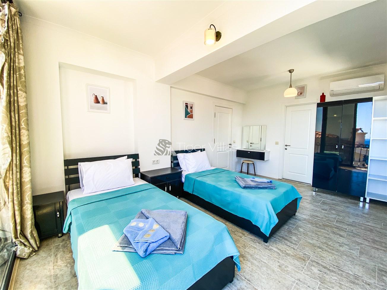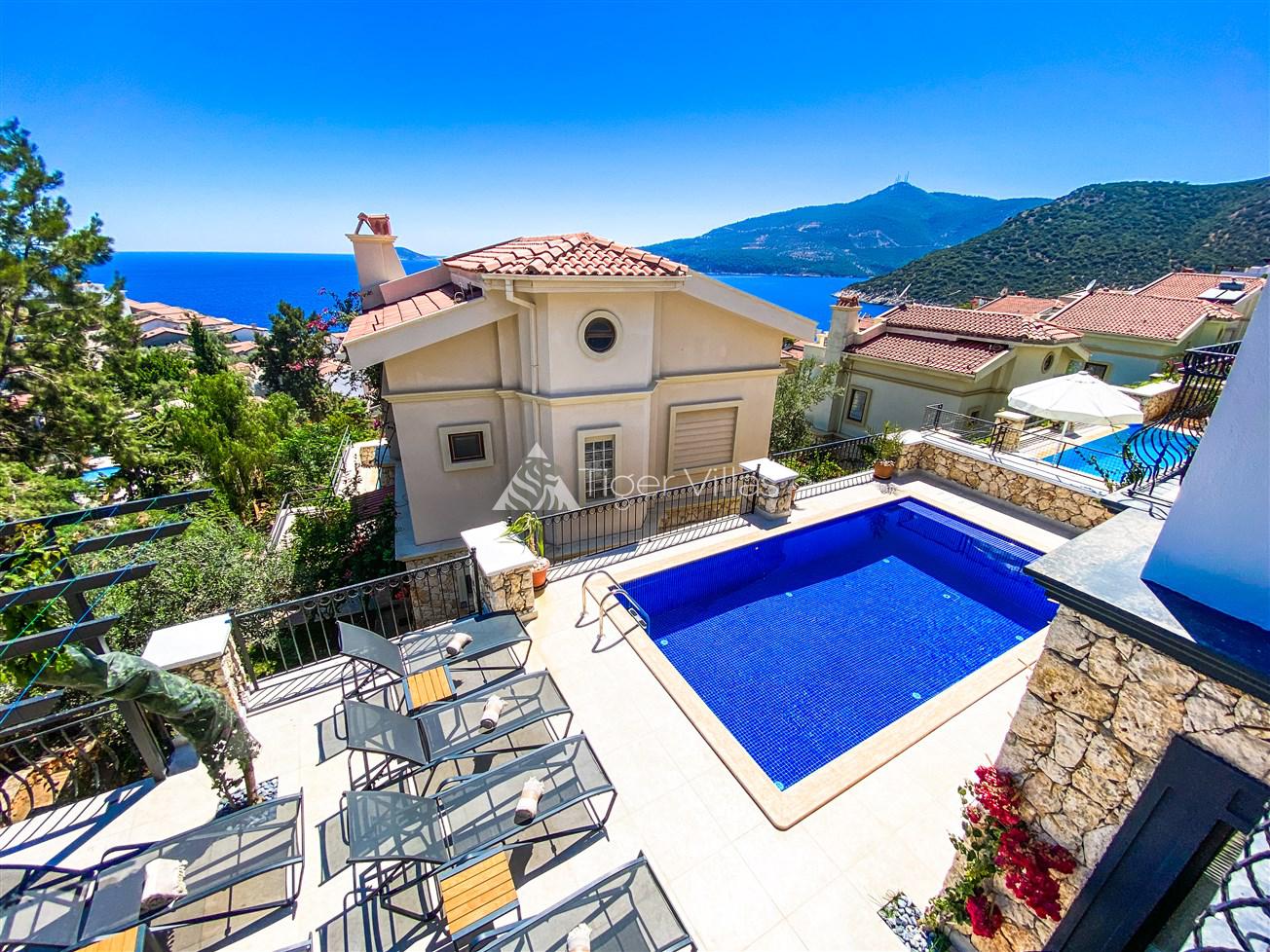 Sea view villa with three bedrooms and a private pool suitable for large families with an accommodation capacity of six people, located in Kalamar area of Kaş Kalkan Region of Antalya. Our villa with Kalamar bay and sea view has the capacity to comfortably accommodate six people with its two double and two single beds. It has a useful pool terrace. With its central location, it is very close to both restaurants and markets and the sea.