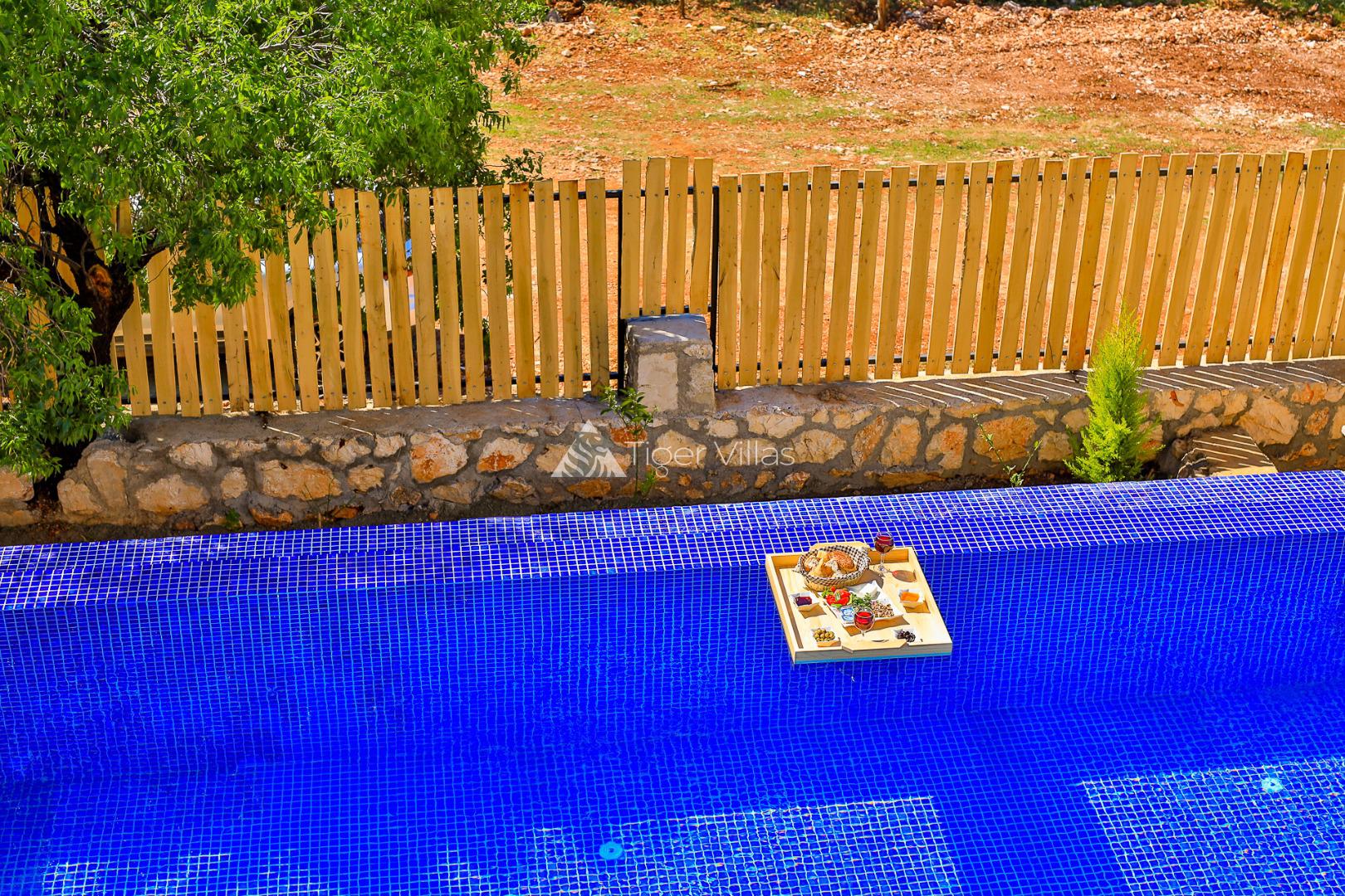 There is a jacuzzi. The bathroom and toilet of the downstairs bedroom are in the common area outside the room. The pool and pool terrace of our rental villa, where every detail is considered to the finest detail, has been made sheltered. Conservative families, honeymooners and extended families can easily choose it. At the same time, there is a children's pool integrated into the outside private swimming pool. You can choose Villa Morens for a holiday in a peaceful summer villa in silence and calmness.