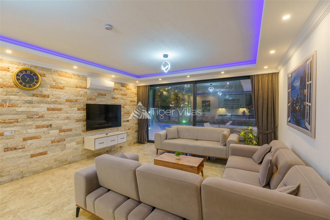 Located in the lap of nature in the village of Kalkan Sarıbelen, Villa Saha provides accommodation for up to 4 people. Villa Saha, which is designed for honeymoon couples and families with children, has a jacuzzi in the master bedroom. Our villa, which is included in our conservative villas and honeymoon villas, has an indescribable forest air and a relaxing effect.