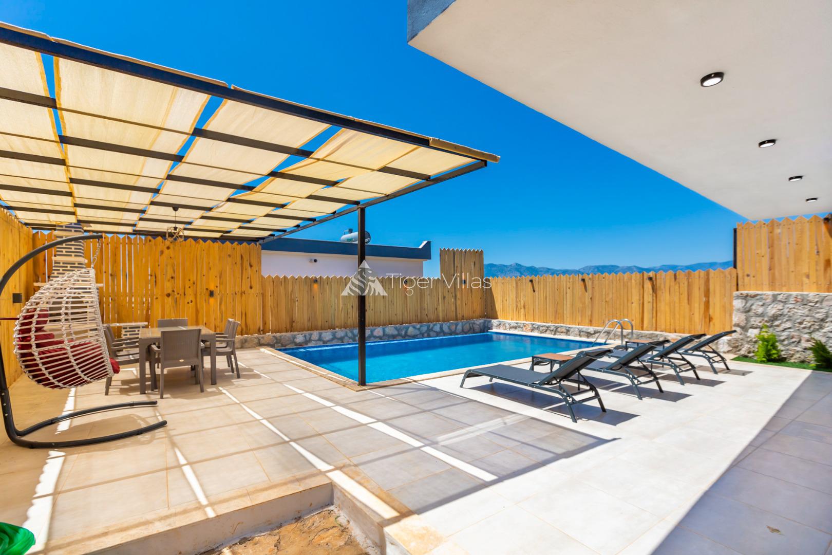 Villa Sardem 2 is an ideal villa for honeymoon couples and families who want a holiday away from the crowd and the noise of the city, intertwined with nature in Patara, Kalkan. Our building has a private pool and the pool is fully sheltered. We have villas named Villa Sardem 1-4-3 near our villa, which has a jacuzzi in the main bedroom.