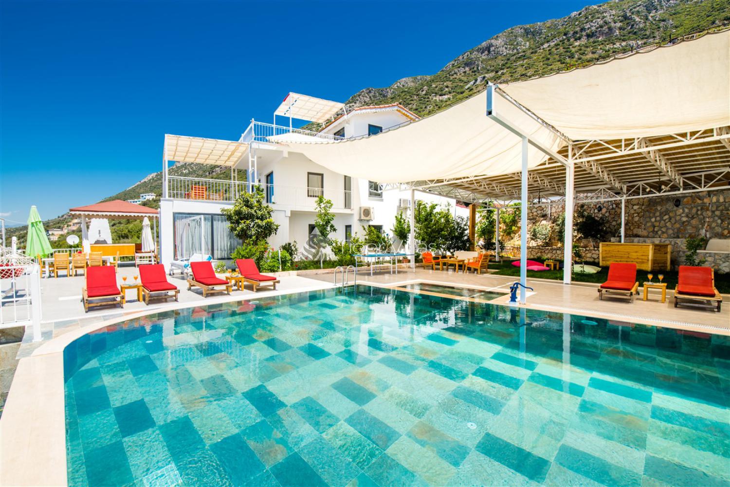 Villa Sebos is located in Kördere, which has the most beautiful city view of Kalkan. It has a magnificent sea view. Villa Sebos has 6 bedrooms, a living room and a kitchen. The distance to our city center is 5 minutes by car. There are air conditioner in the rooms. Our villa has 4 single beds and 4 double beds. Garden and a swimming pool for you to enjoy your holiday. The main feature of our villas is that they can accommodate large groups, can be closed with a curtain system and it is an economical villa.