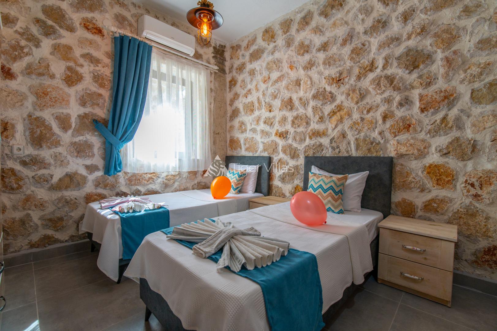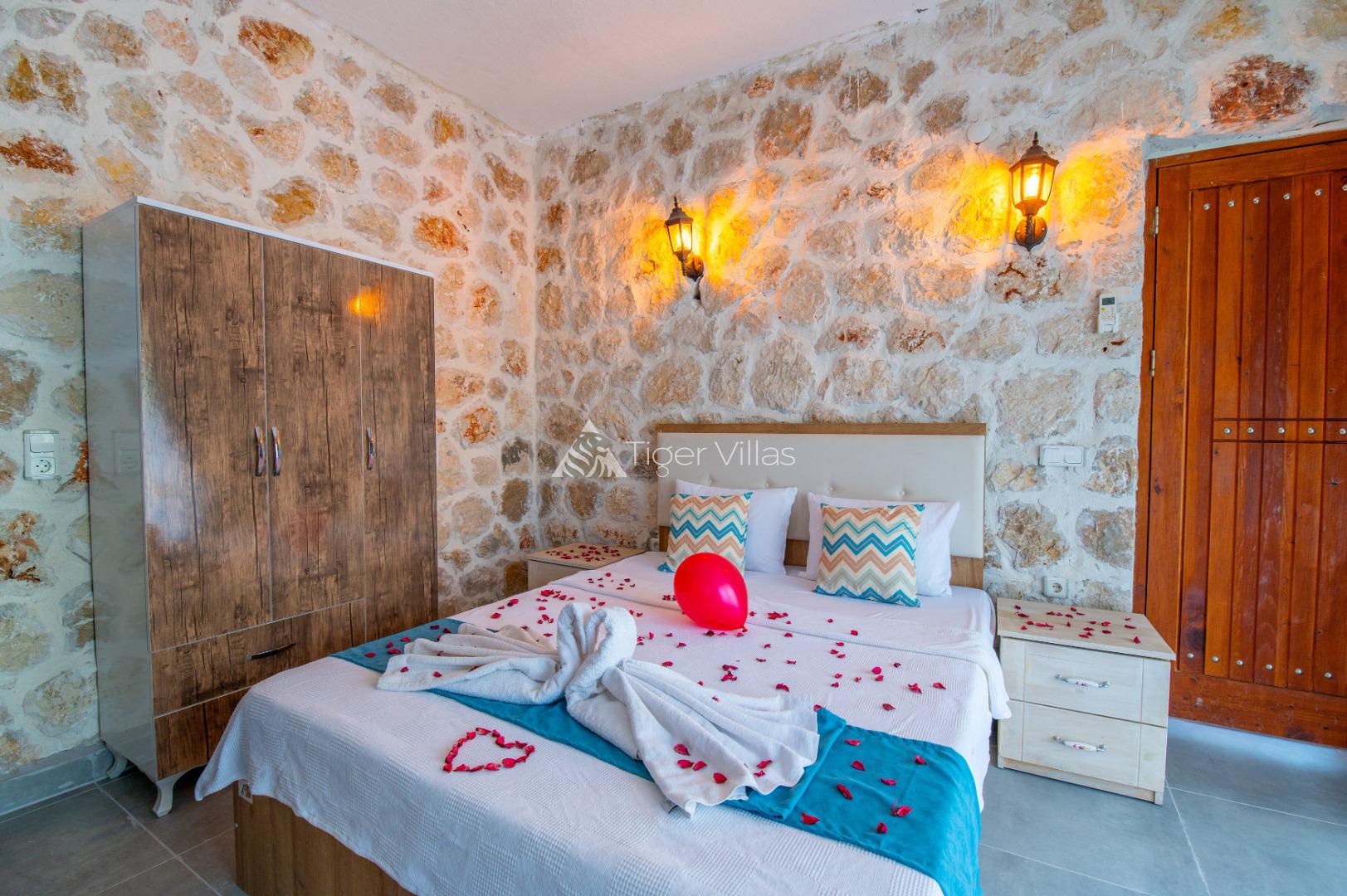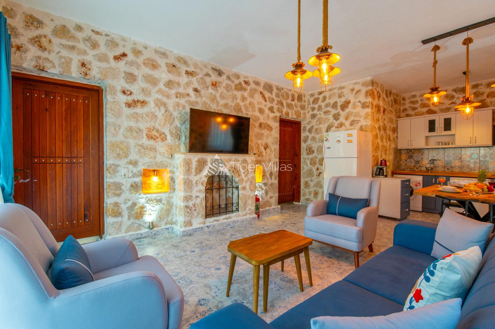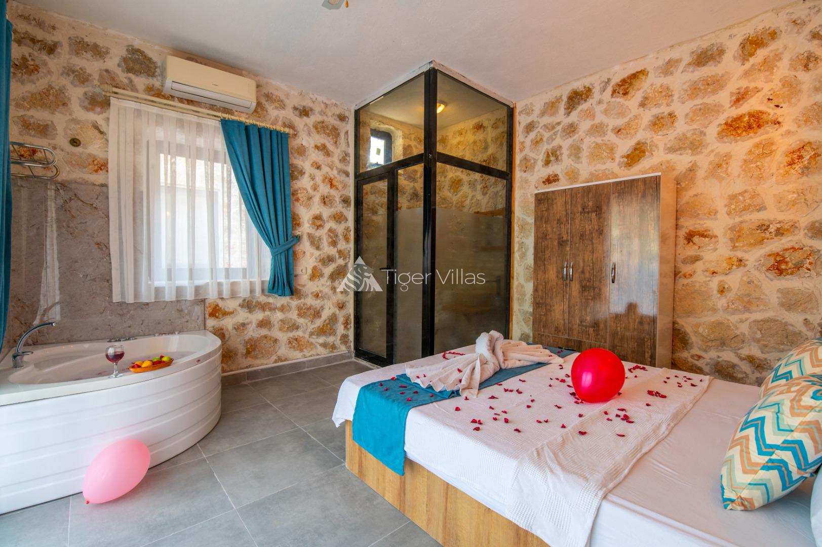 Summer Rental Villa Stone House 2, in the Islamlar area of Kalkan, with a 2-bedroom capacity for 4 people, our villa is in our options of Conservative Villas, Villas with Jacuzzi and Honeymoon Villas, our villa is ideal for families and couples looking for a conservative villa with stone architecture in a quiet and peaceful environment. It is also preferred by honeymoon couples. There is a jacuzzi in the master bedroom of our villa.