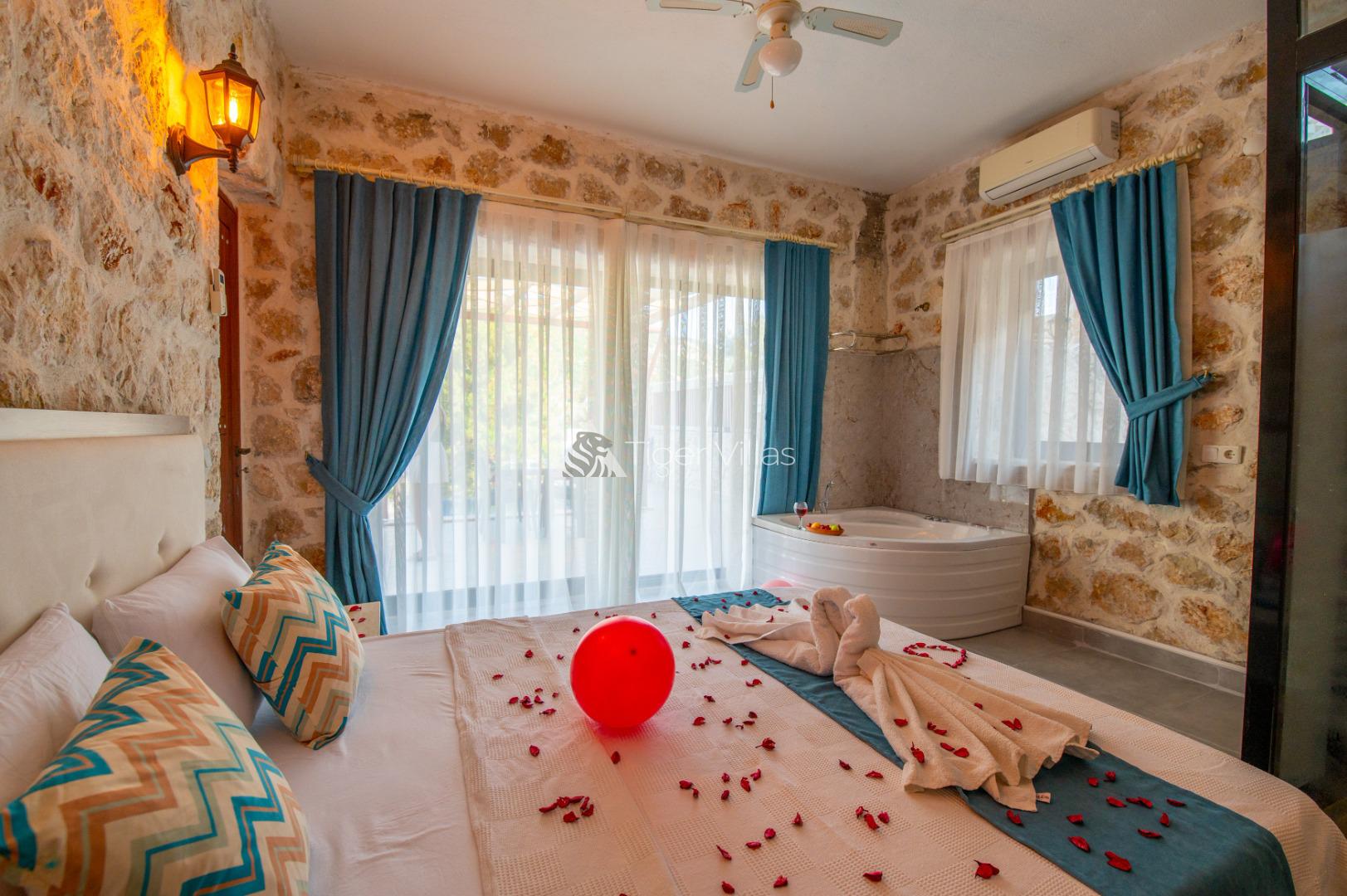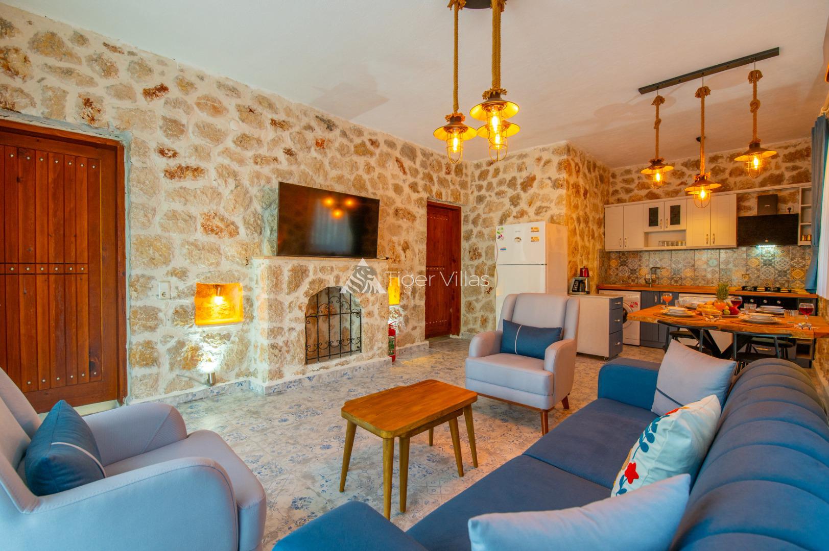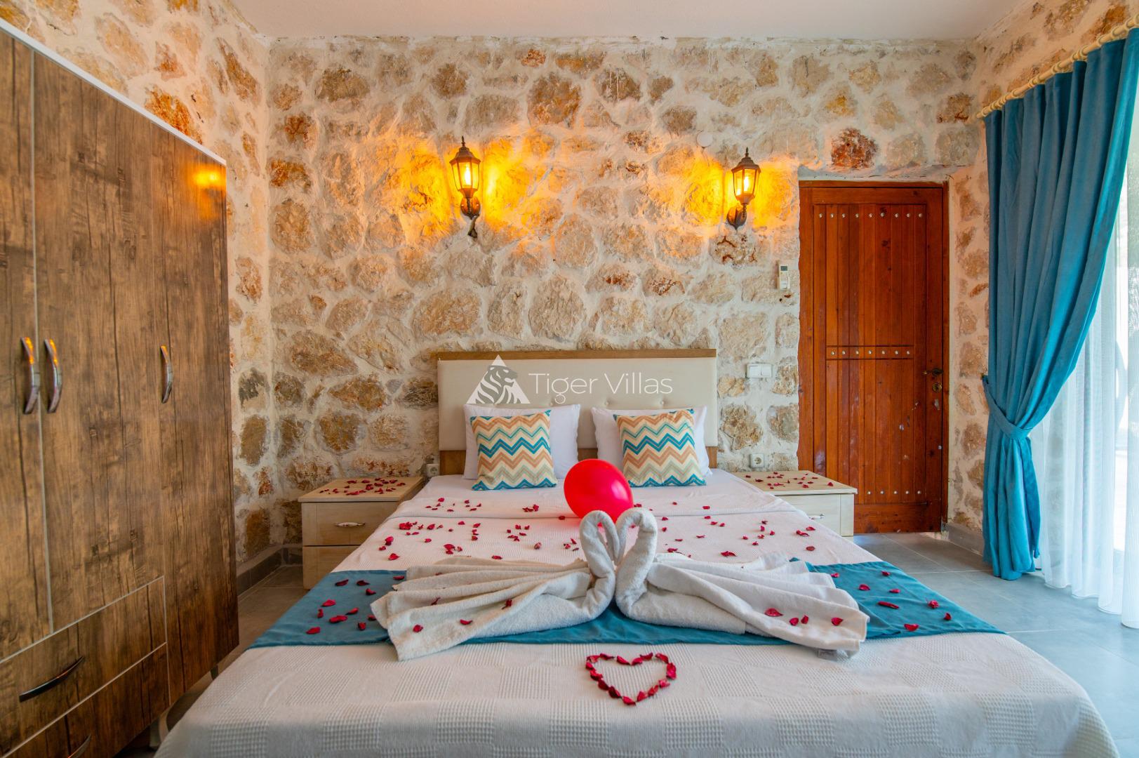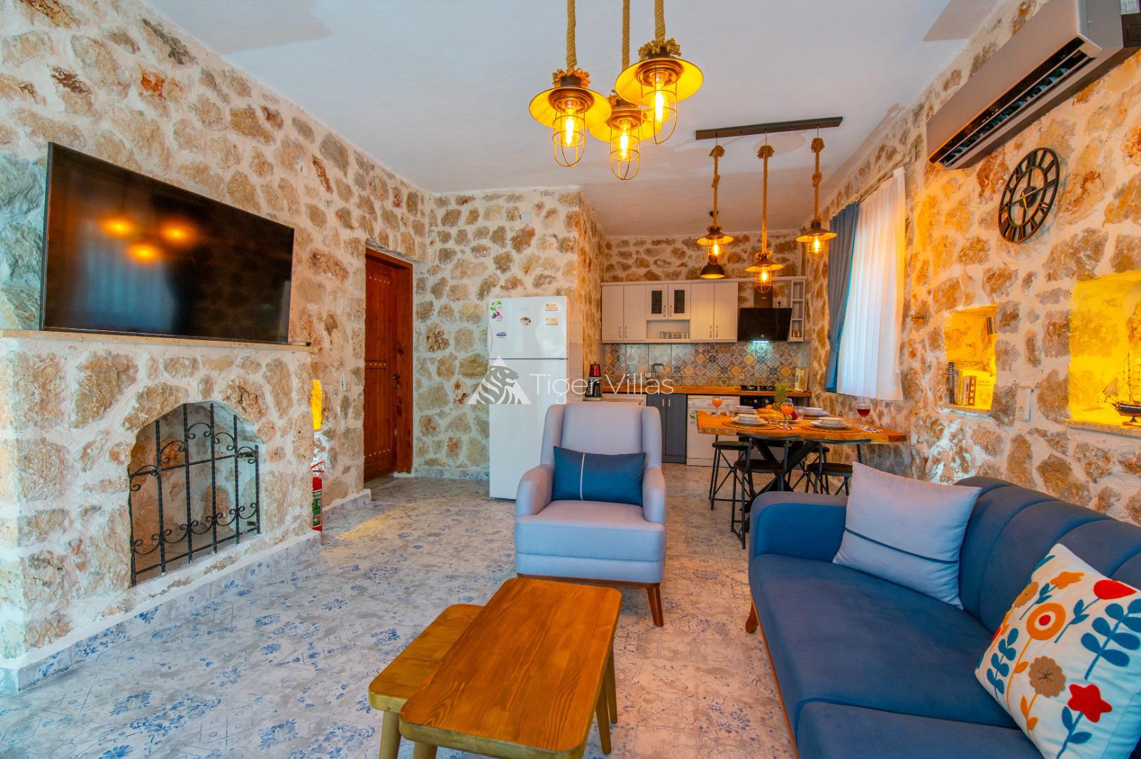 Summer Rental Villa Stone House 2, in the Islamlar area of Kalkan, with a 2-bedroom capacity for 4 people, our villa is in our options of Conservative Villas, Villas with Jacuzzi and Honeymoon Villas, our villa is ideal for families and couples looking for a conservative villa with stone architecture in a quiet and peaceful environment. It is also preferred by honeymoon couples. There is a jacuzzi in the master bedroom of our villa.