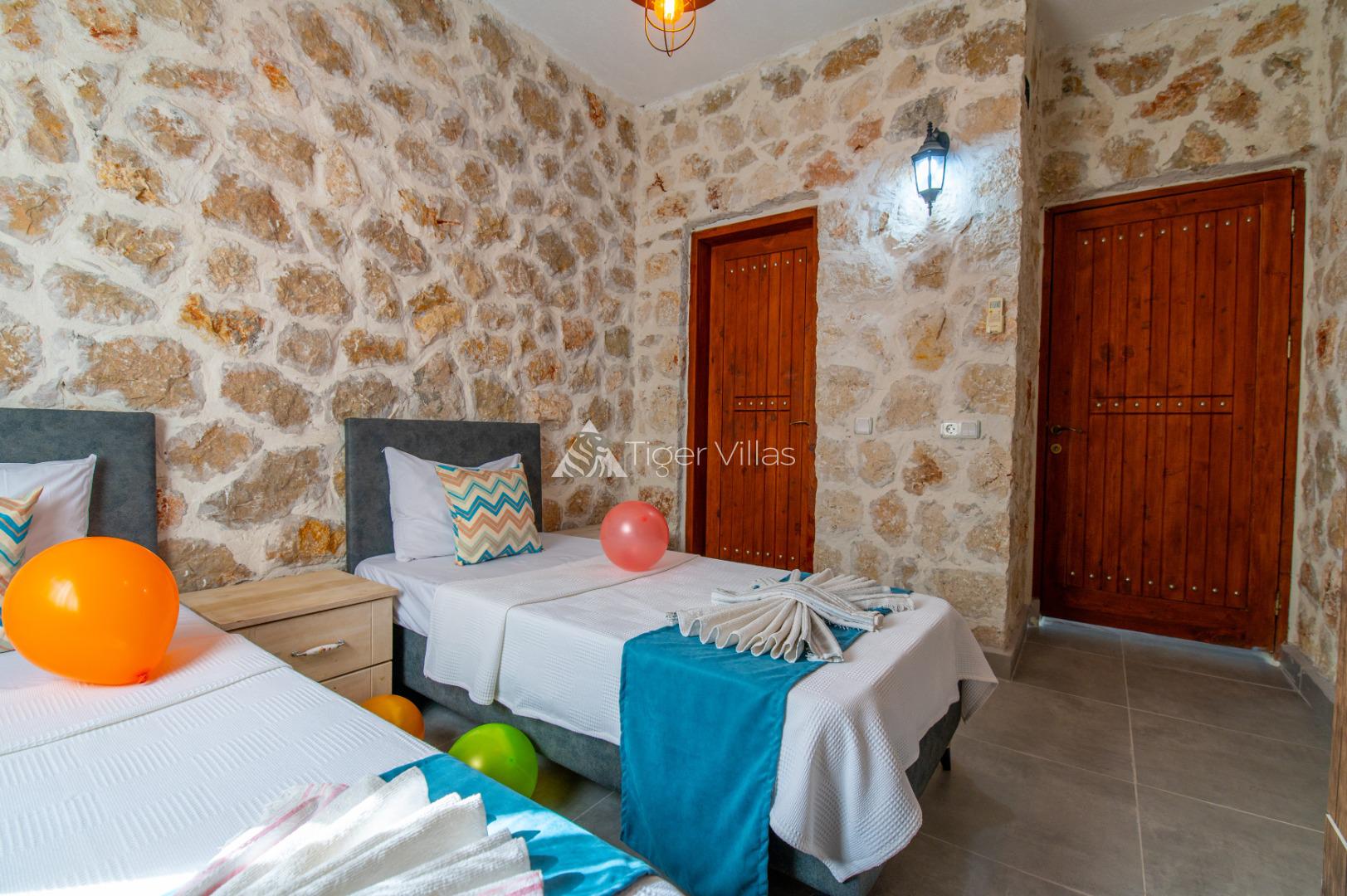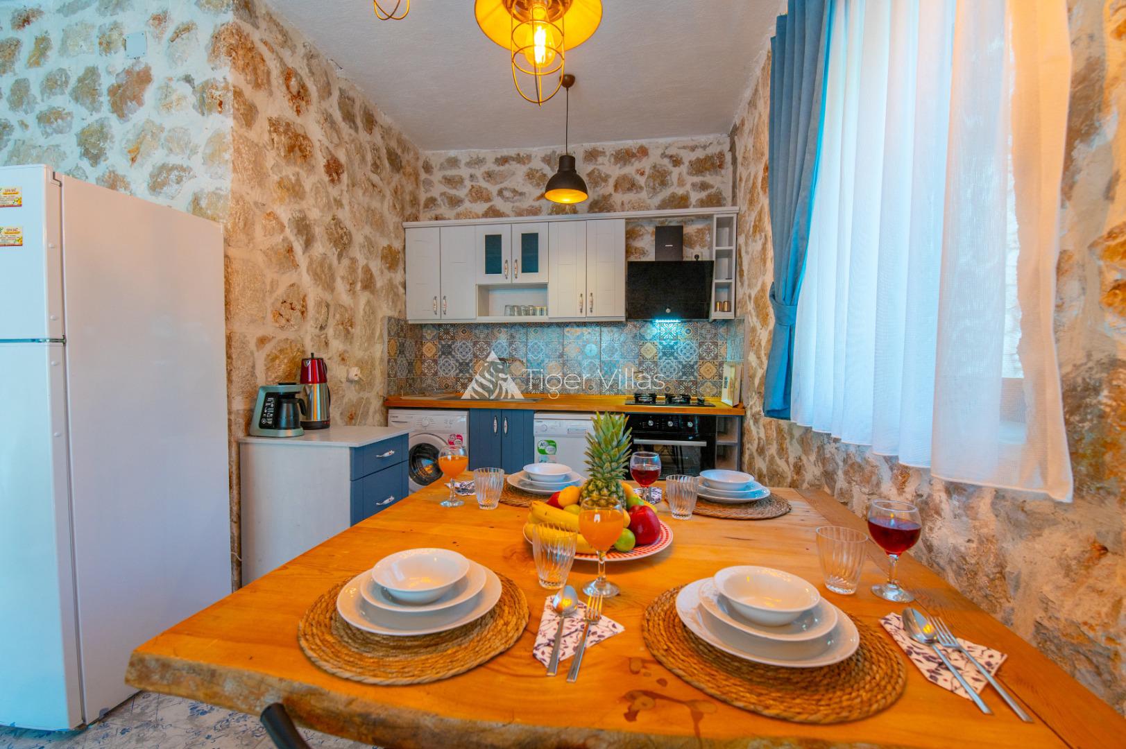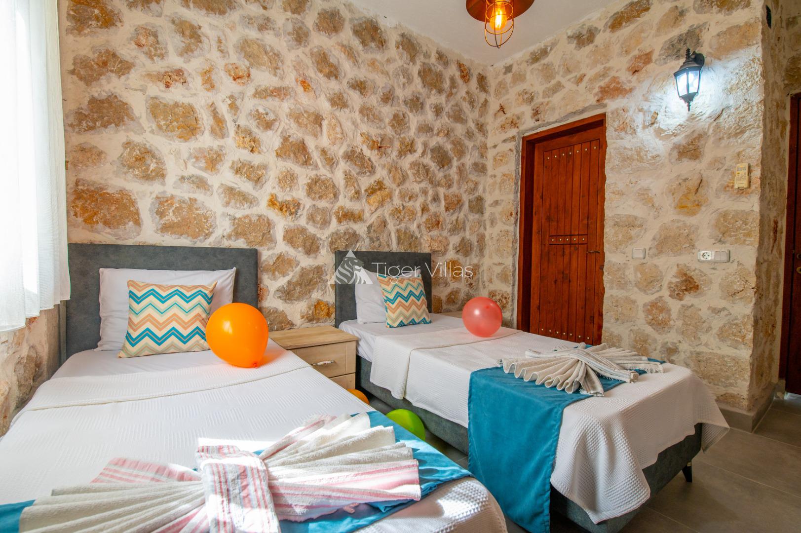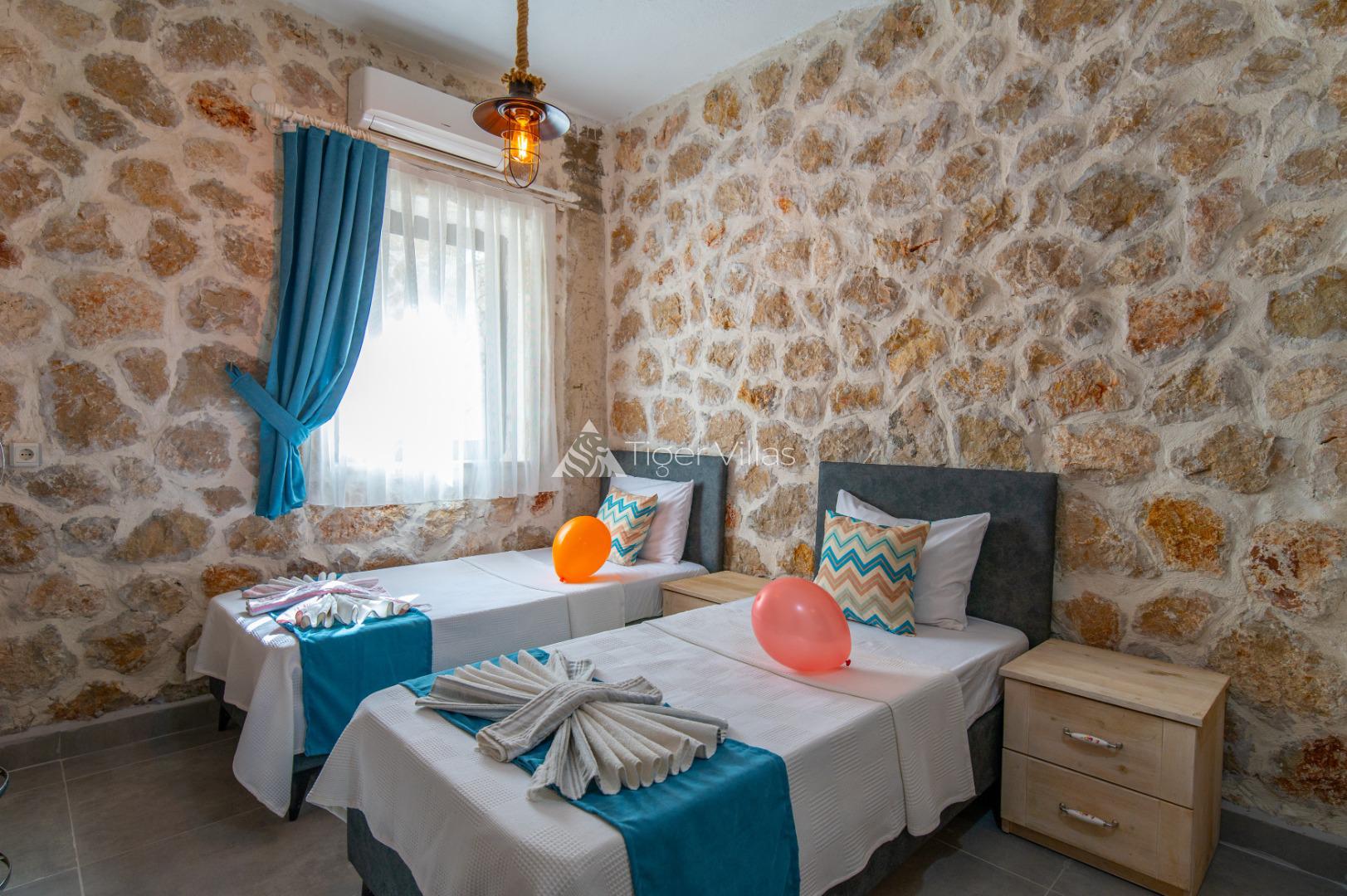 Summer Rental Villa Stone House 2, in the Islamlar area of Kalkan, with a 2-bedroom capacity for 4 people, our villa is in our options of Conservative Villas, Villas with Jacuzzi and Honeymoon Villas, our villa is ideal for families and couples looking for a conservative villa with stone architecture in a quiet and peaceful environment. It is also preferred by honeymoon couples. There is a jacuzzi in the master bedroom of our villa.