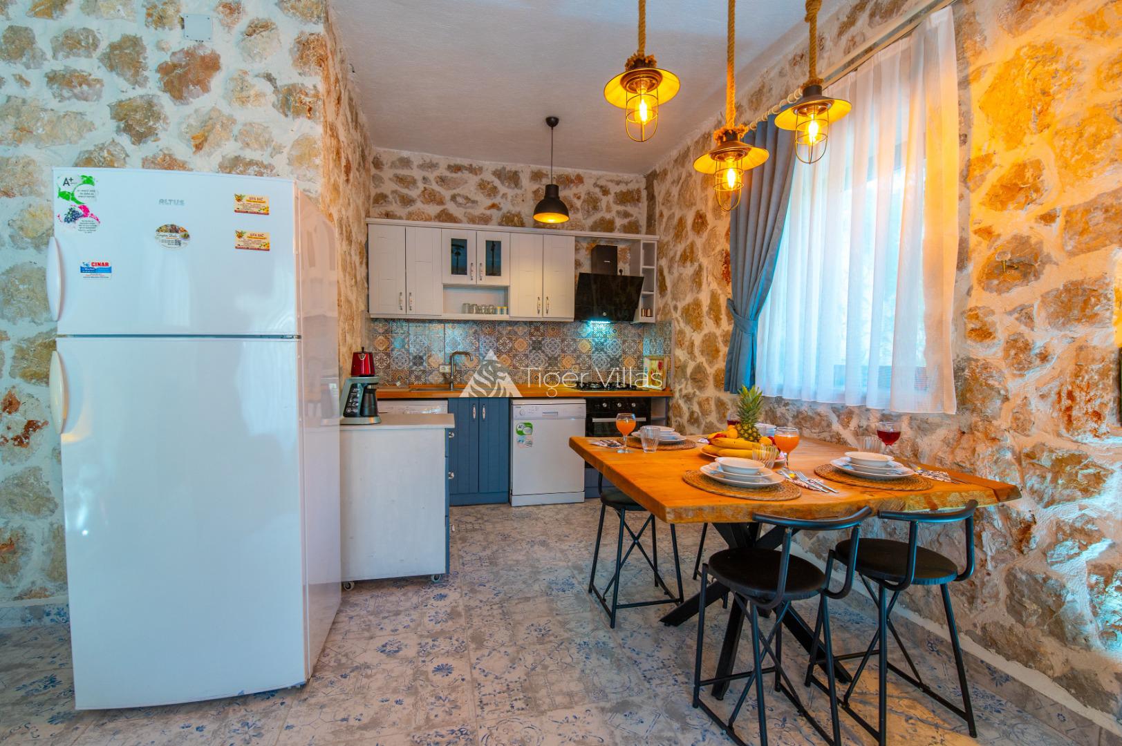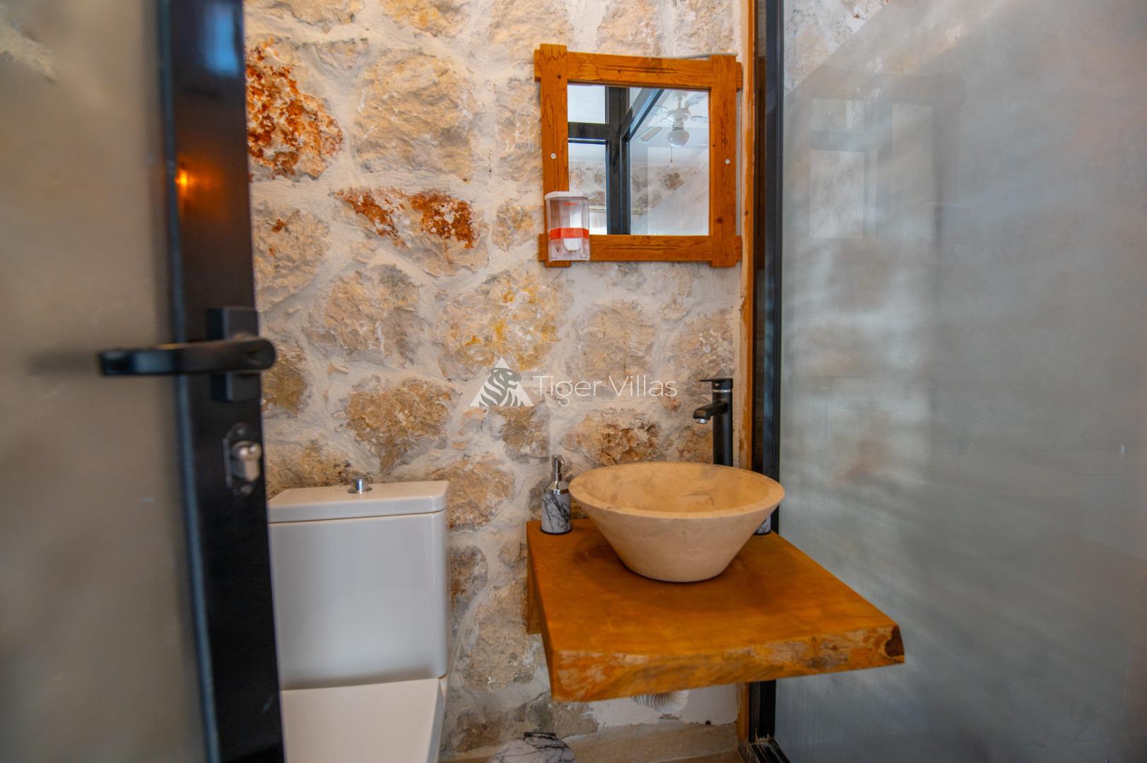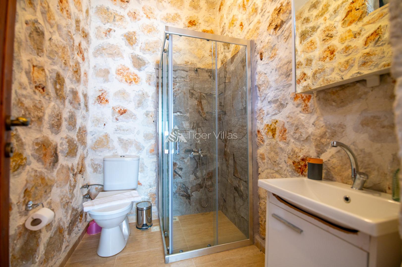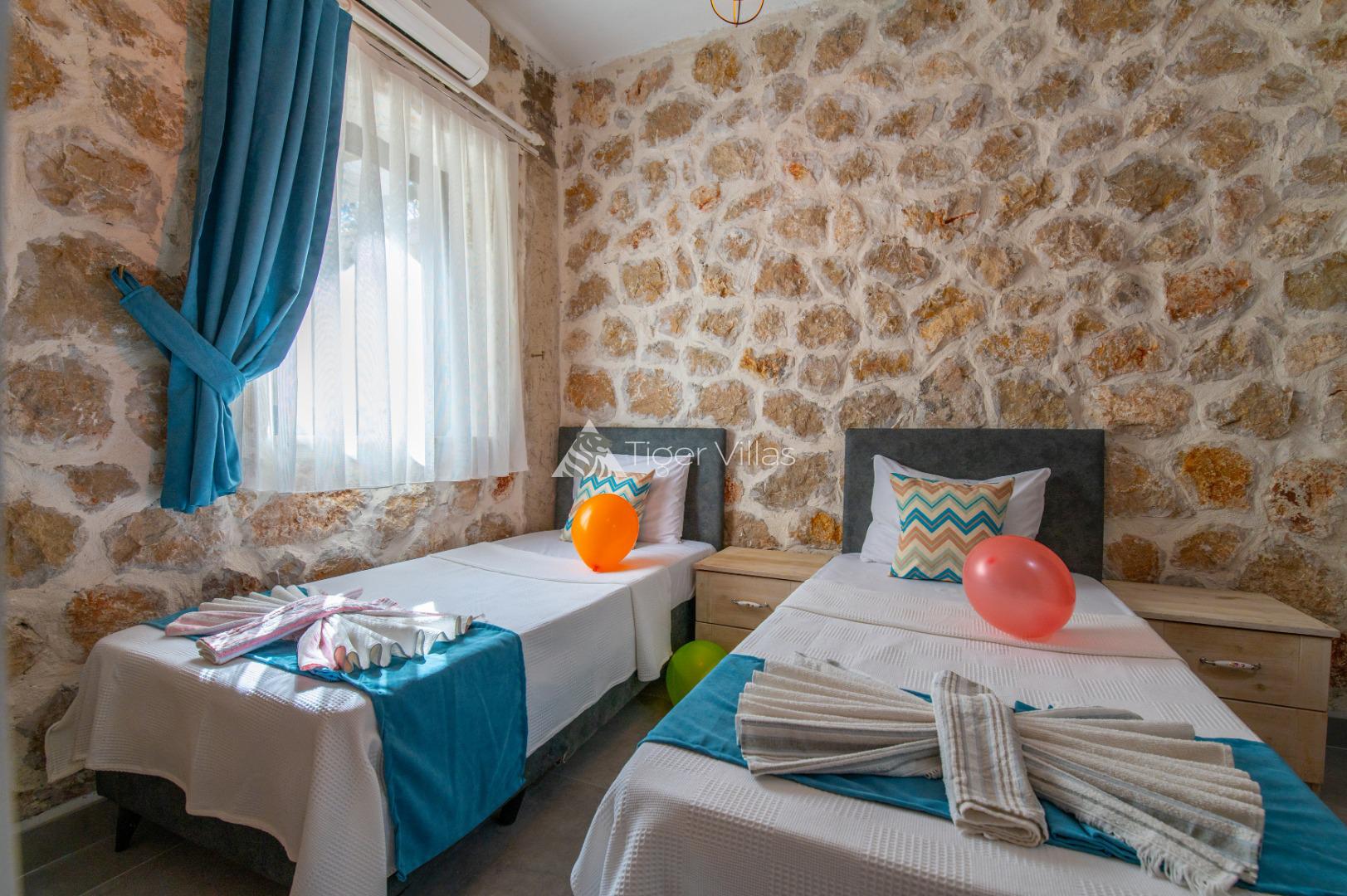 Summer Rental Villa Stone House 2, in the Islamlar area of Kalkan, with a 2-bedroom capacity for 4 people, our villa is in our options of Conservative Villas, Villas with Jacuzzi and Honeymoon Villas, our villa is ideal for families and couples looking for a conservative villa with stone architecture in a quiet and peaceful environment. It is also preferred by honeymoon couples. There is a jacuzzi in the master bedroom of our villa.