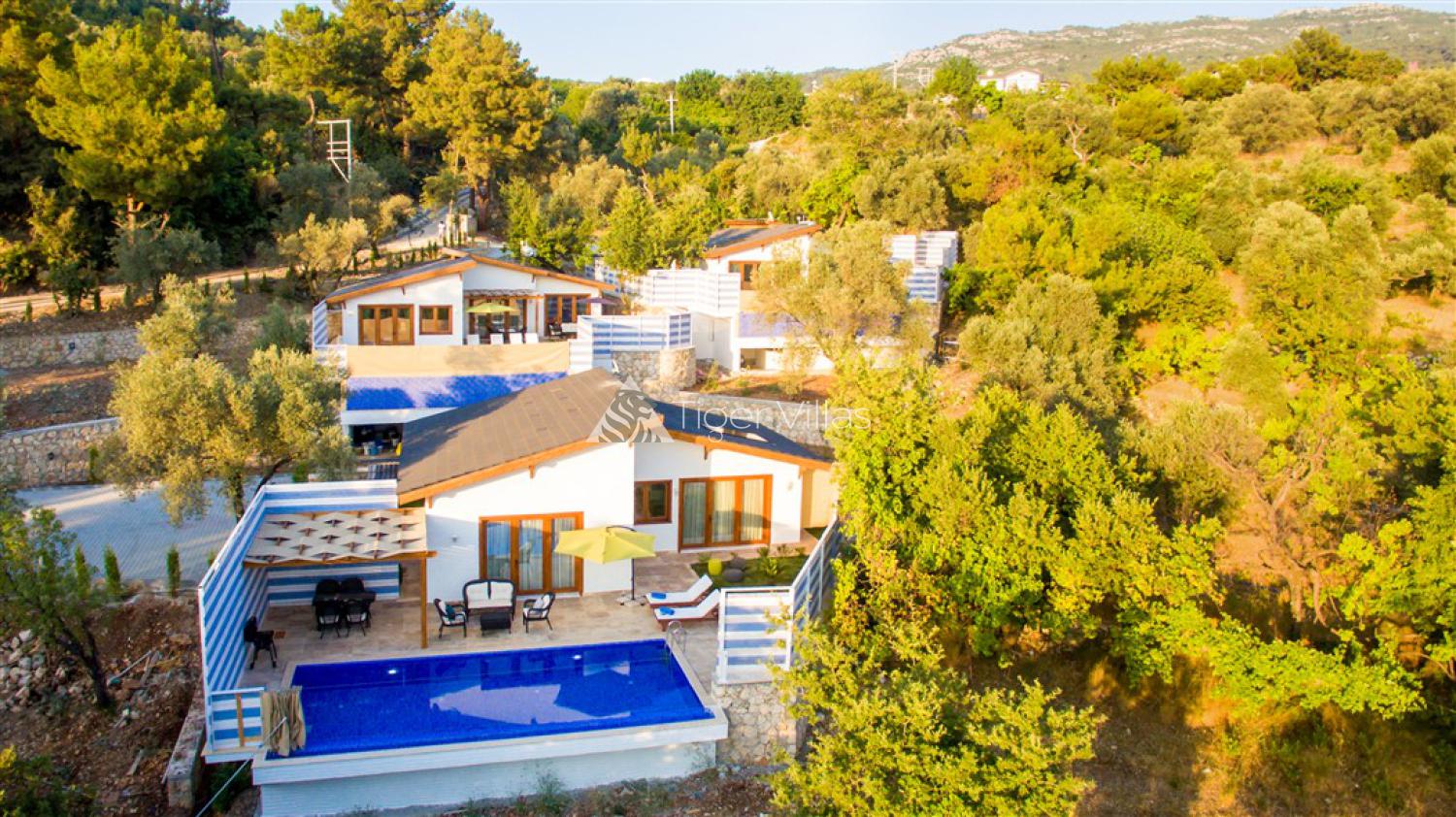 Villa Sunset Duo, a conservative holiday villa located in the Islamlar village of Kalkan, is a very suitable option for our honeymoon couples who want a pleasant holiday in nature away from the noise and pollution of the city. Our villa, which is included in our options of conservative villas and honeymoon villas, has 2 bedrooms and an accommodation capacity of 4 people. Villa Sunset Duo, whose pool is sheltered and whose garden is not visible from the outside, offers a peaceful holiday opportunity for our families and couples who care about privacy.