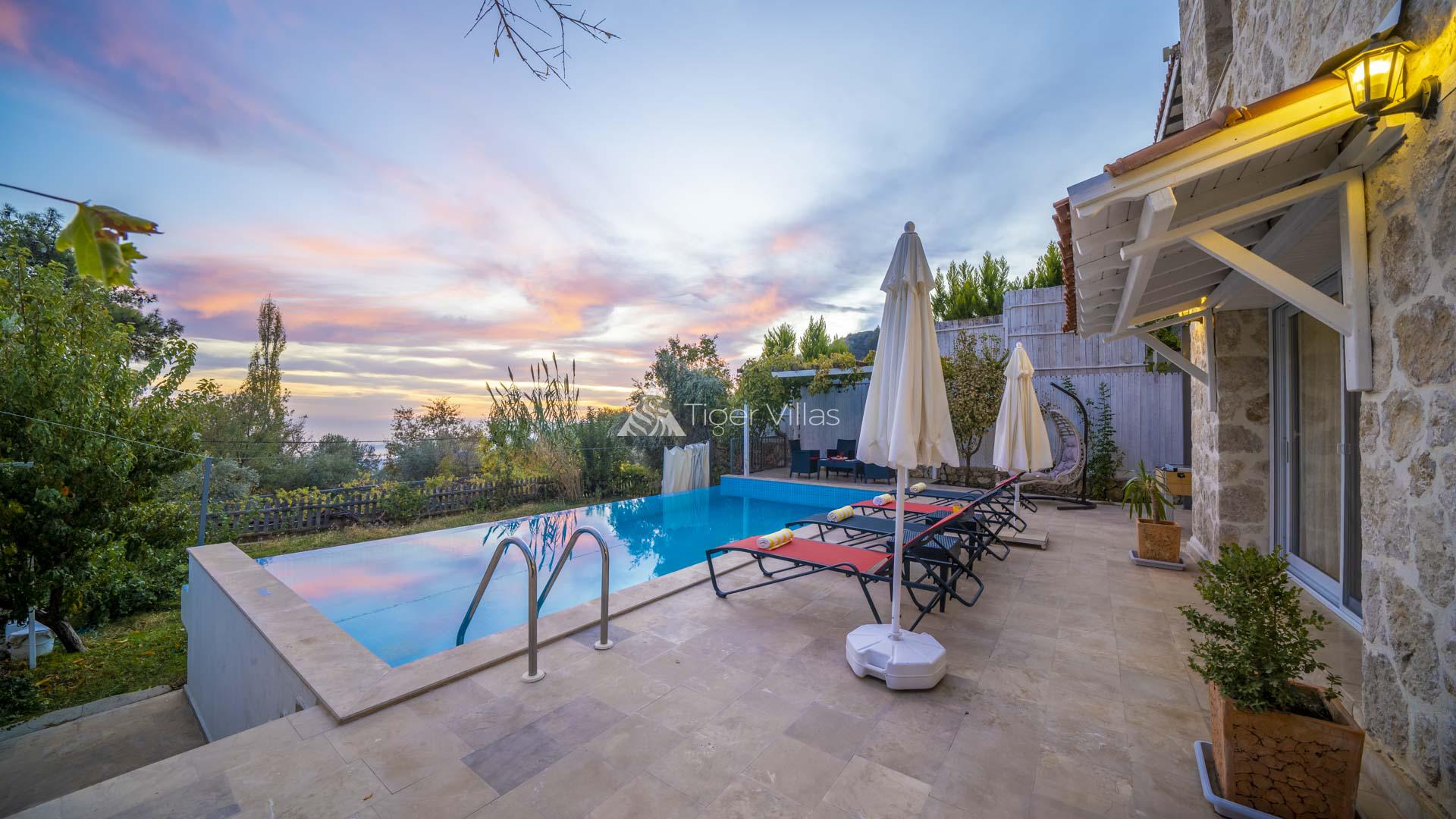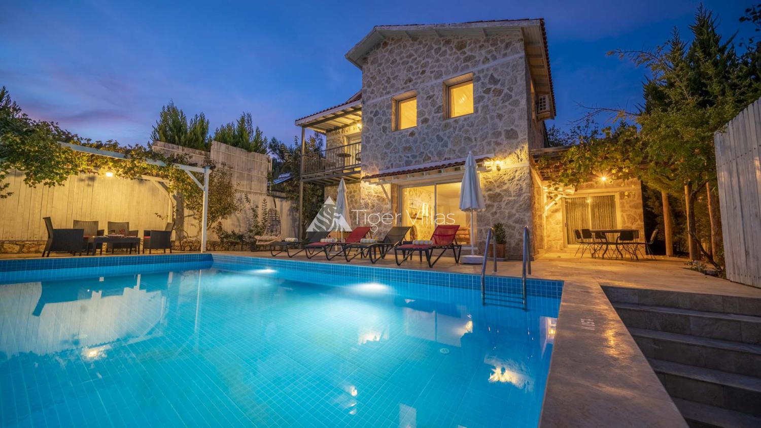 Villa Tas Ev is a secluded villa made up of stone and wooded villas in the forests and dark greenery located in Kalkan-İslamlar area. In total there are 3 bedrooms and all rooms are suites. One of the bedrooms has a jacuzzi. The house floor and ceiling are made of cedar wood and have a wonderful cedar smell. The villa is surrounded by a green hanging gardens and the pool terrace does not appear from around. Village center, restaurants and markets are only 300m away. 500 m2 garden with all kinds of seasonal vegetables and fruits are grown in the garden. During your vacation you can eat these vegetables and fruits in the garden and you can also work in gardening. Even in the hottest summer, the villa is extremely cool and you may need a blanket to cool some nights. This villa is 10 km away from Kalkan city center and 17 km from the world famous Patara beach.