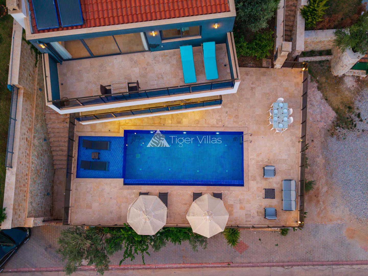 Villa Vala feels luxurious and modern and is built to a very high standard, with floor-to-ceiling windows maximising the impact of the breath-taking views over Kalkan bay. Designed in a contemporary style that includes open plan living spaces, a mezzanine gallery, sea view balconies and en-suite facilities for all 3 bedrooms. With plenty of outside space and private swimming pool,roof pool with uninterrupted sea views. Located in the Kiziltas area; 10-15 minutes' walk of Kalkan old town.