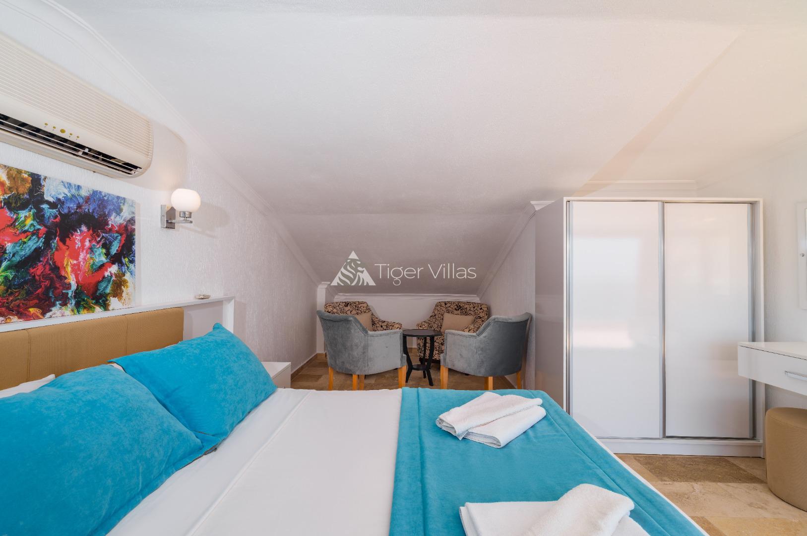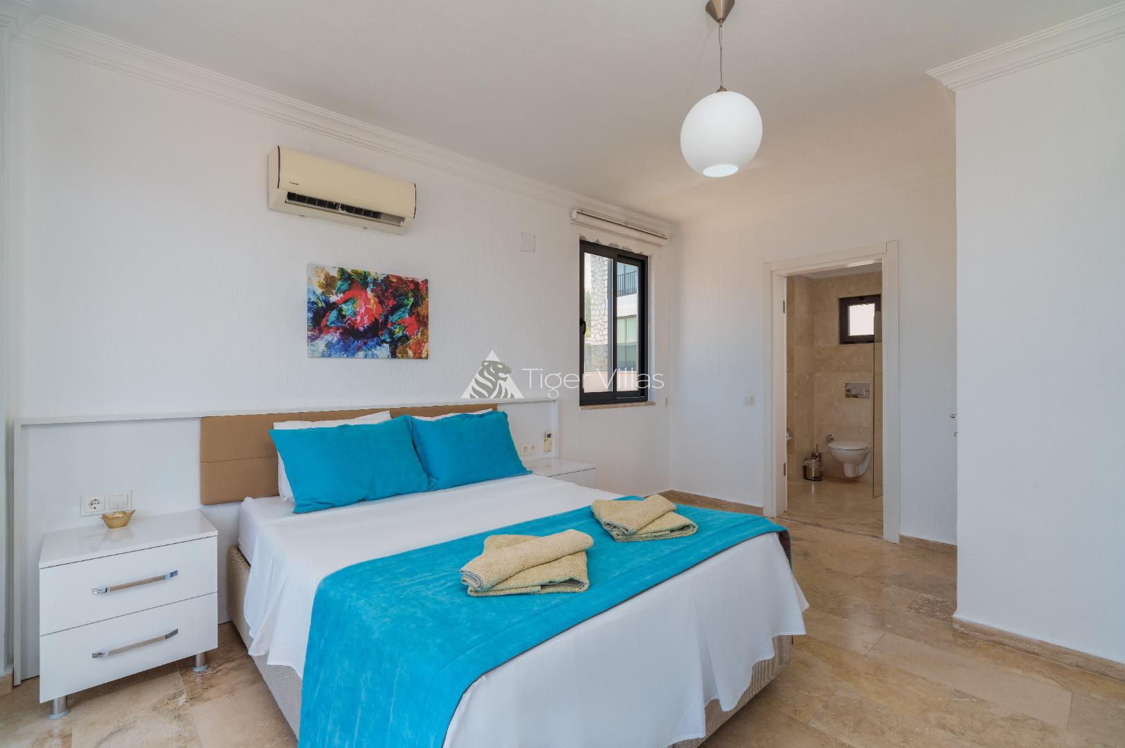 2. Bedroom: En-suite room, Double bed, nightstand, wardrobe, air conditioner, bathroom and toilet.On the Roof Terrace.