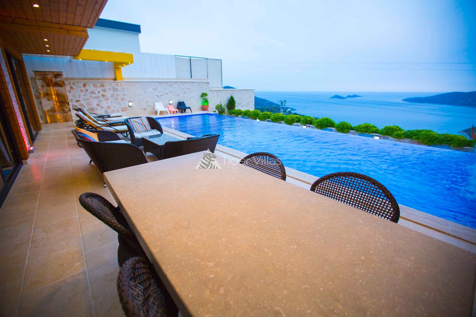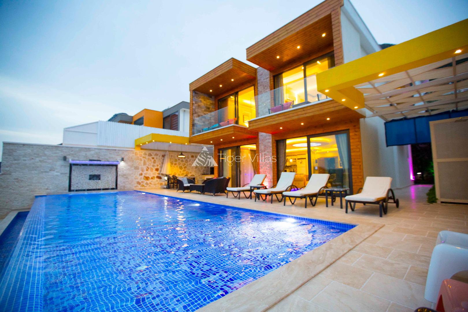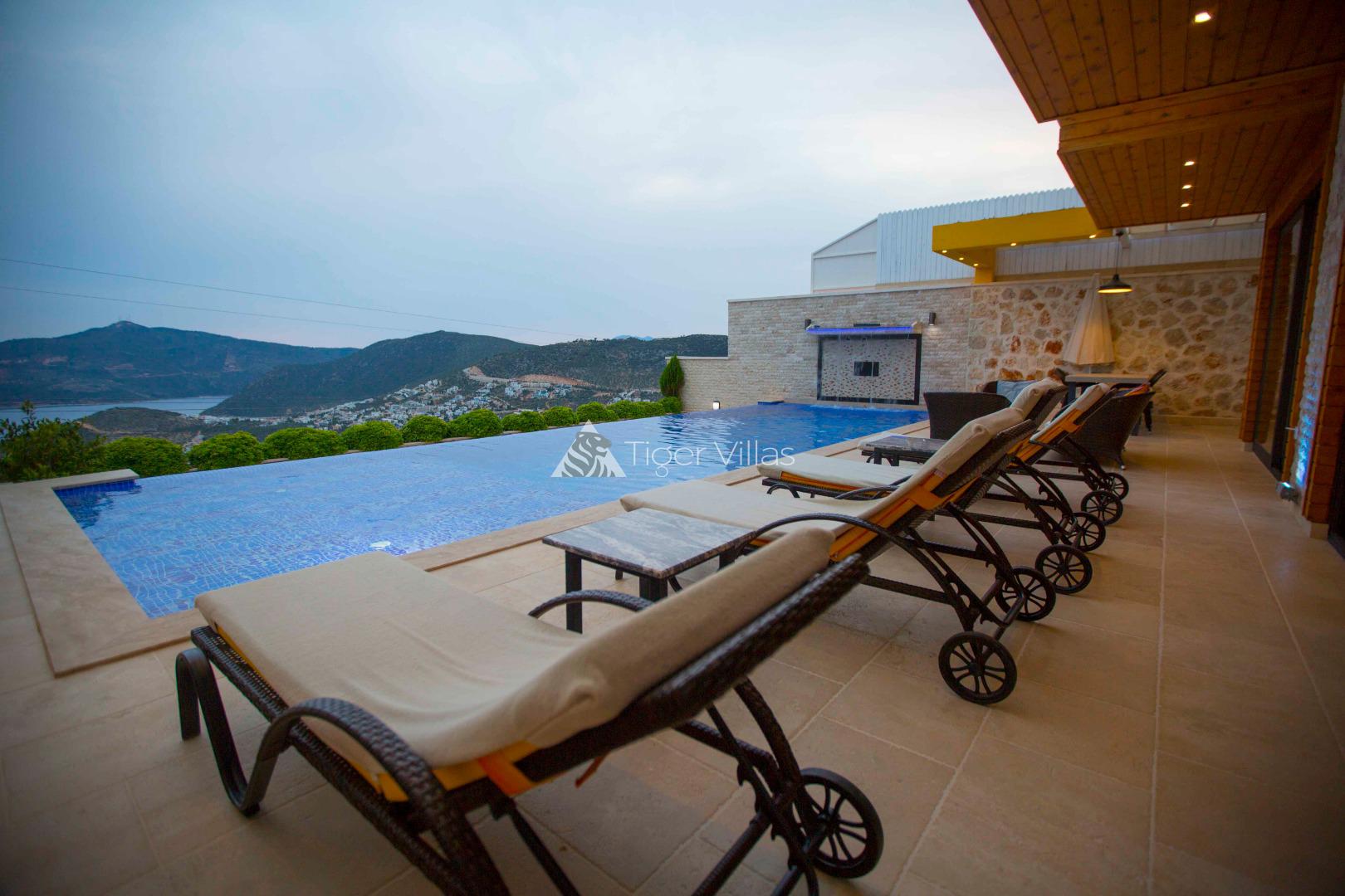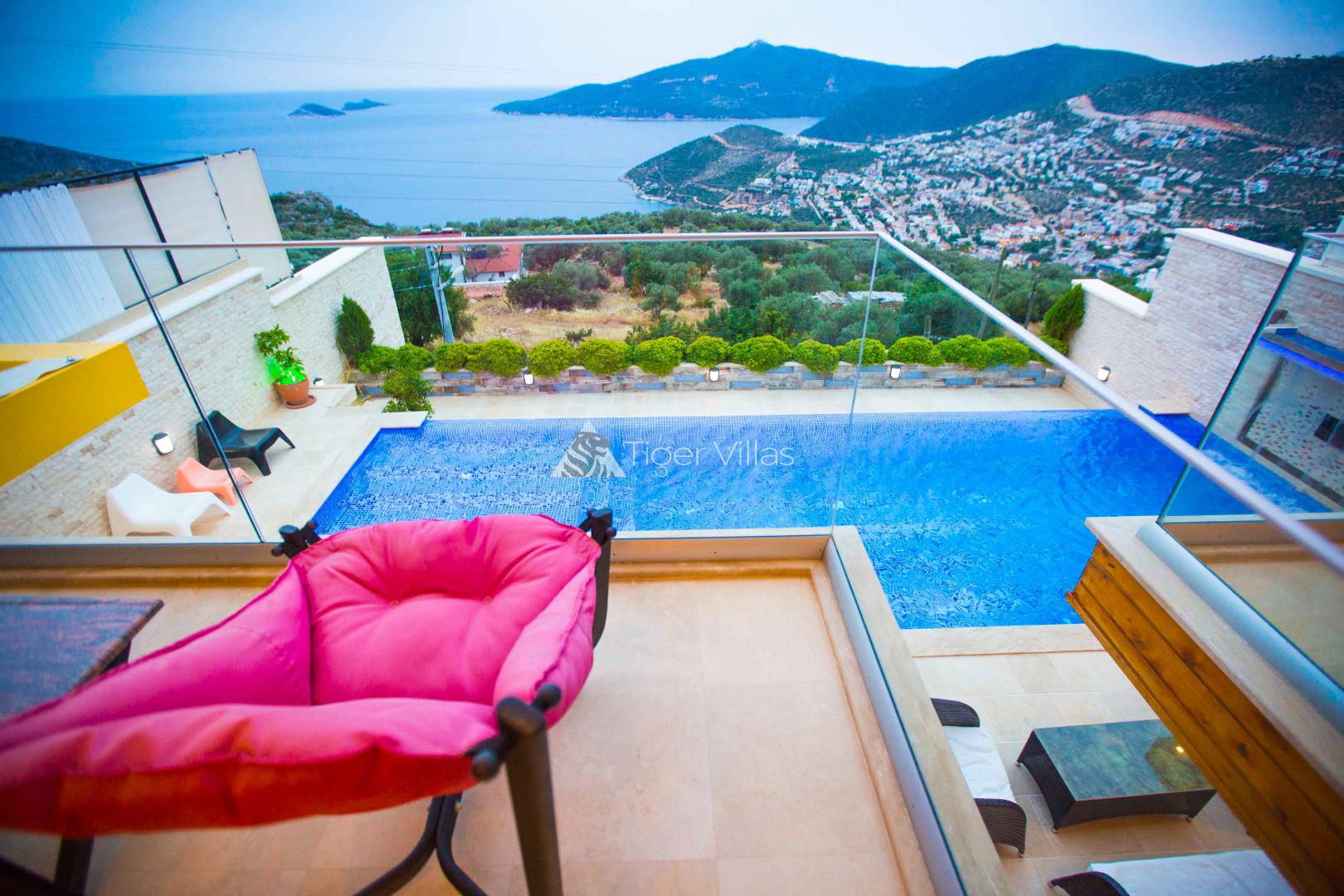 Villa Victoria is among the villas for rent with a private swimming pool, which has two suites with a magnificent sea view and can accommodate four people in total. It is close to Kalkan City Center. Bedrooms and living room with American kitchen have sea view. It has a large swimming pool.