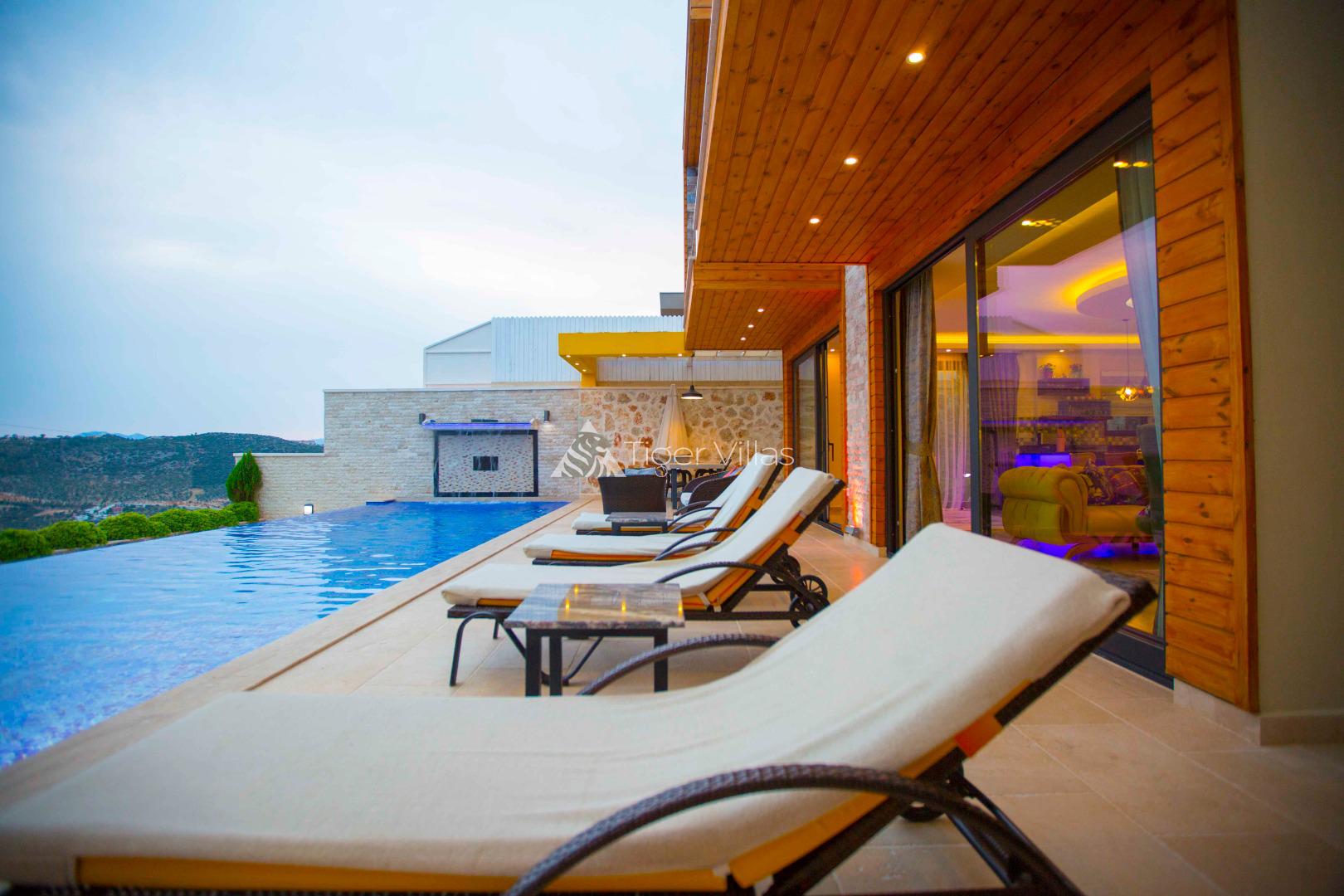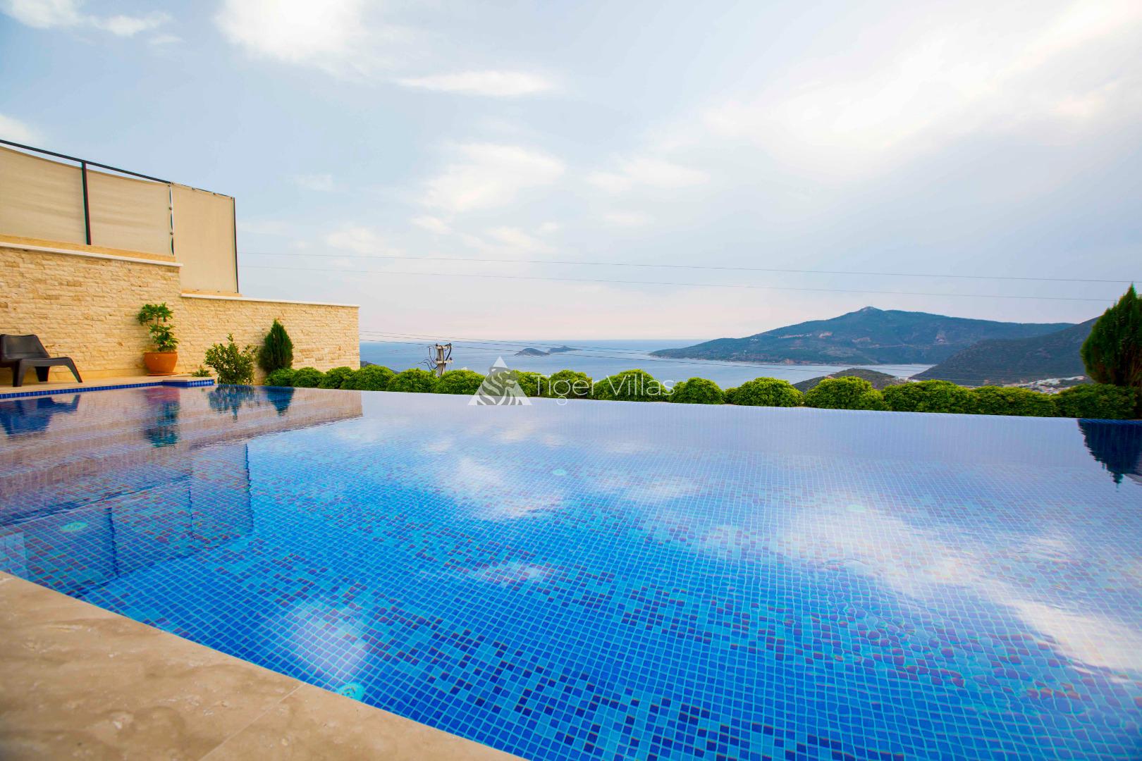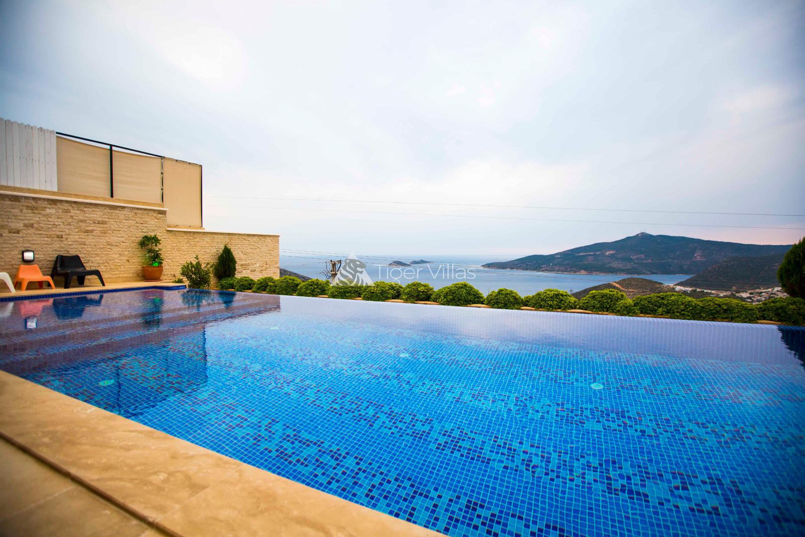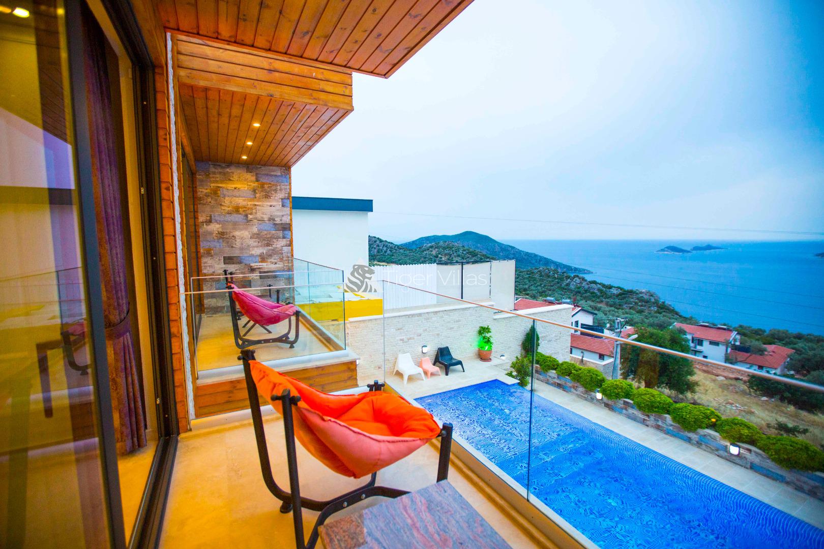 Villa Victoria is among the villas for rent with a private swimming pool, which has two suites with a magnificent sea view and can accommodate four people in total. It is close to Kalkan City Center. Bedrooms and living room with American kitchen have sea view. It has a large swimming pool.