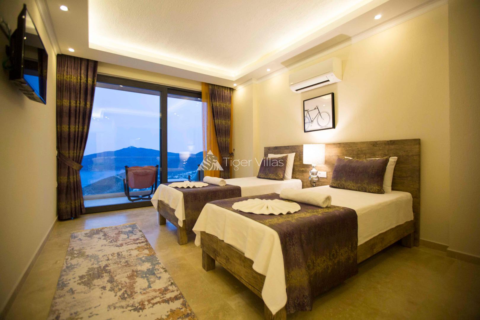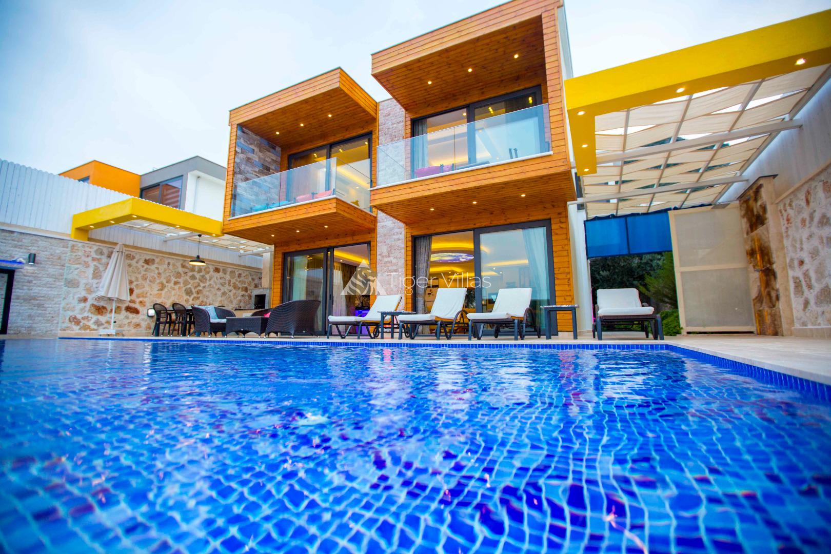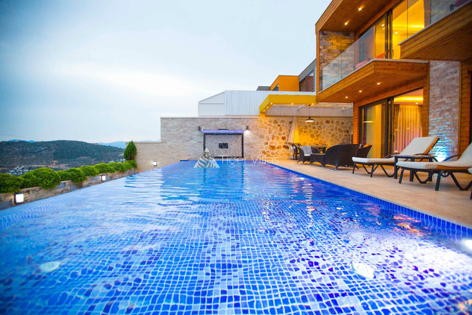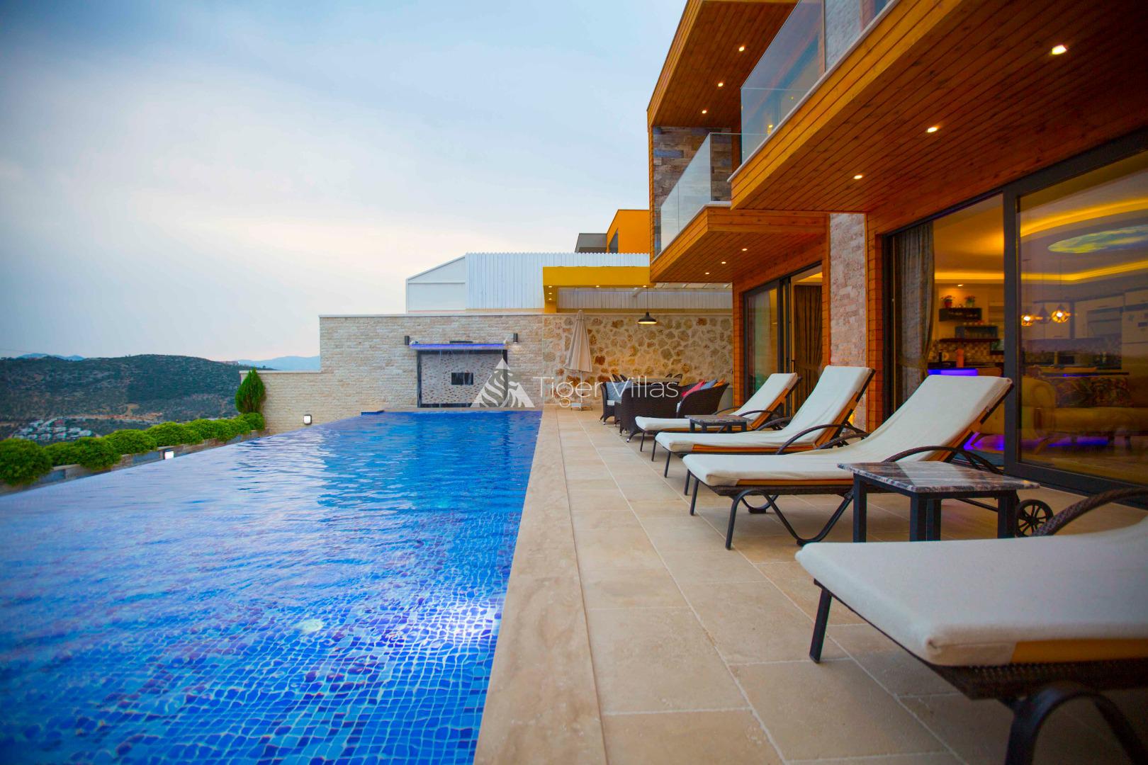 Villa Victoria is among the villas for rent with a private swimming pool, which has two suites with a magnificent sea view and can accommodate four people in total. It is close to Kalkan City Center. Bedrooms and living room with American kitchen have sea view. It has a large swimming pool.