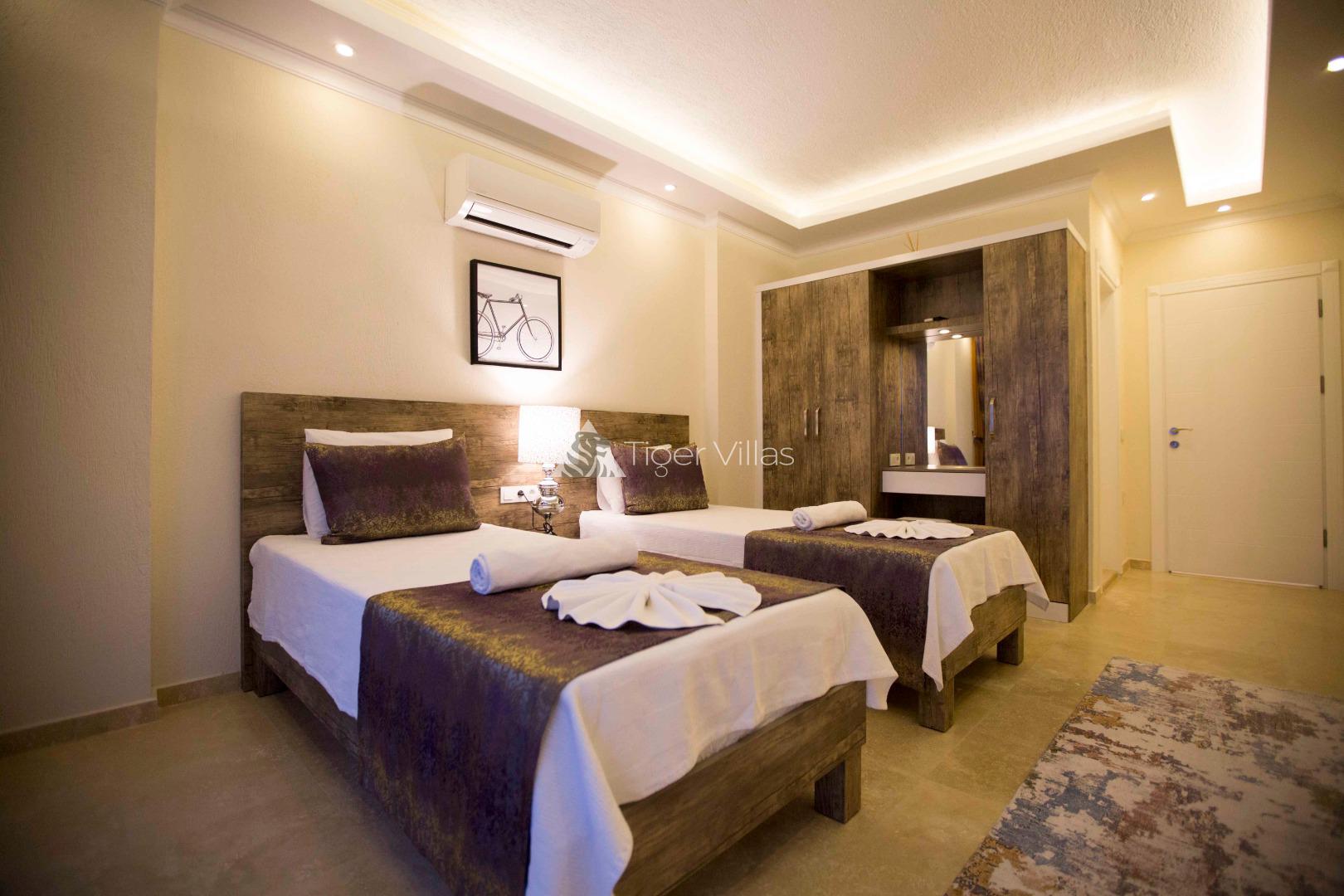 2. Bedroom: Suite room, 2 single beds, air conditioning, bedside table, wardrobe, make-up table, WC&bathroom and balcony.