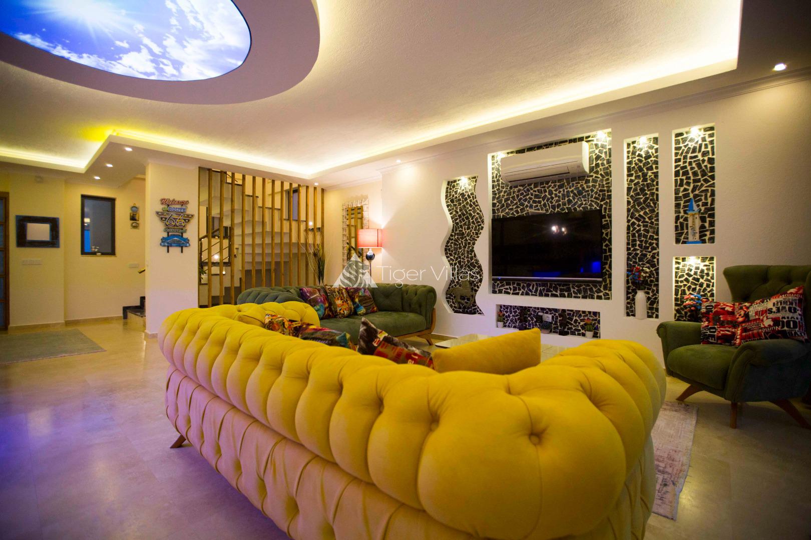 Living Room: In our living room, there is a stylish and comfortable sitting group, coffee table, TV, air conditioner, satellite receiver, WiFi and WC.