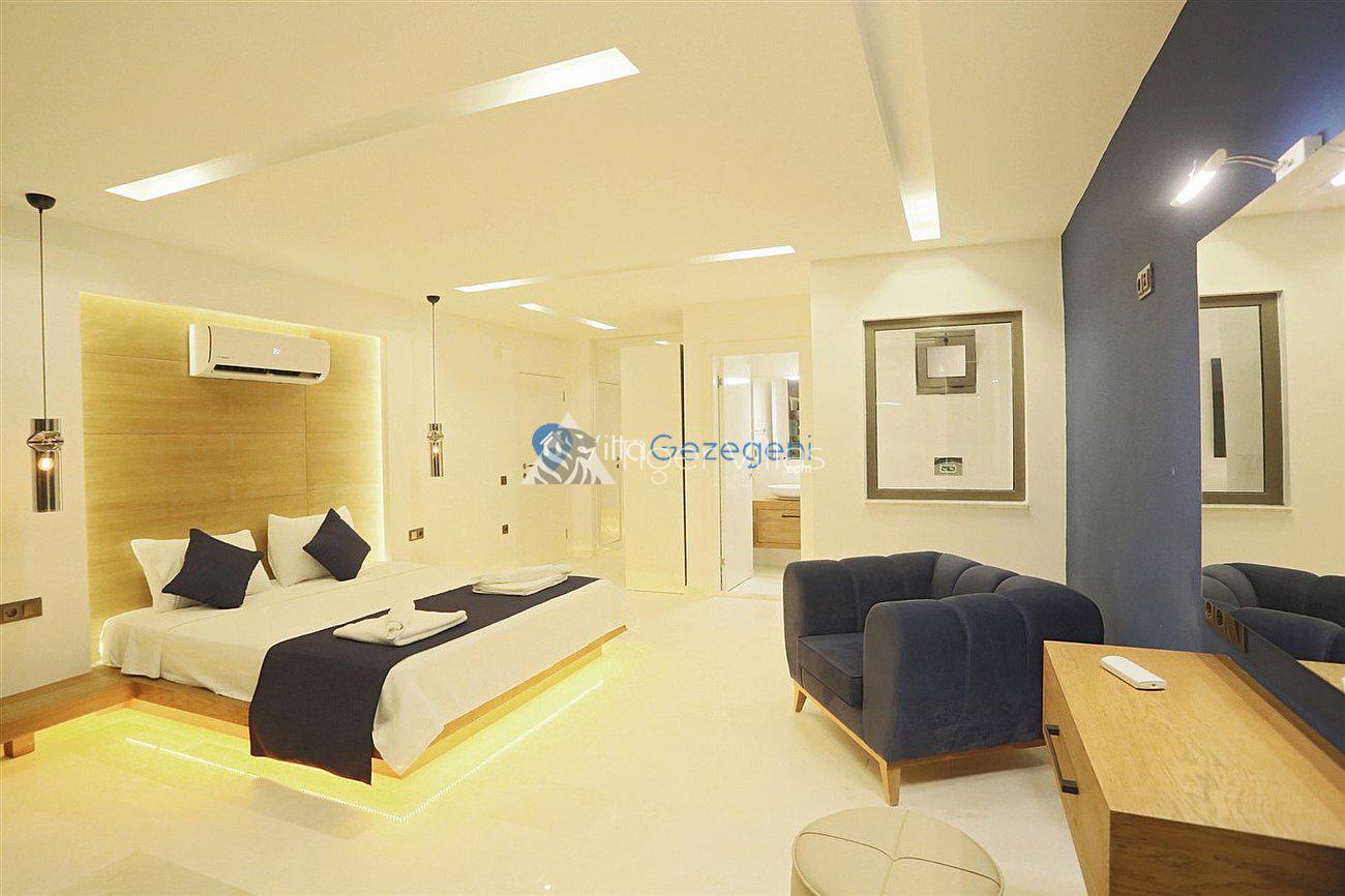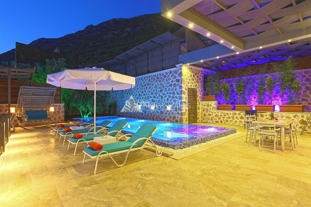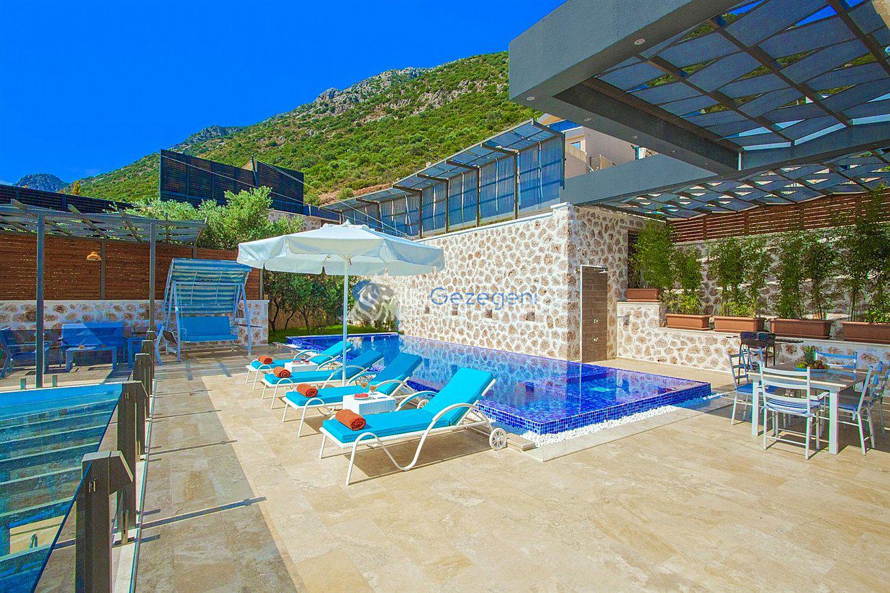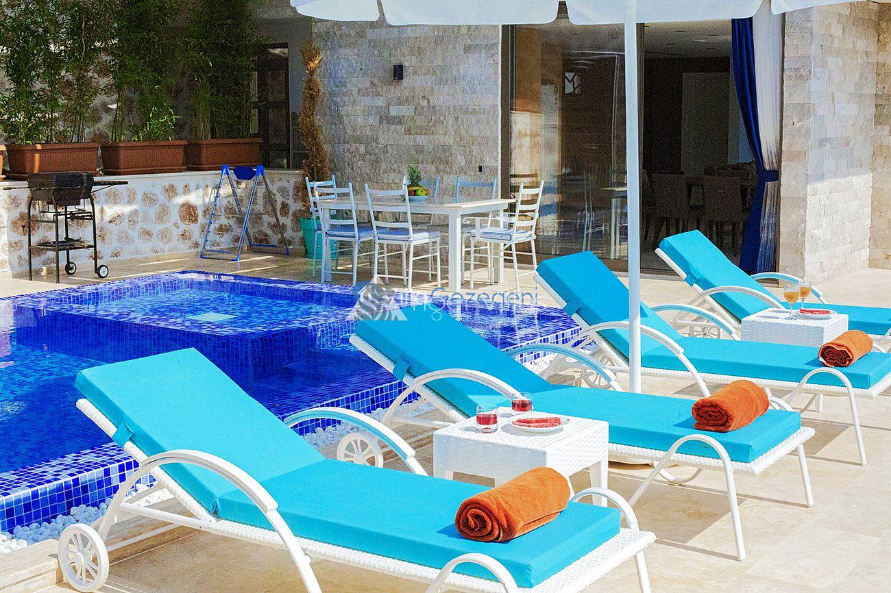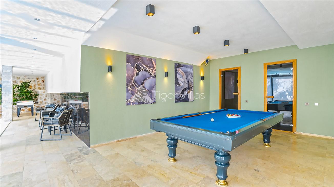 Villa White Smith, in Kalkan Kördere location, our villa with 3 bedrooms and an accommodation capacity of 6 people includes sea view, sauna, hammam villas and jacuzzi villas. There is a large indoor heated pool and works with a salt water system. There are also entertainment activities such as table tennis, table football, air hockey in our villa. An unforgettable holiday awaits you with your family and loved ones, accompanied by the magnificent sea view of Villa White Smith.