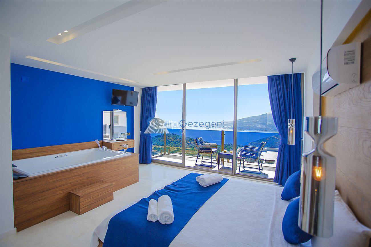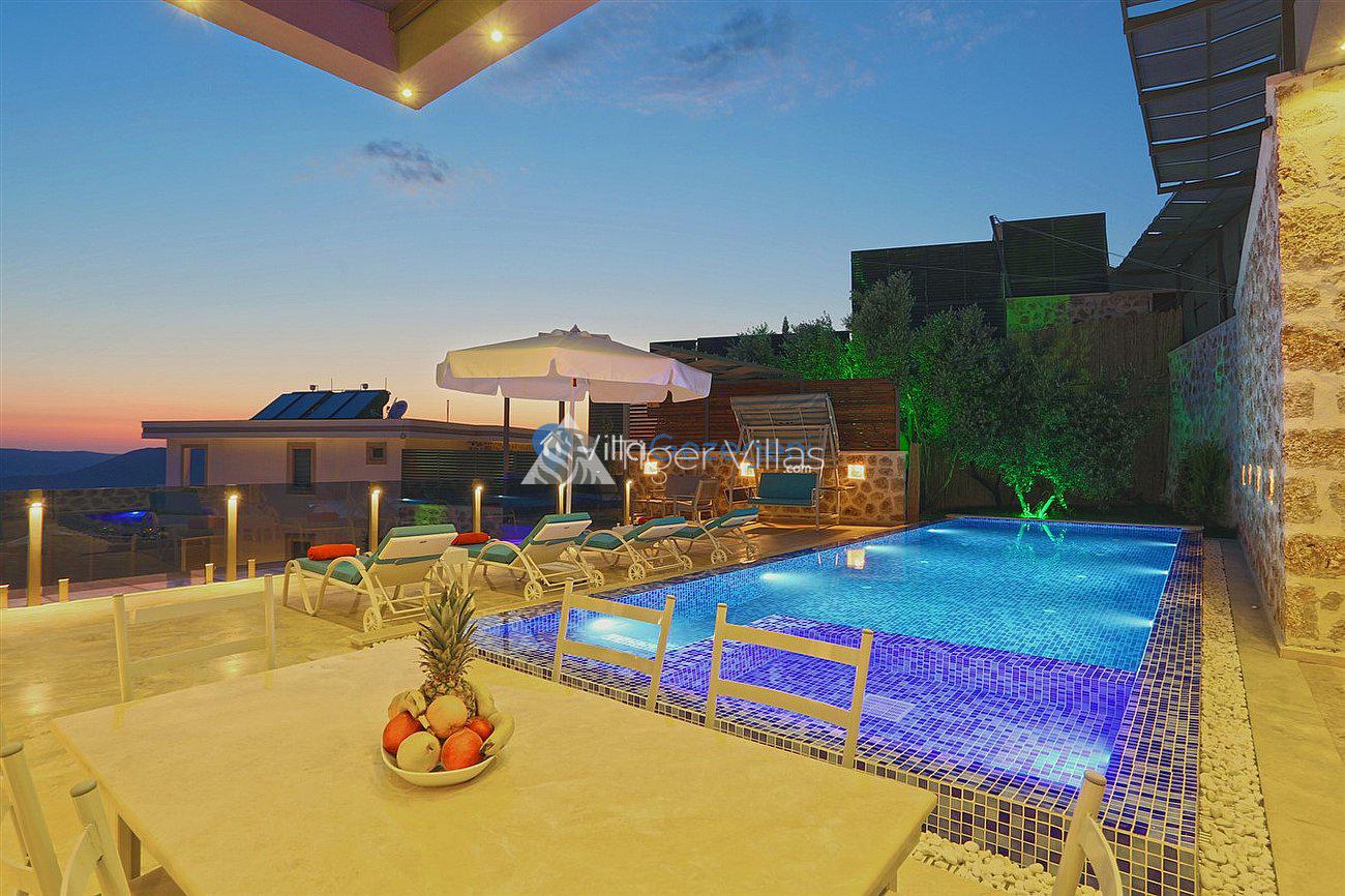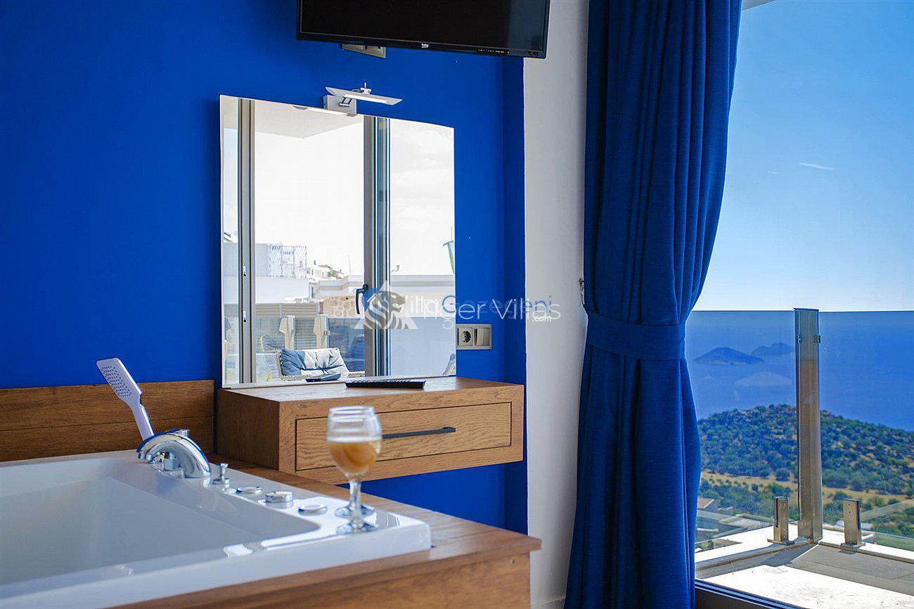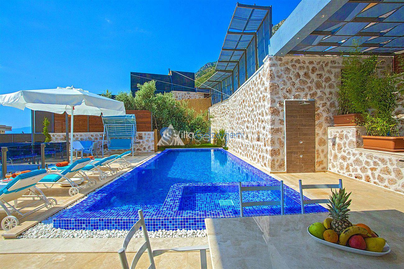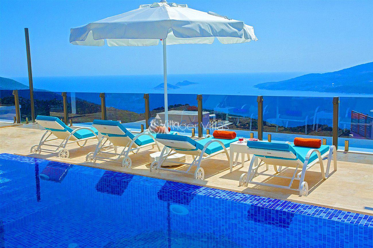 Villa White Smith, in Kalkan Kördere location, our villa with 3 bedrooms and an accommodation capacity of 6 people includes sea view, sauna, hammam villas and jacuzzi villas. There is a large indoor heated pool and works with a salt water system. There are also entertainment activities such as table tennis, table football, air hockey in our villa. An unforgettable holiday awaits you with your family and loved ones, accompanied by the magnificent sea view of Villa White Smith.
