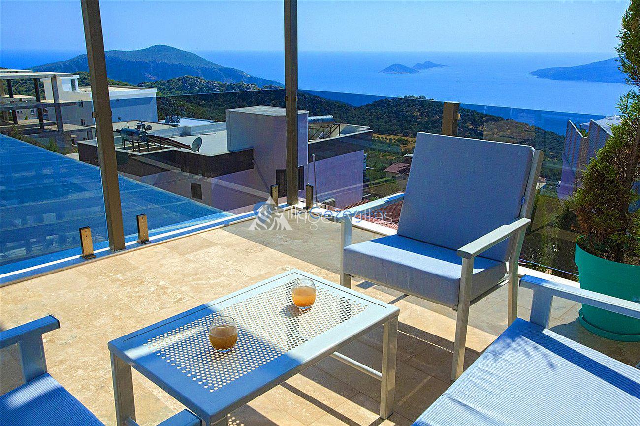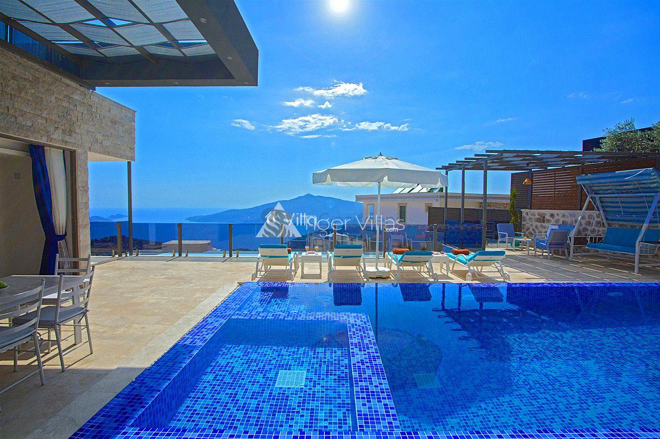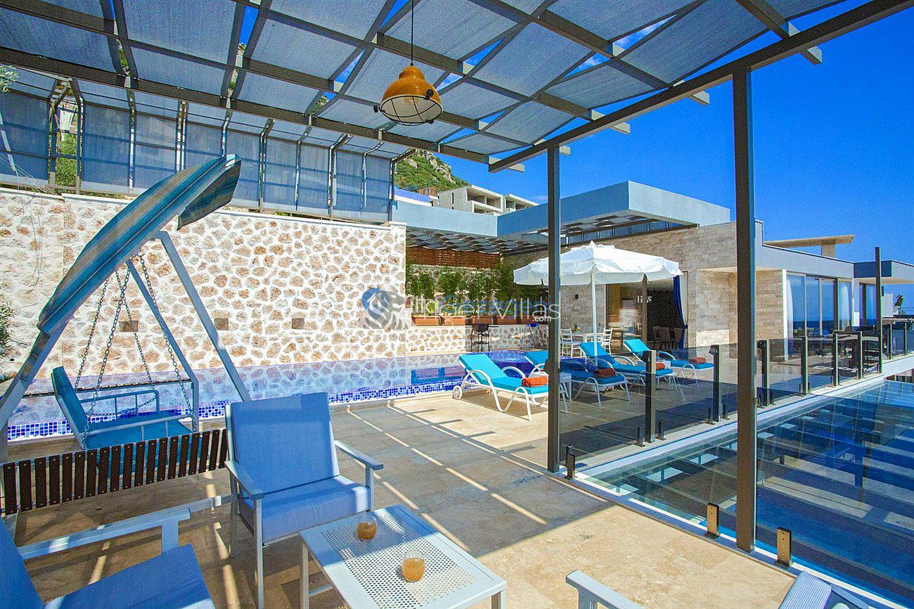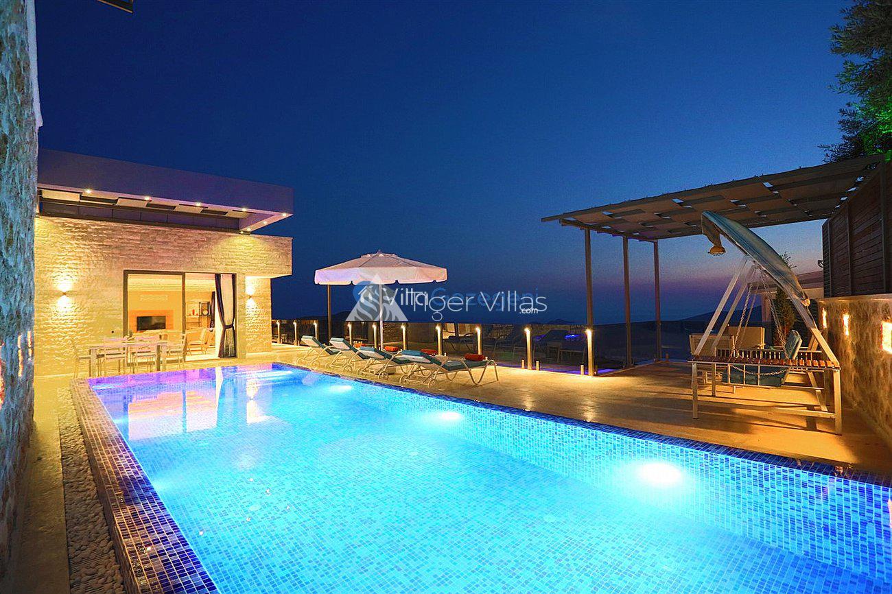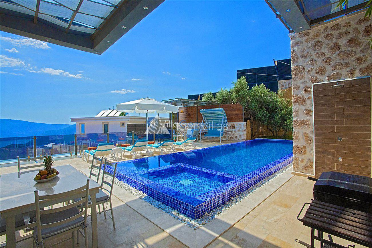 Villa White Smith, in Kalkan Kördere location, our villa with 3 bedrooms and an accommodation capacity of 6 people includes sea view, sauna, hammam villas and jacuzzi villas. There is a large indoor heated pool and works with a salt water system. There are also entertainment activities such as table tennis, table football, air hockey in our villa. An unforgettable holiday awaits you with your family and loved ones, accompanied by the magnificent sea view of Villa White Smith.