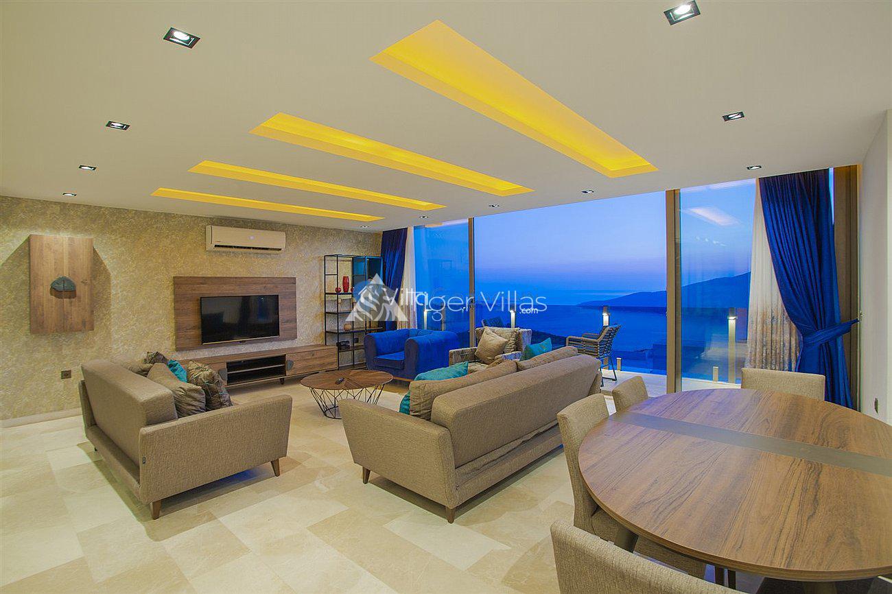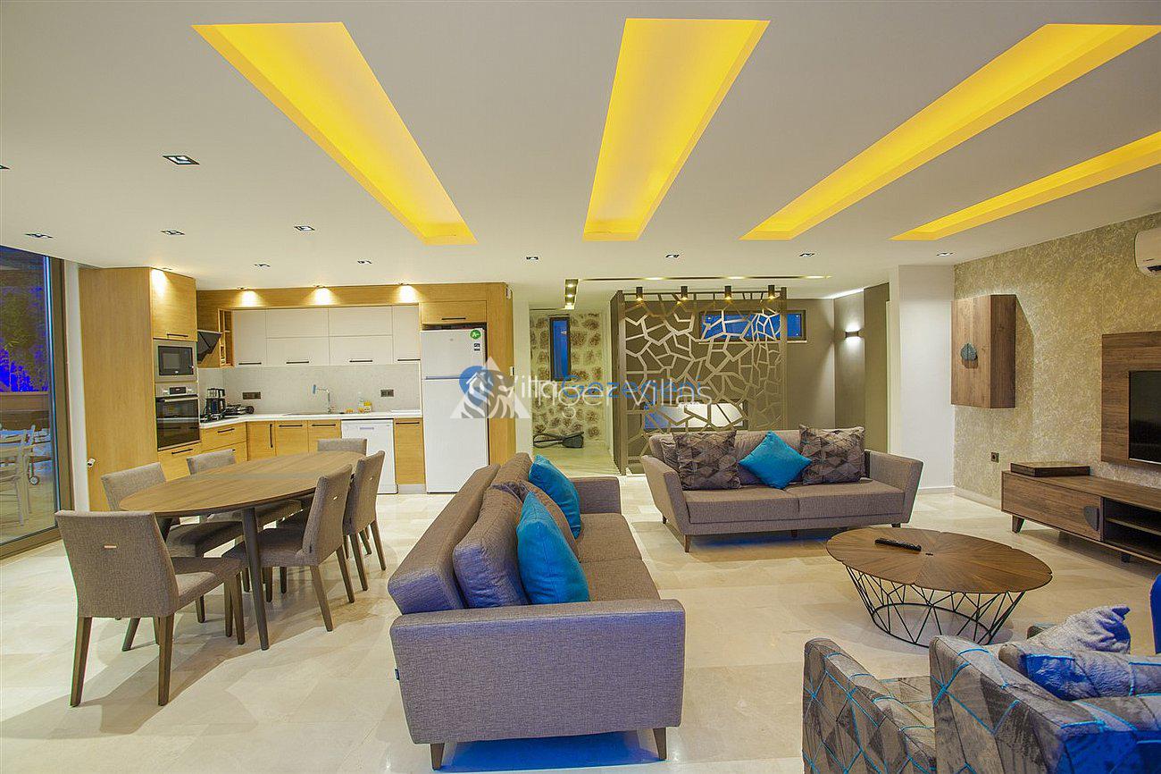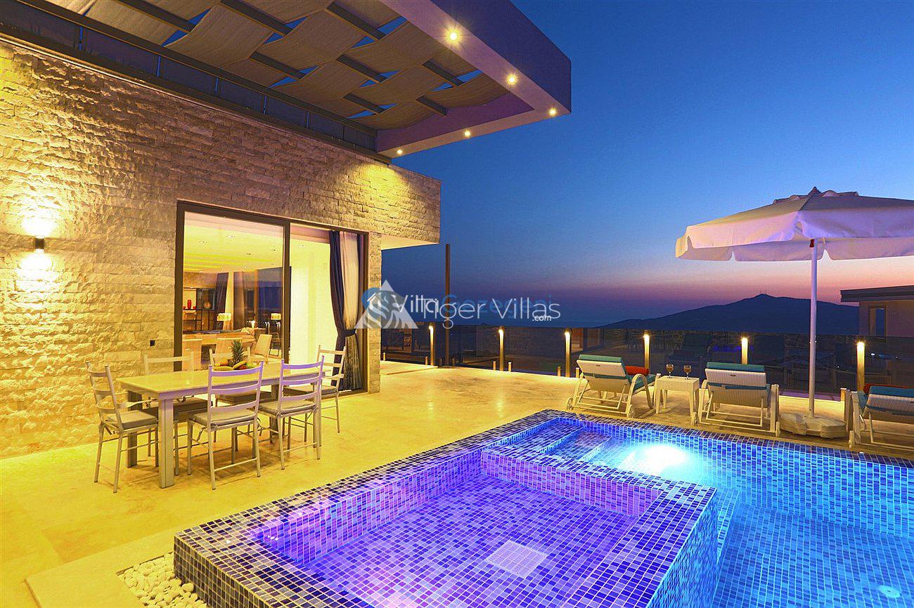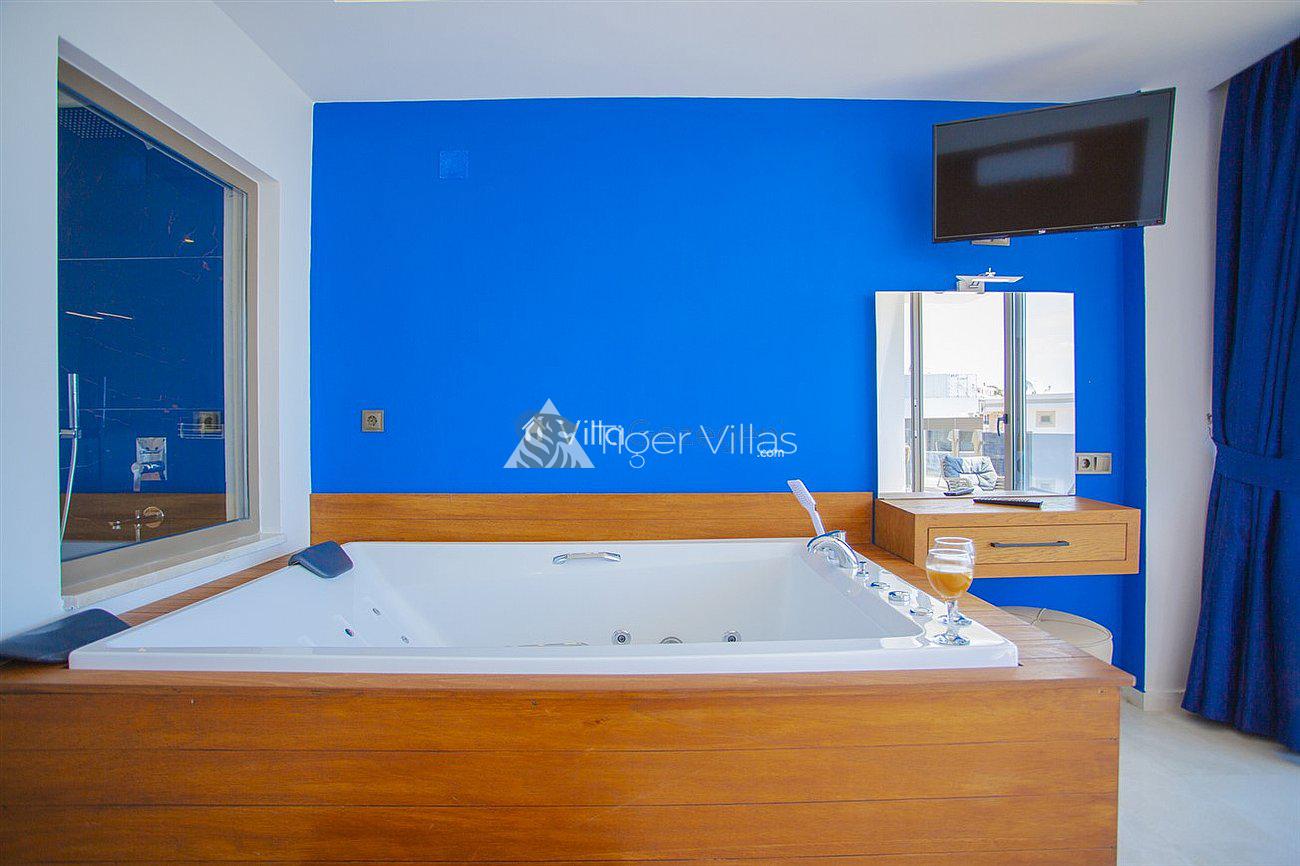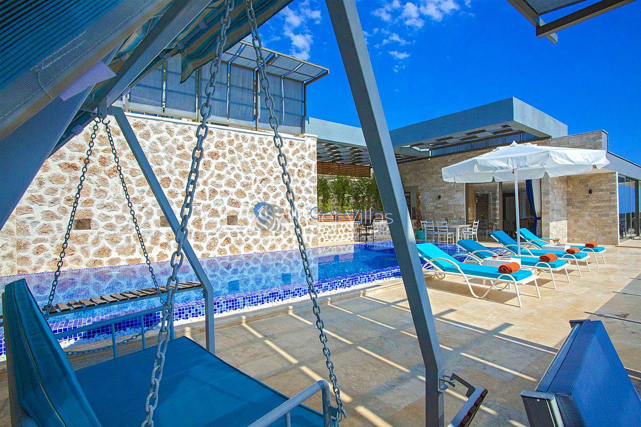 Villa White Smith, in Kalkan Kördere location, our villa with 3 bedrooms and an accommodation capacity of 6 people includes sea view, sauna, hammam villas and jacuzzi villas. There is a large indoor heated pool and works with a salt water system. There are also entertainment activities such as table tennis, table football, air hockey in our villa. An unforgettable holiday awaits you with your family and loved ones, accompanied by the magnificent sea view of Villa White Smith.