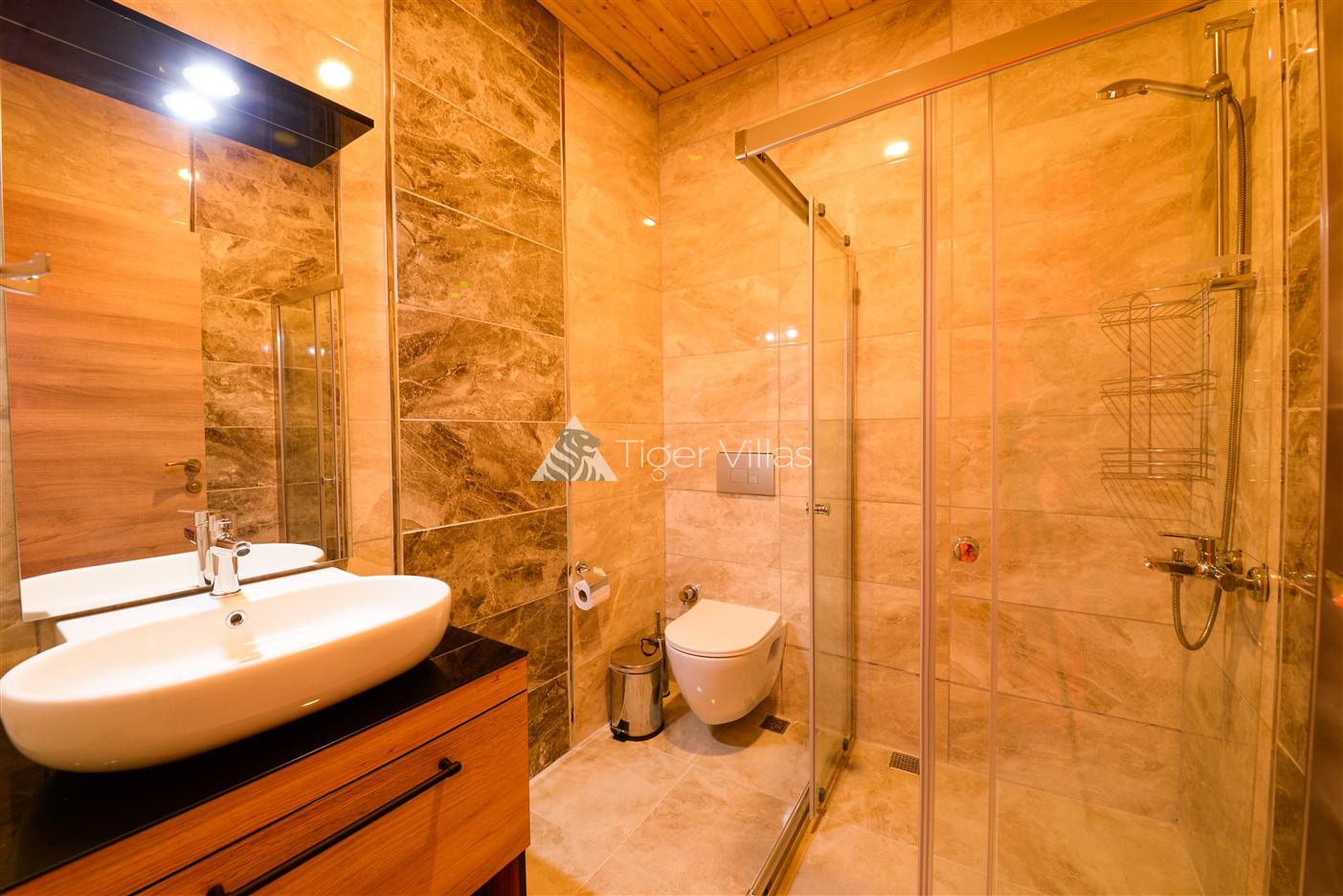 Located in the nature and greenery of Kalkan Ulugöl area, there are 2 bedrooms, 4 bedrooms with a capacity for accommodation, 1 double bed and private heated jacuzzi, and the other bedroom has 2 separate single beds. Our villa, which has a large and sheltered pool terrace, is suitable for our conservative families.