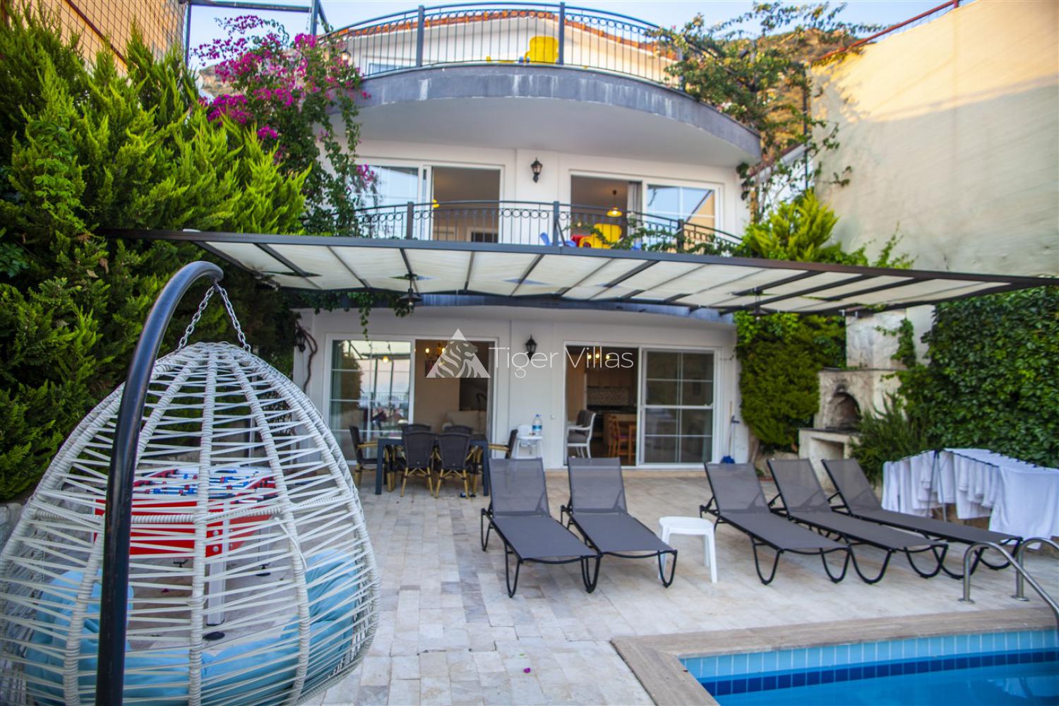 Villa Zumrut 3 is located in the Kalkan-Kordere area.Villa has 3 bedrooms with a capacity of 7 people. With a balcony overlooking the Kalkan Islands, this is a very ideal villa for families and groups of friends.Villa Zumrut 3 is 5min by drive to the city center, beach 3 km away.There is private unvisible pool.Pool terrace has covered by curtain systems.